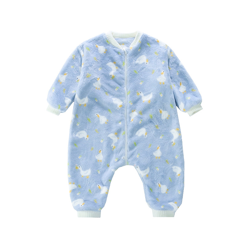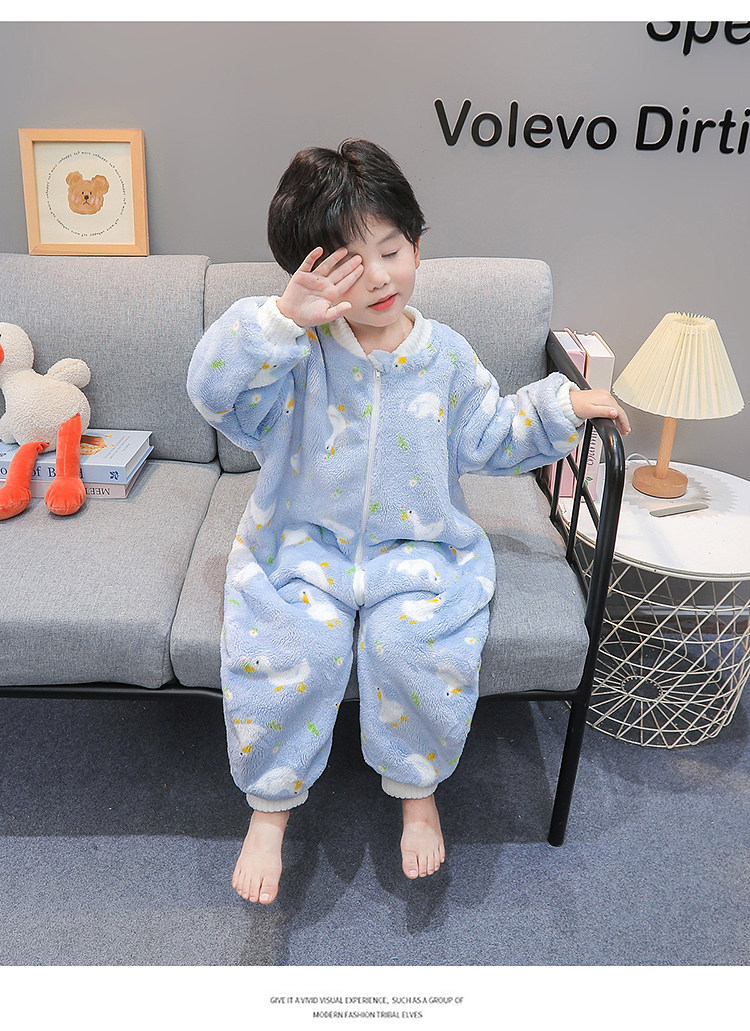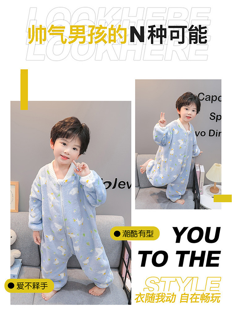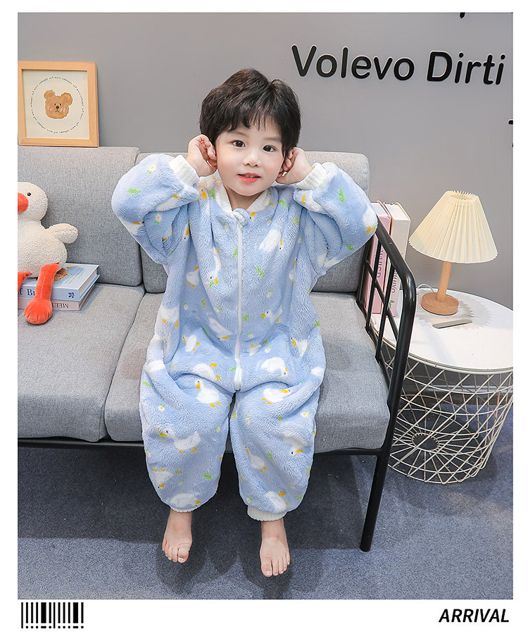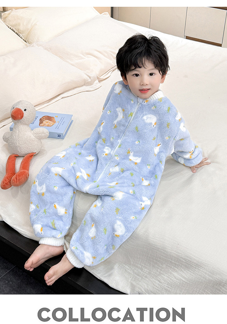 Boys' Pajamas Flannel 2025 New Autumn and Winter Kidsren's Baby Jumpsuit Sleeping Bag Warm Coral Velvet Home Clothes