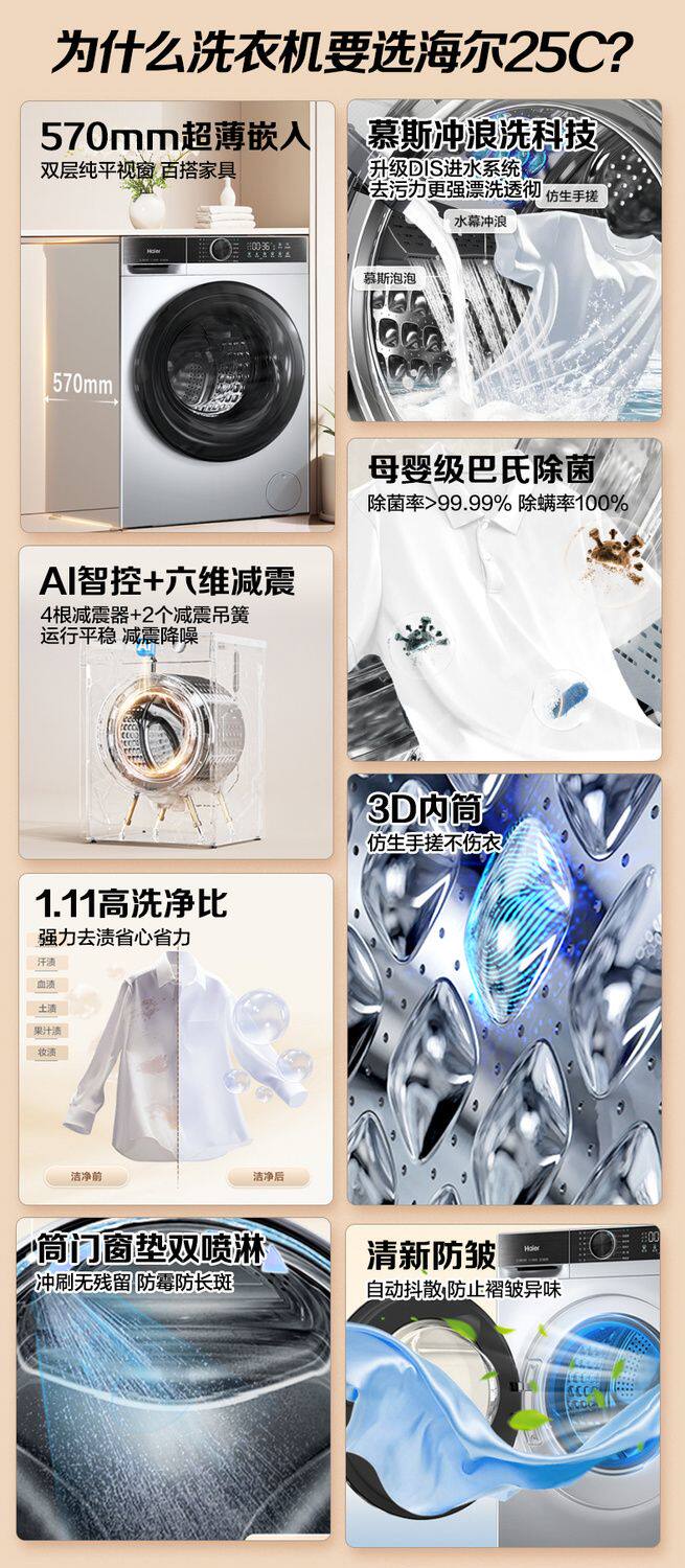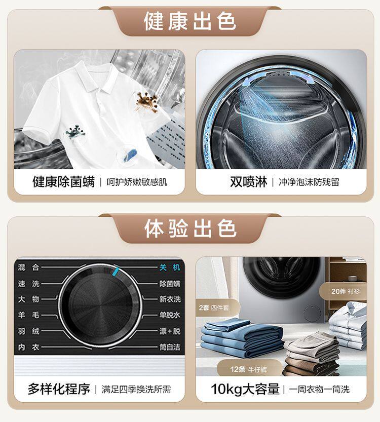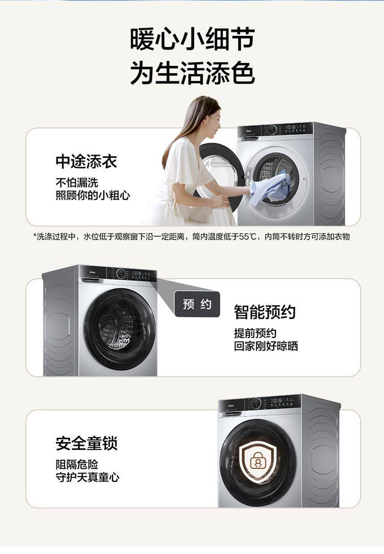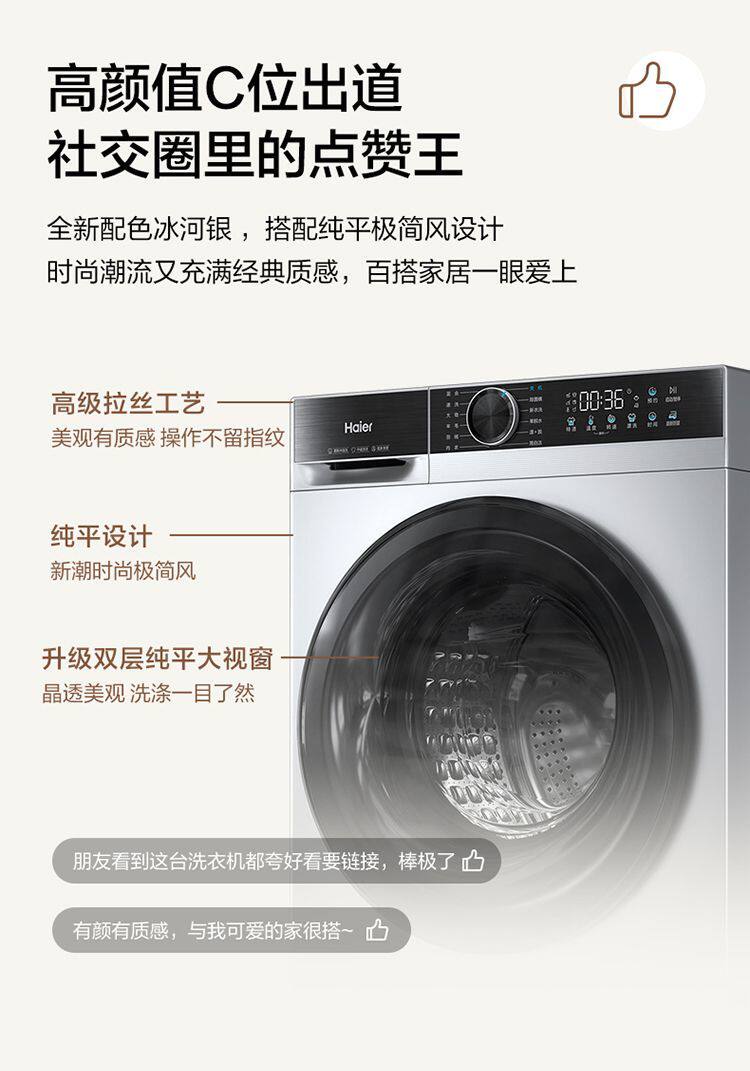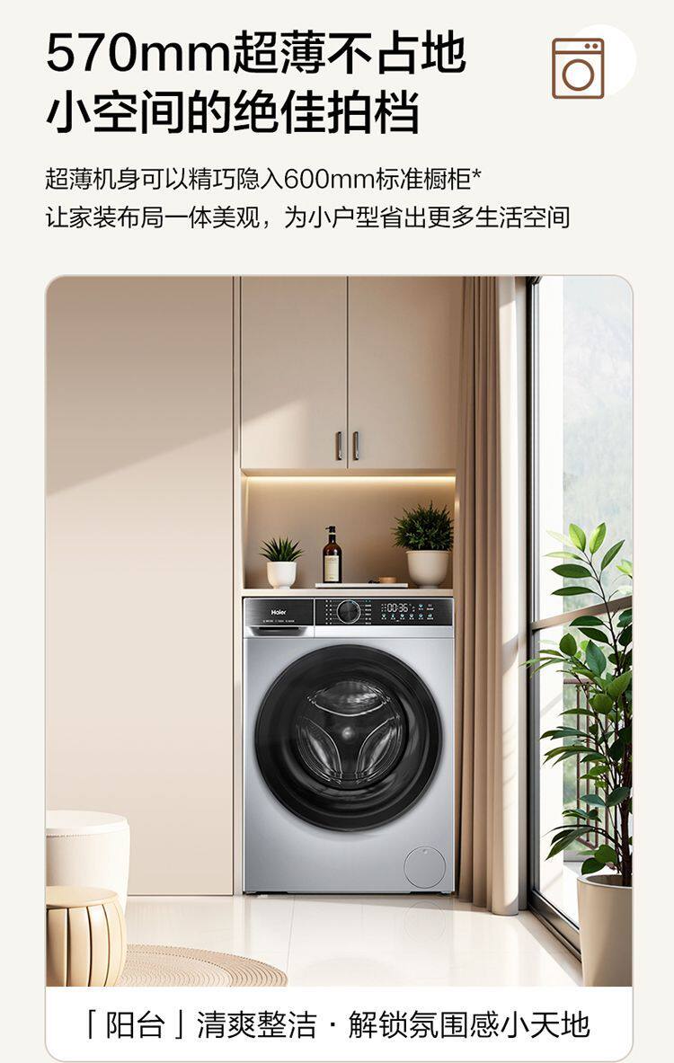 Haier Washing Machine Drum Fully Automatic Household 10kg Variable Frequency Dual Spray Ultra-Thin Embedded Xqg100-25C