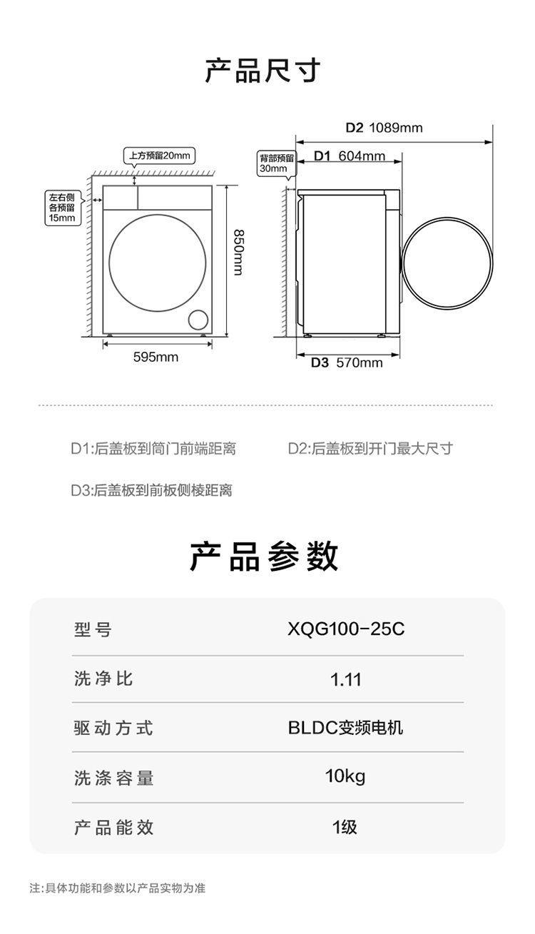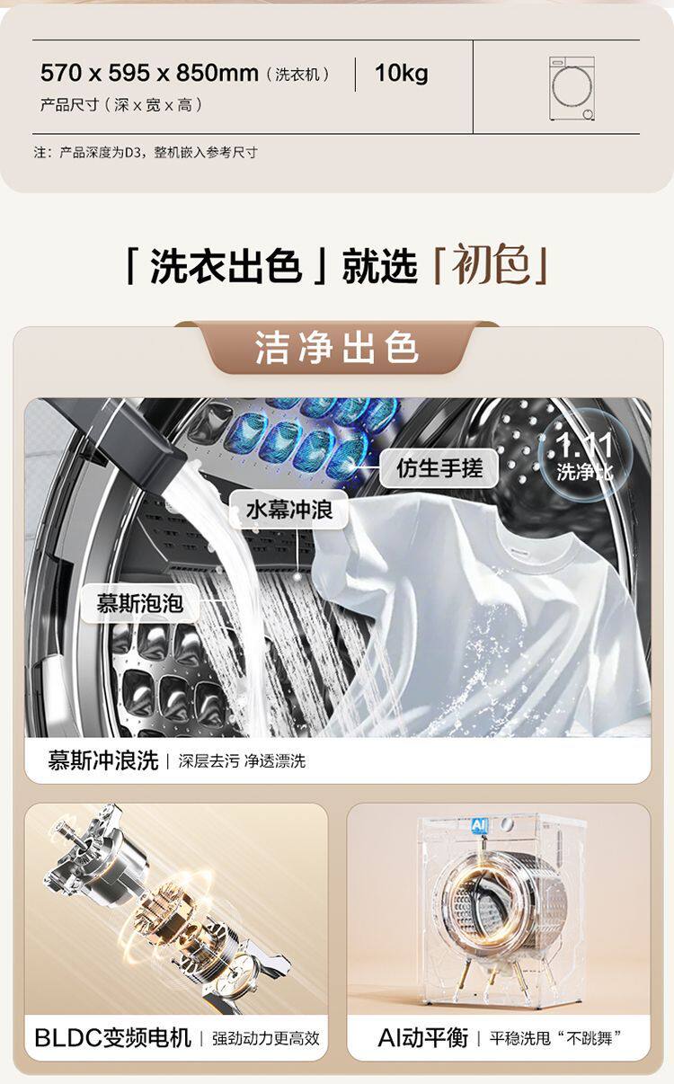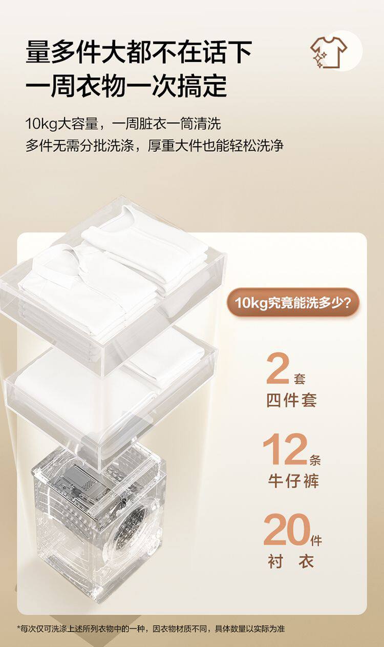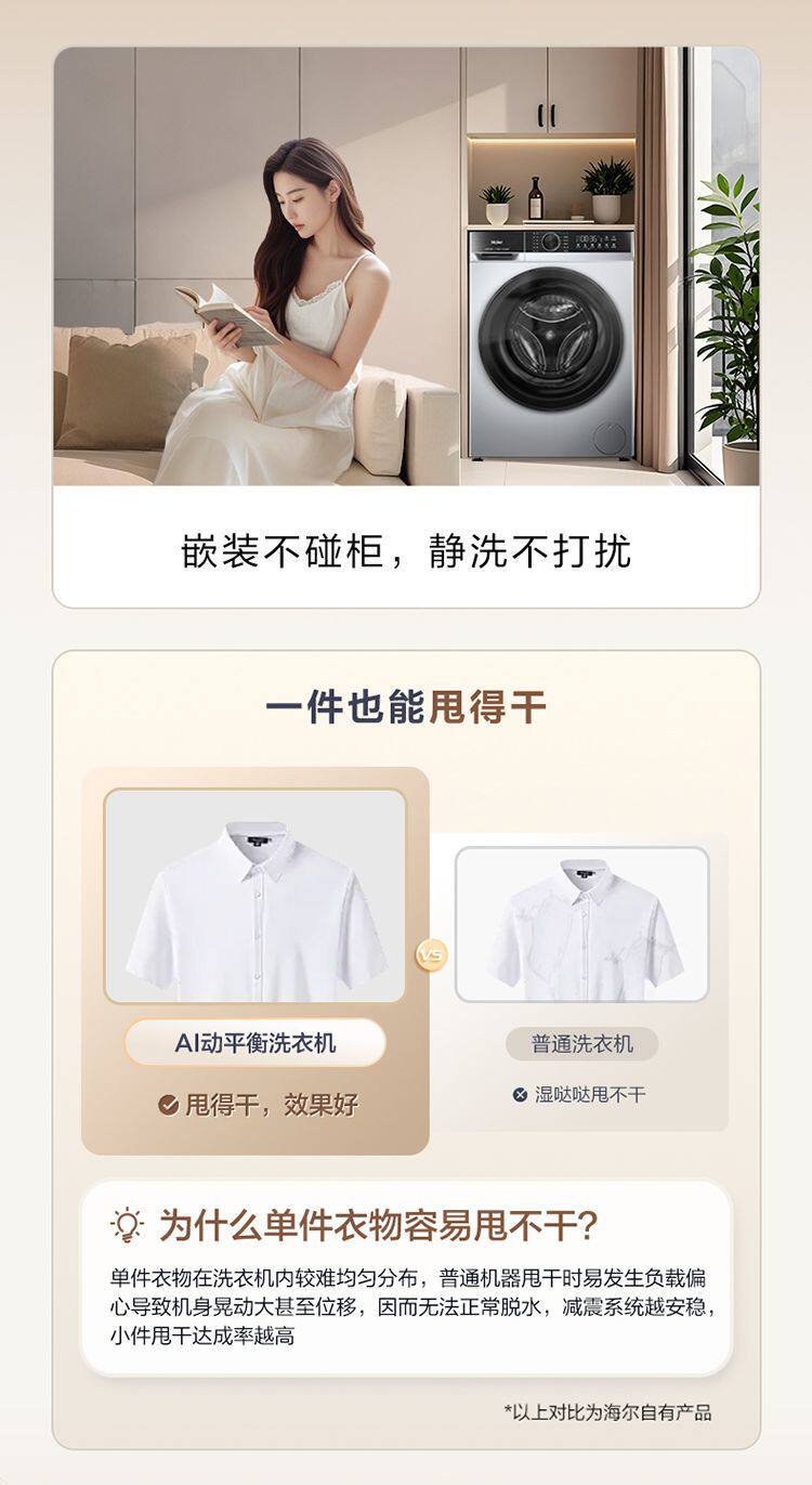 Haier Washing Machine Drum Fully Automatic Household 10kg Variable Frequency Dual Spray Ultra-Thin Embedded Xqg100-25C