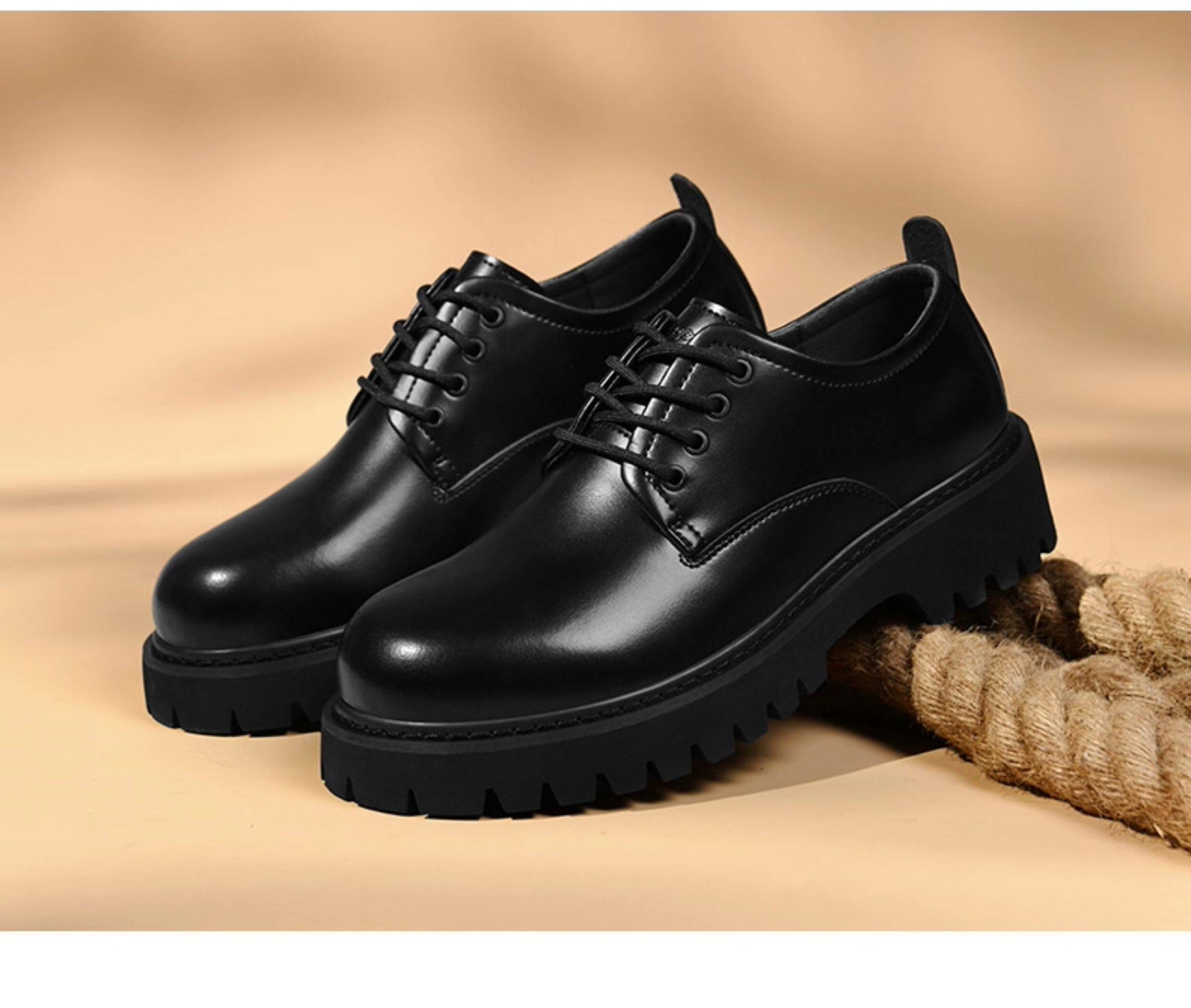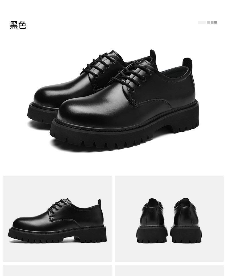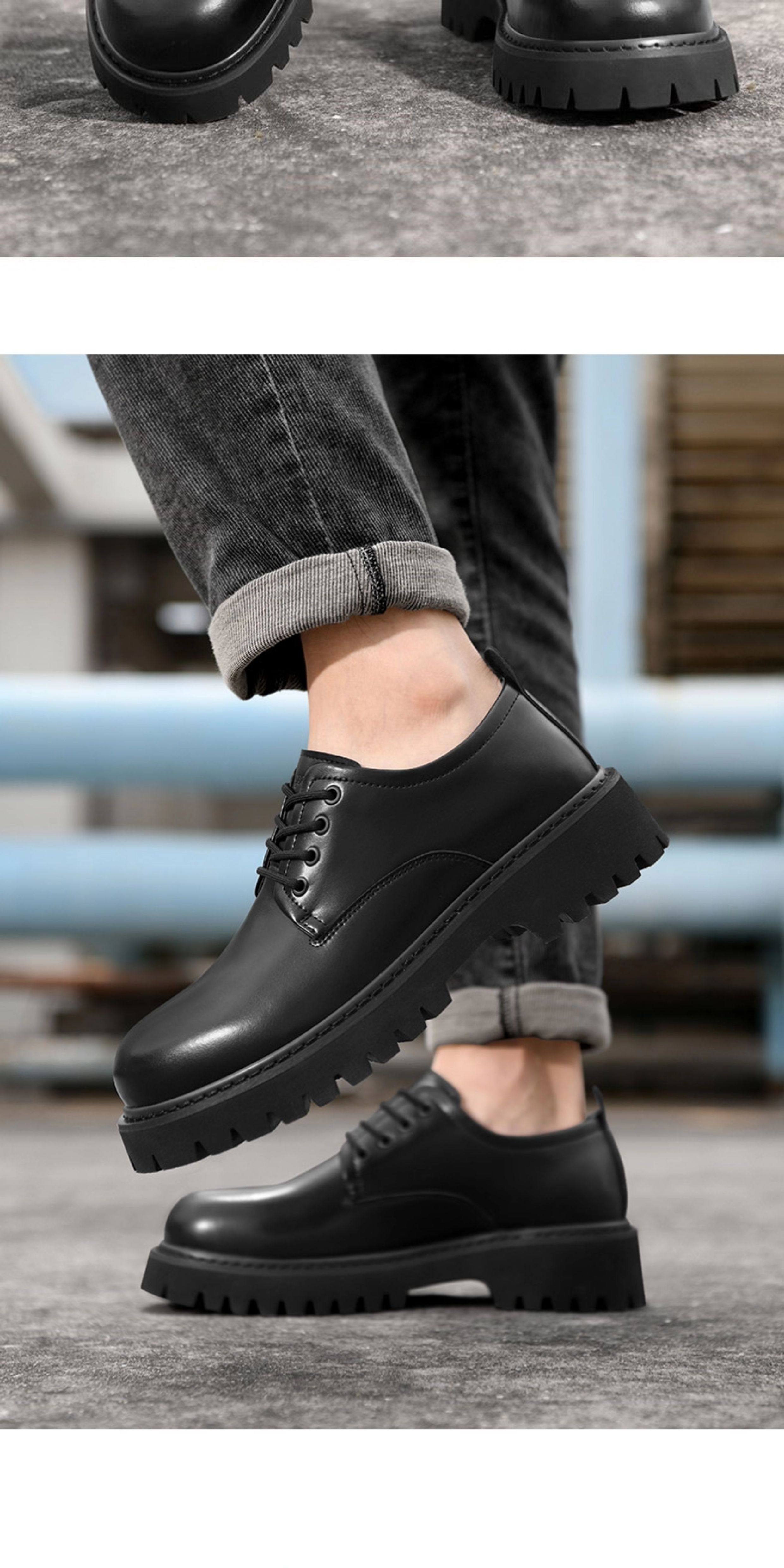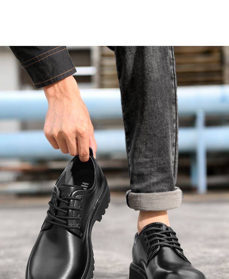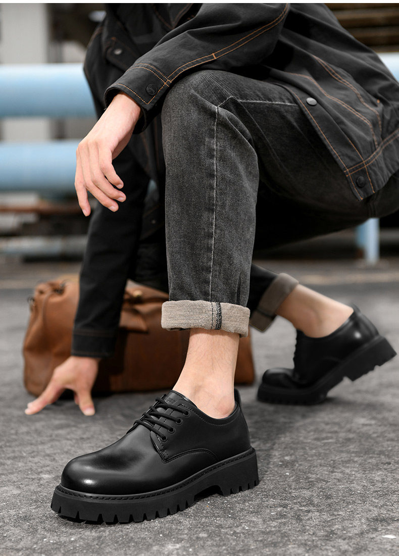 Heilan House Derby Shoes for Men, Round-Toe Large Shoes, Black Work Shoes, Commuter Martin Boots, Thick-Soled Height-Increasing Leather Shoes