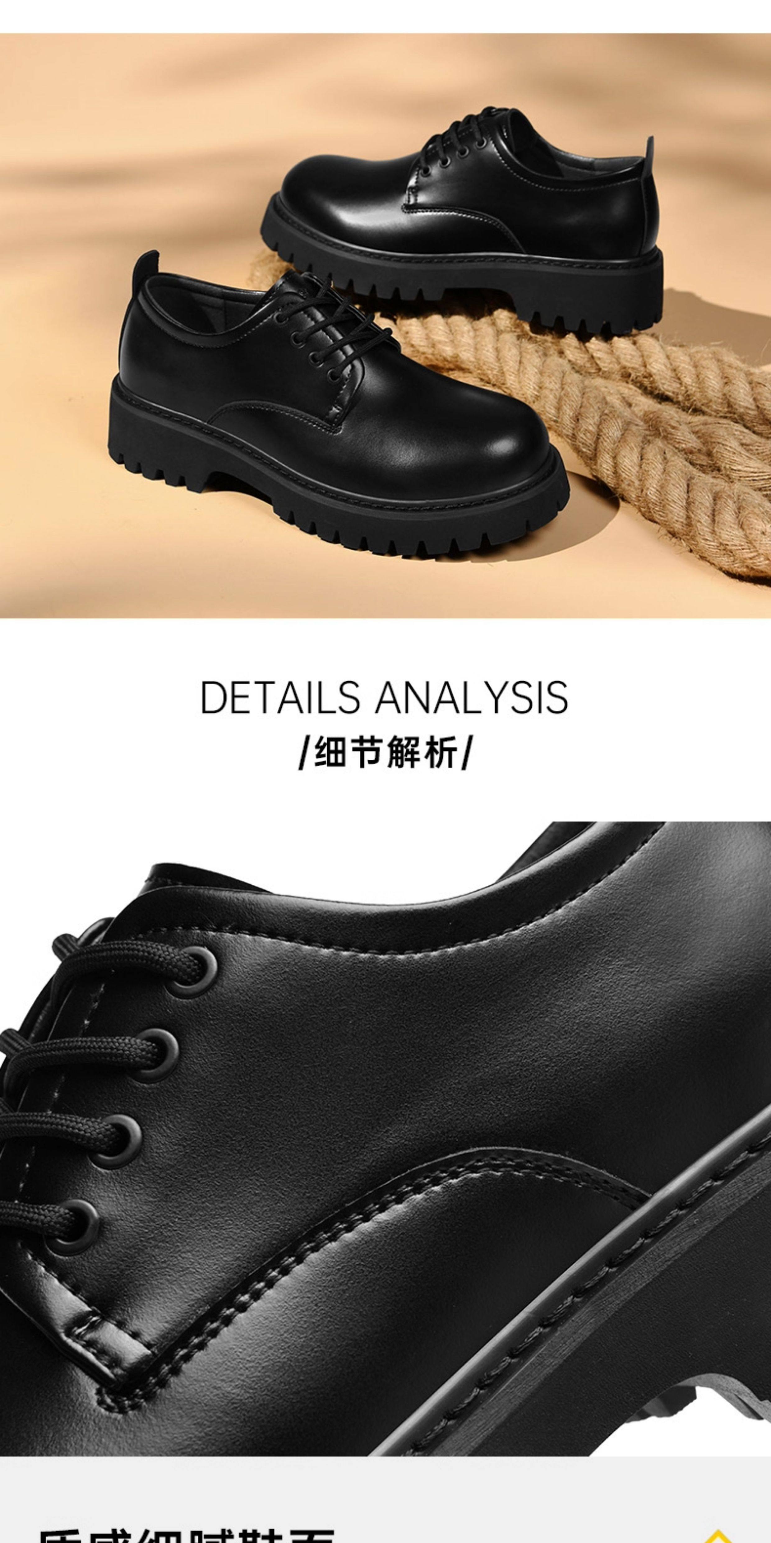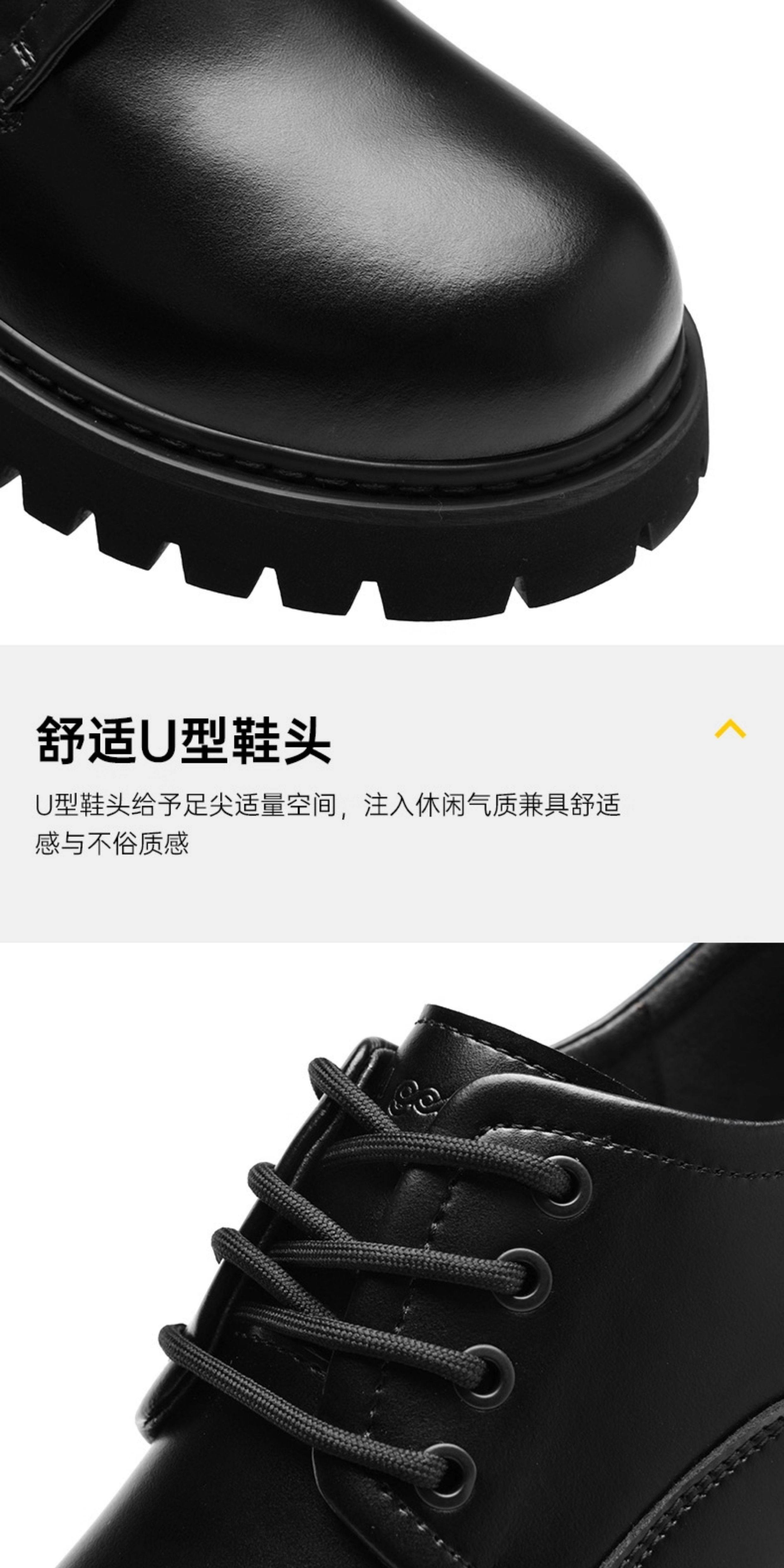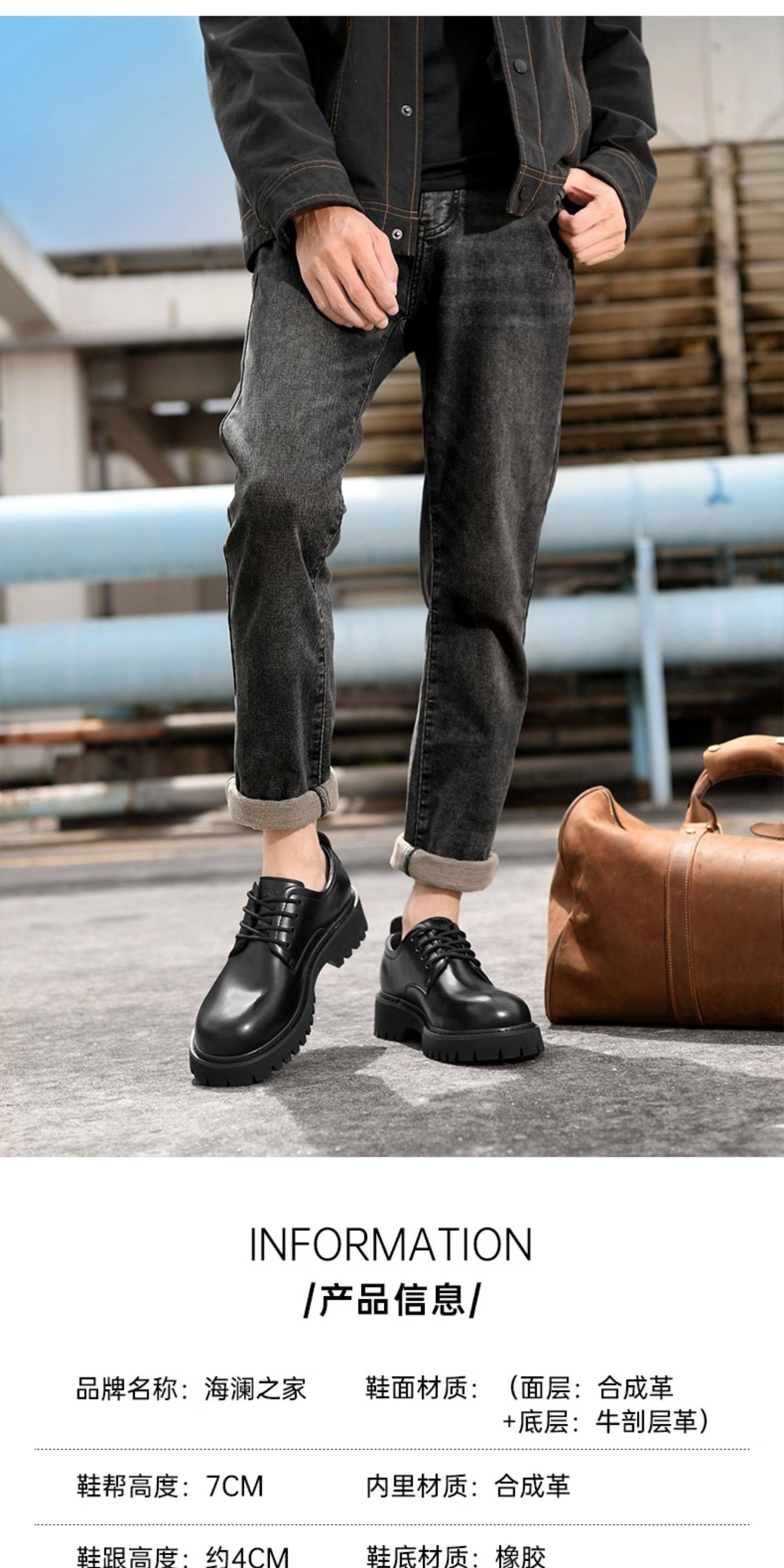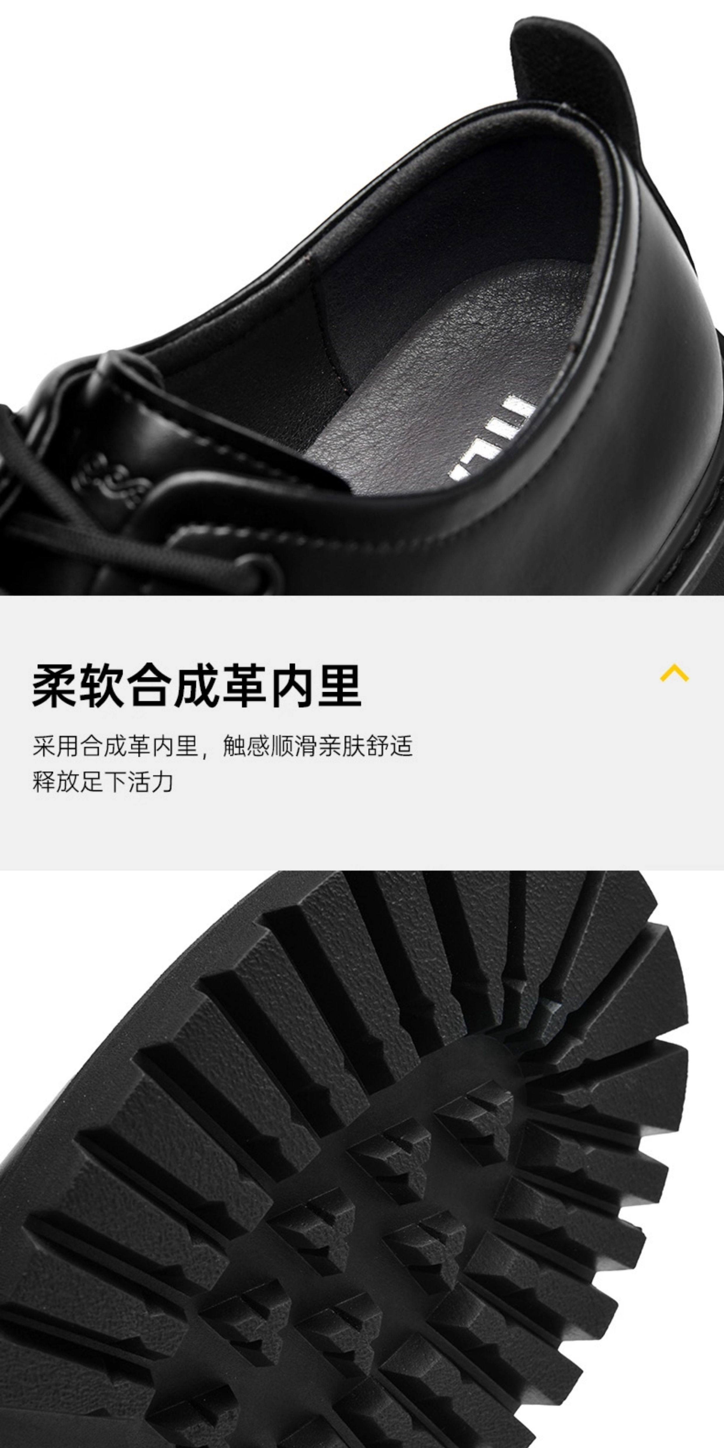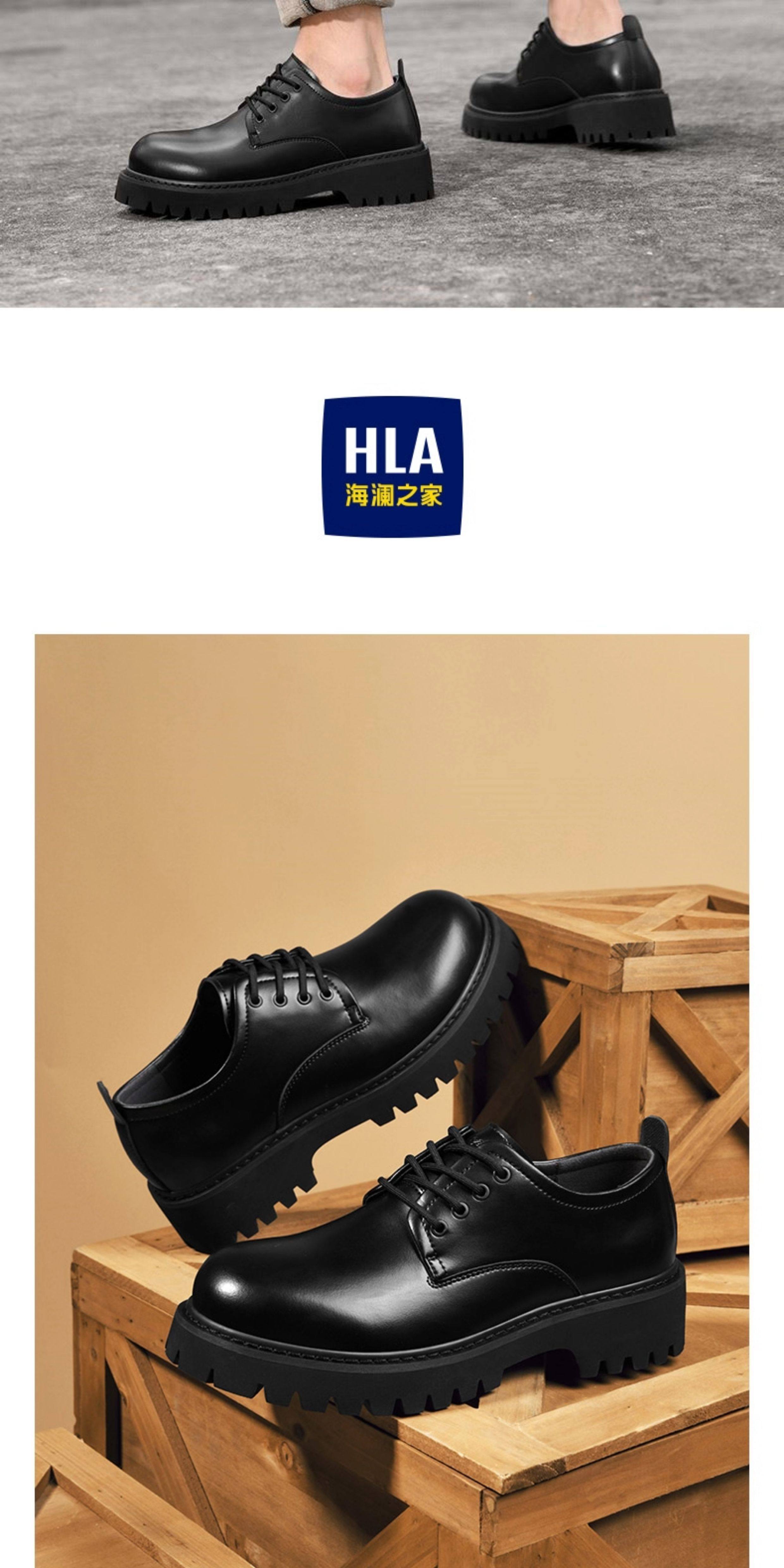Heilan House Derby Shoes for Men, Round-Toe Large Shoes, Black Work Shoes, Commuter Martin Boots, Thick-Soled Height-Increasing Leather Shoes