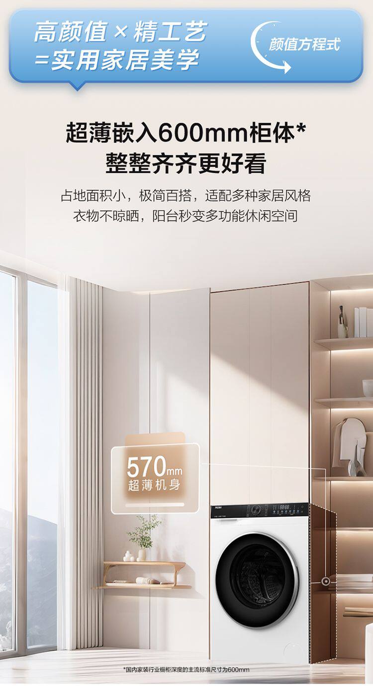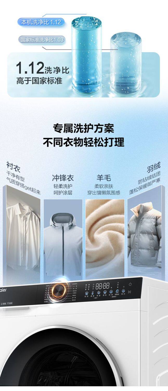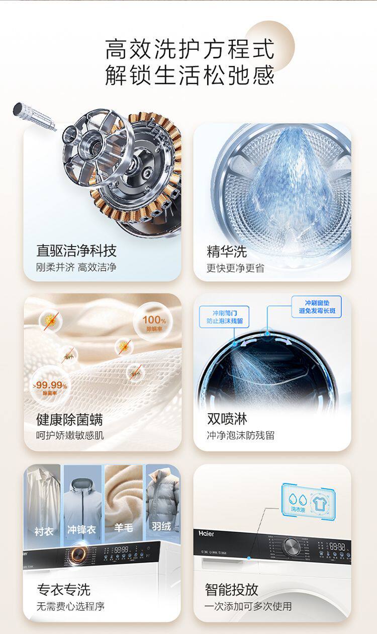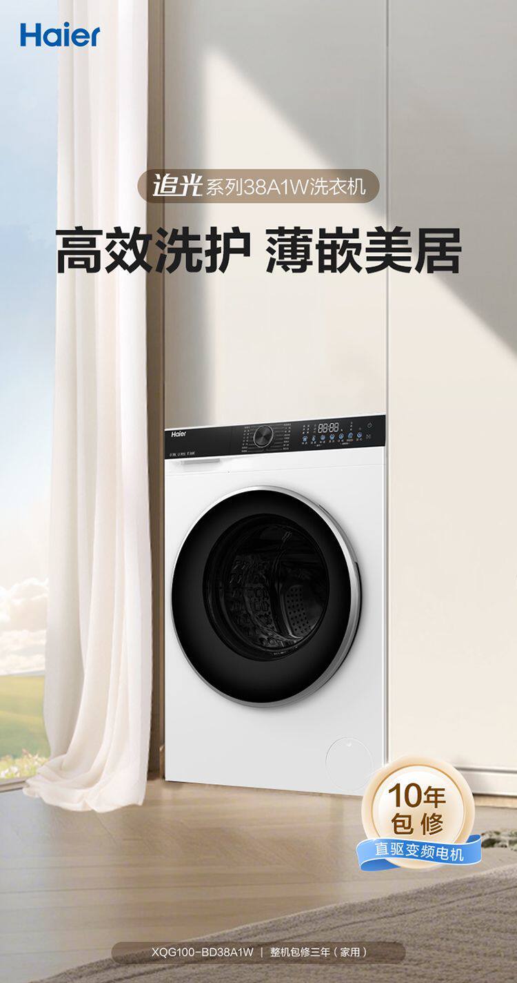 Haier Washing Machine Drum Fully Automatic White Household 10kg Direct Drive Inverter Ultra-Thin Xqg100-Bd38A1W