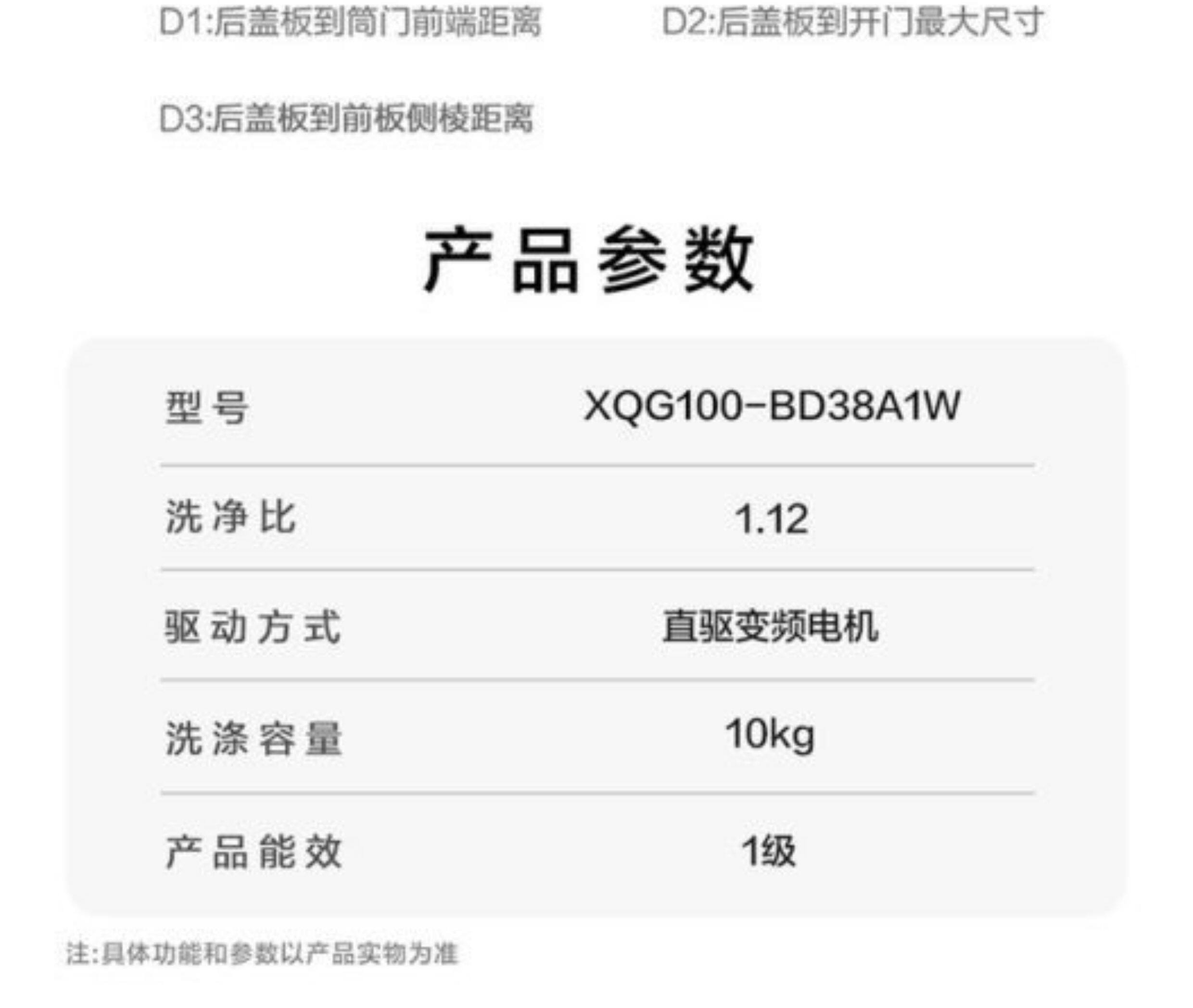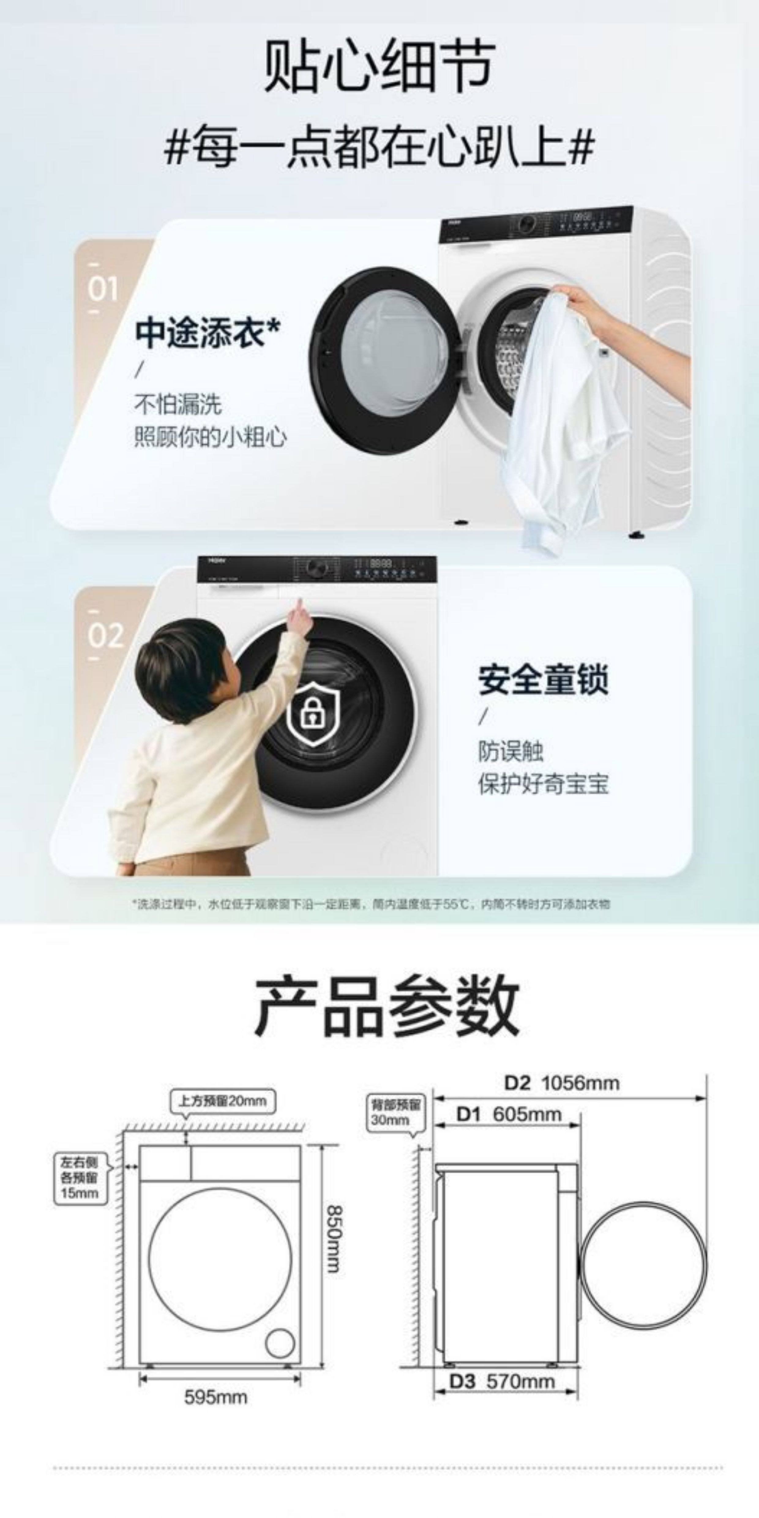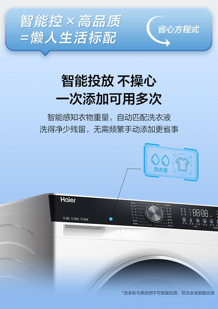 Haier Washing Machine Drum Fully Automatic White Household 10kg Direct Drive Inverter Ultra-Thin Xqg100-Bd38A1W