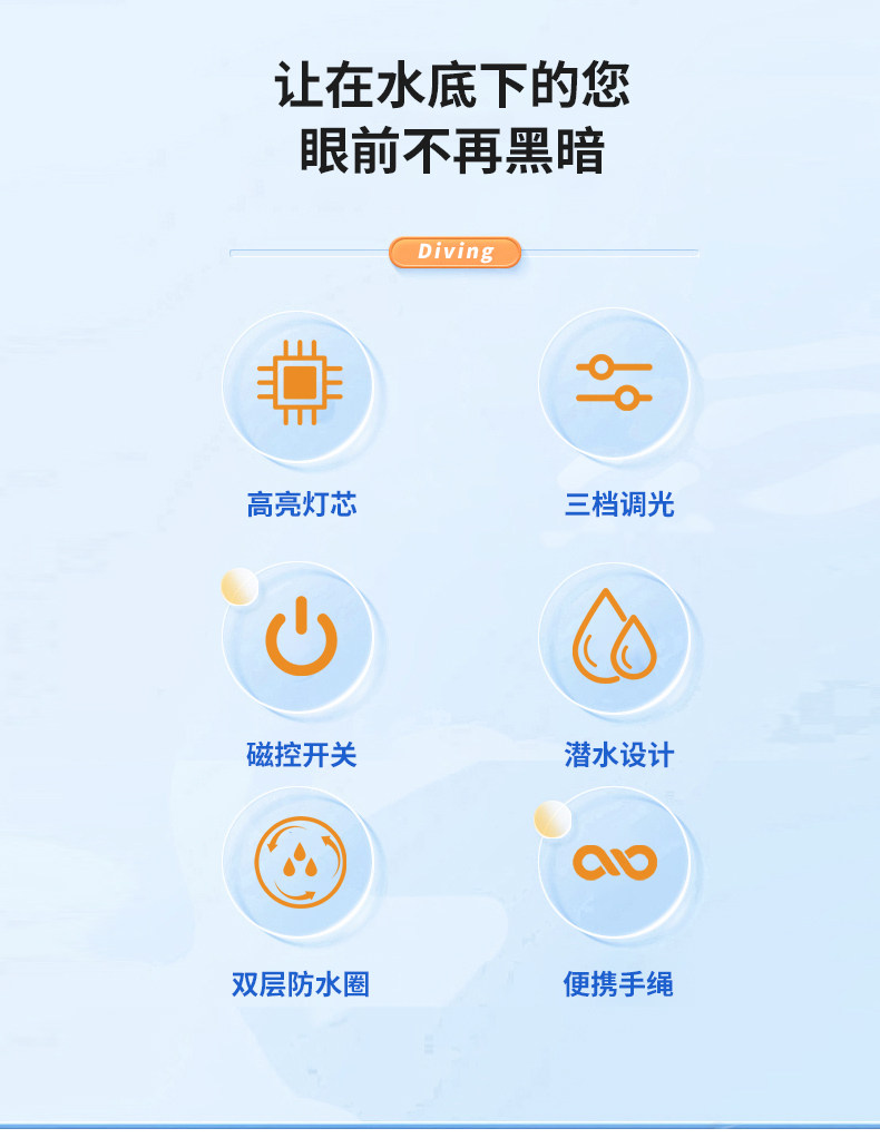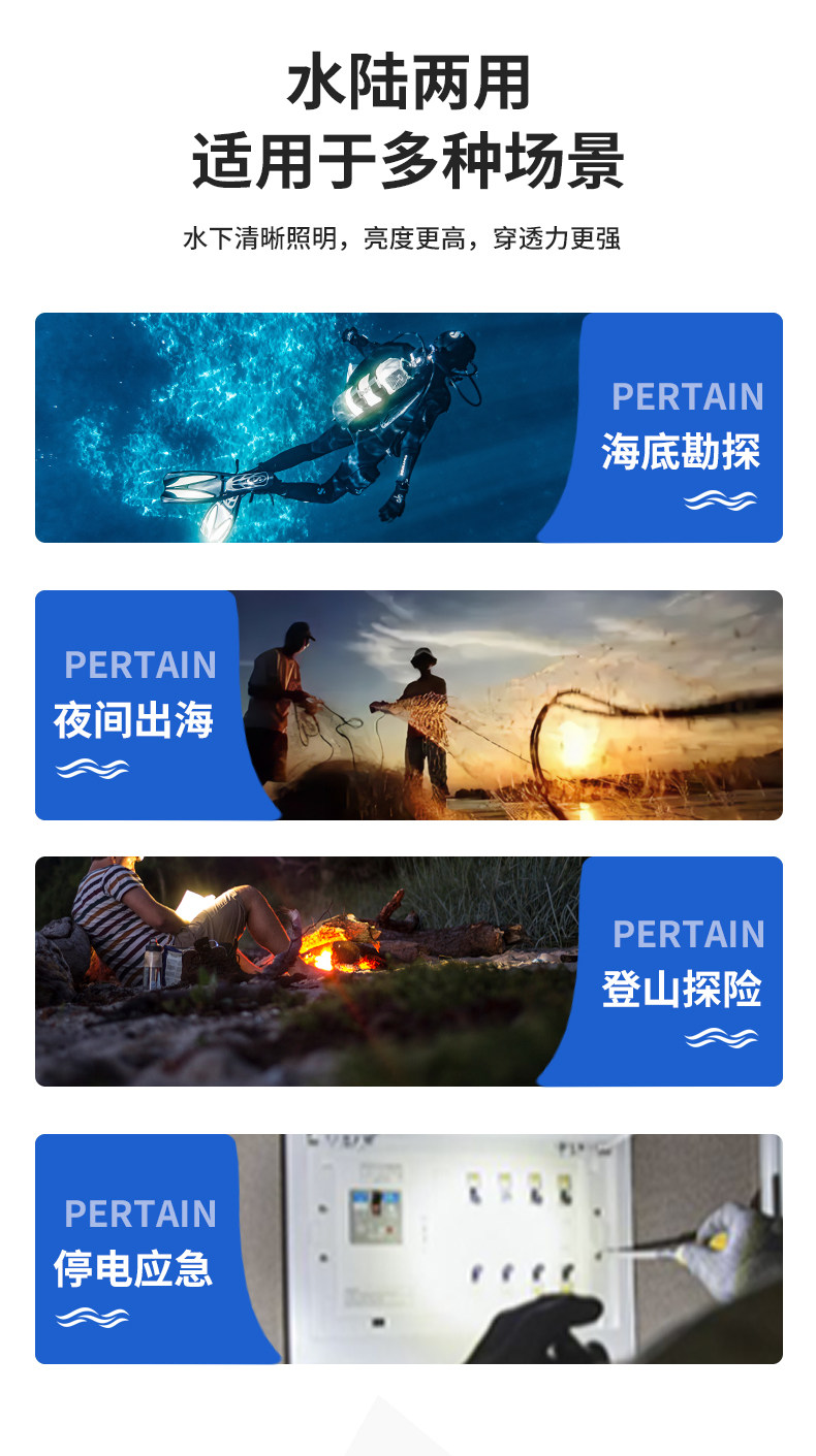 Applicable Environment Underwater Engineering,Hike,Diving,Camping,Night Riding,Go to the Sea to Salvage,Everyday Carry,Exploration,Auto Repair/Maintenance,Flaw Detection,Emergency Disaster Relief,Water Rescue,Caving Adventure