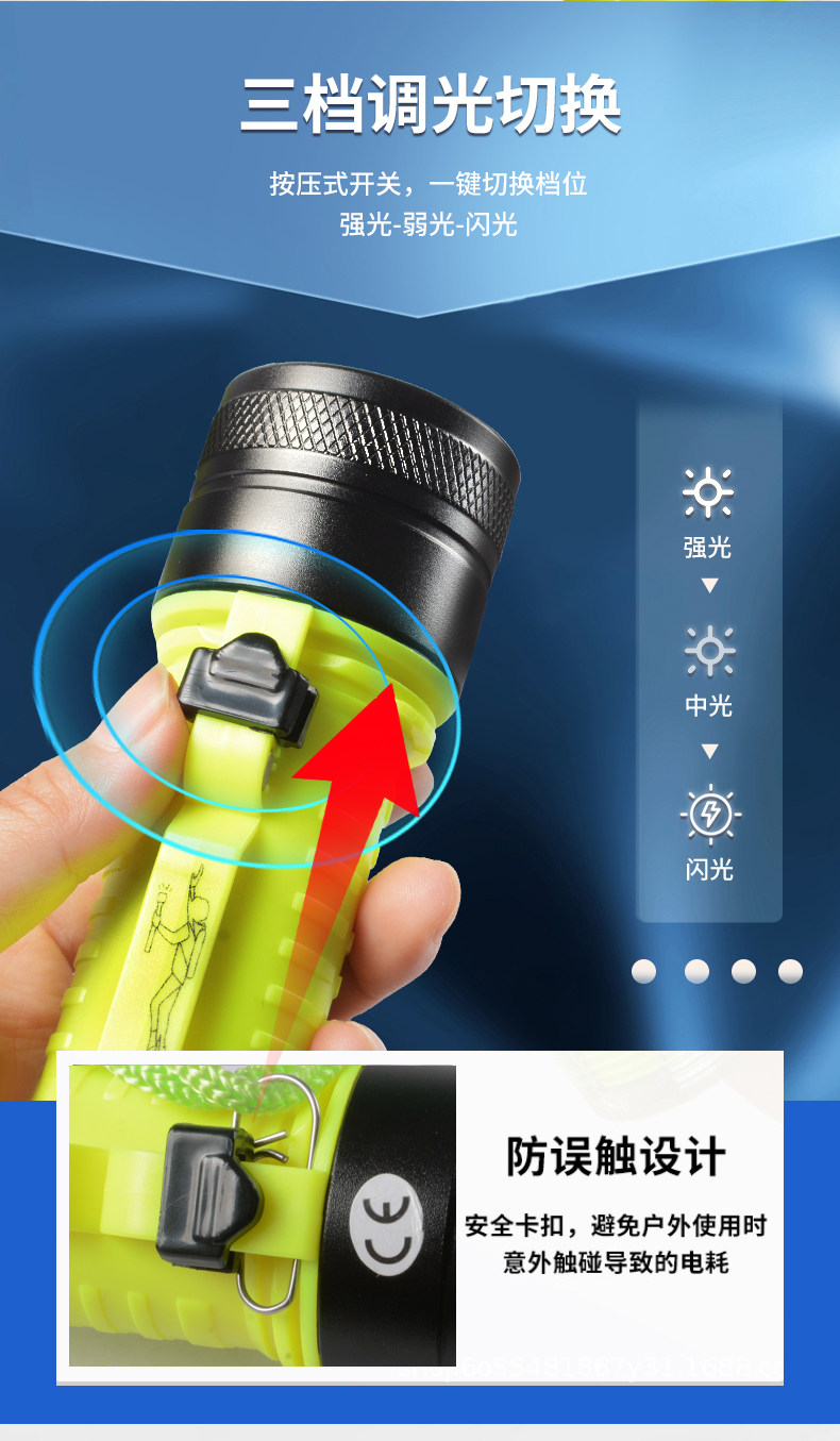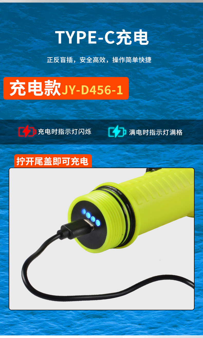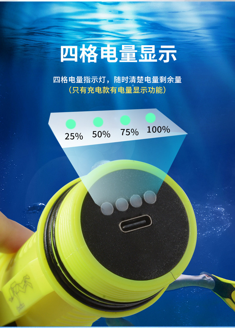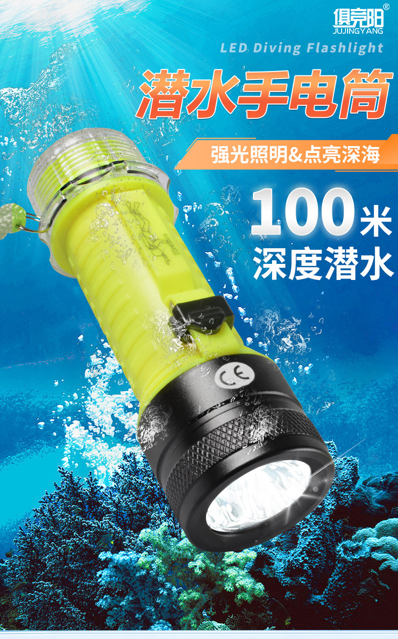 Diving Flashlight with Strong Light, Rechargeable, Outdoor Ultra-Bright, Professional Deep Diving Waterproof, Special Light for Catching Fish Underwater