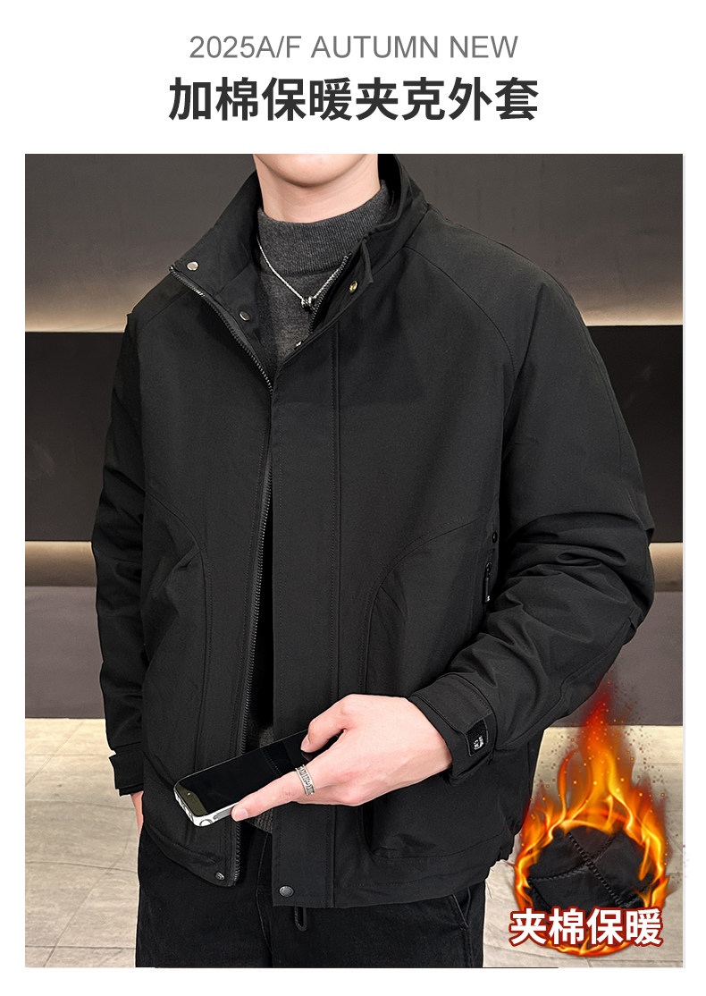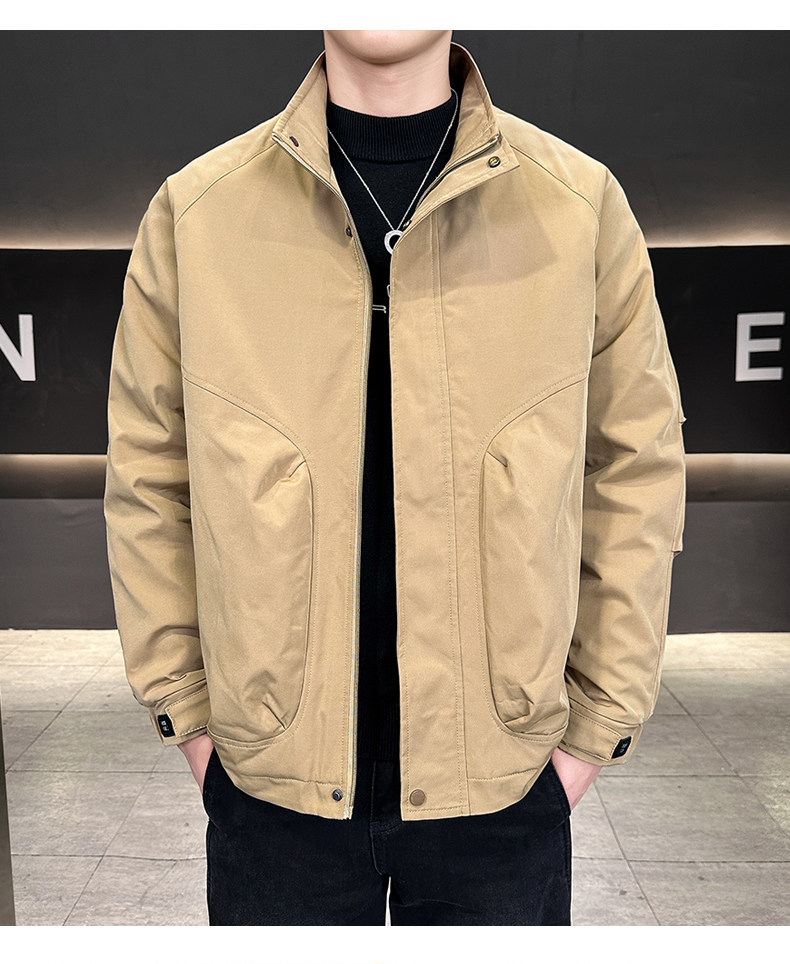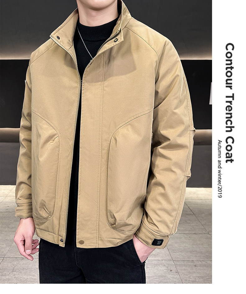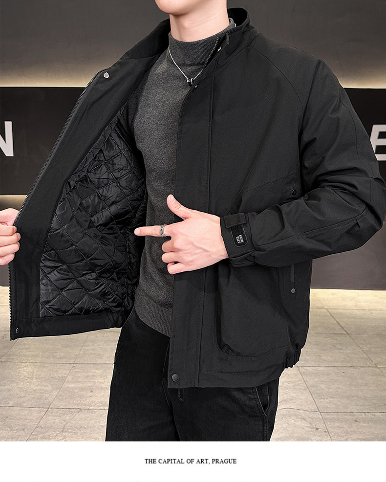 New Trendy Brand Autumn and Winter Men's Double-Layer Thickened Simple Fashion Versatile Jacket Warm Casual Workwear Stand Collar Coat