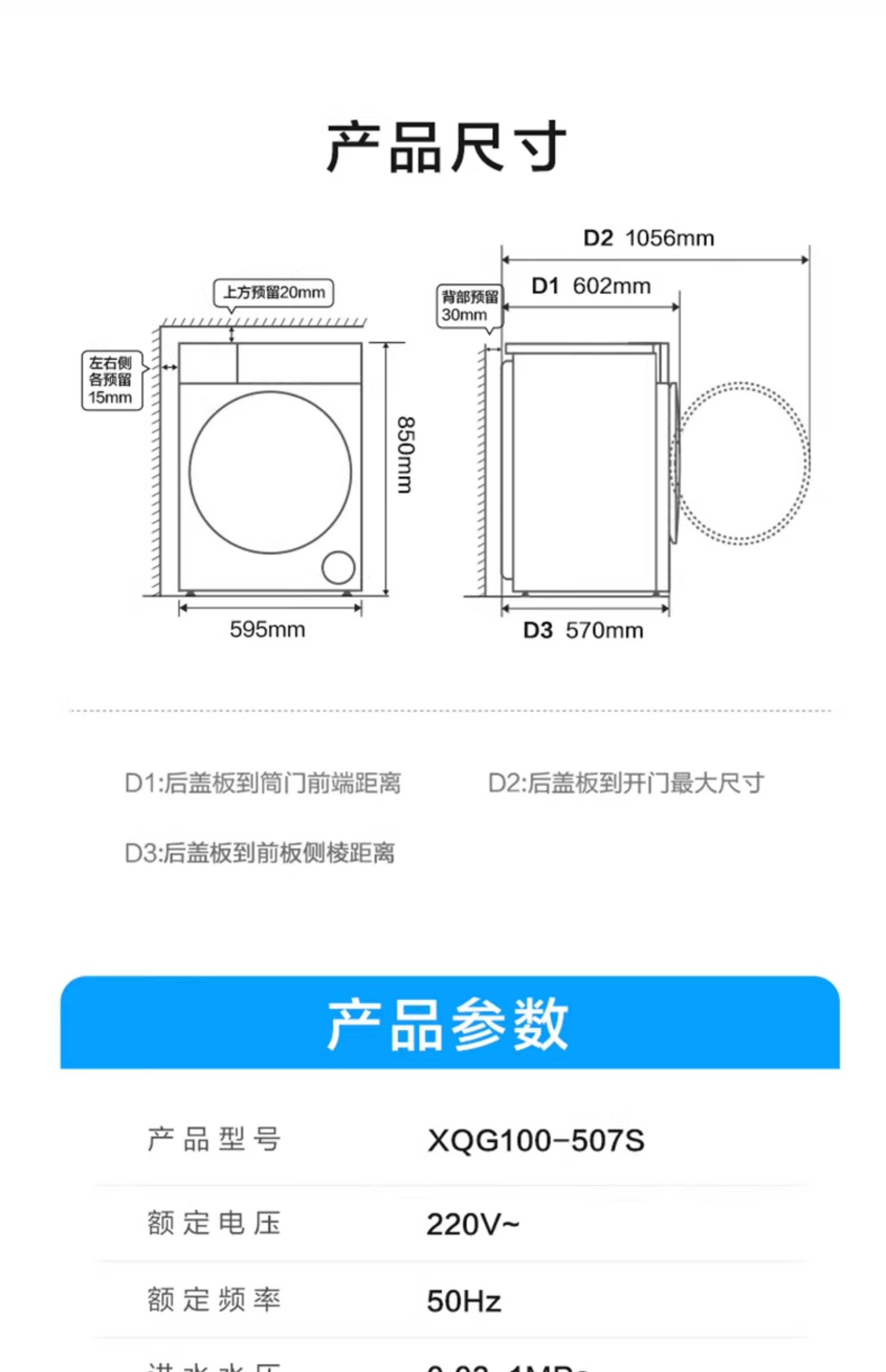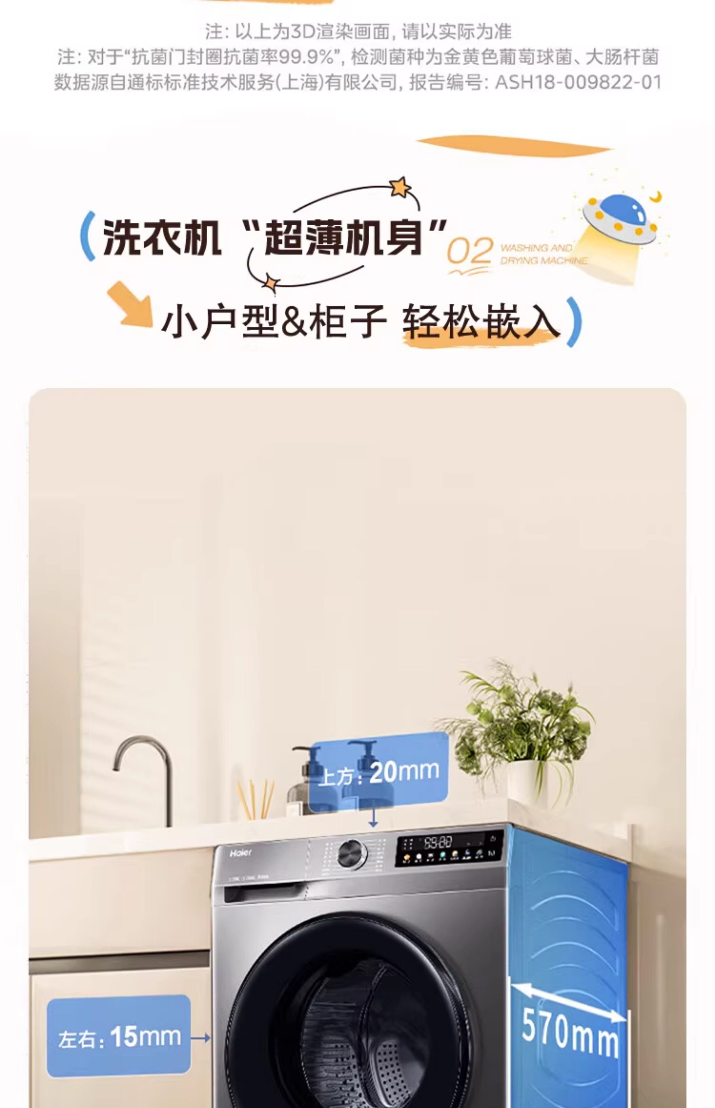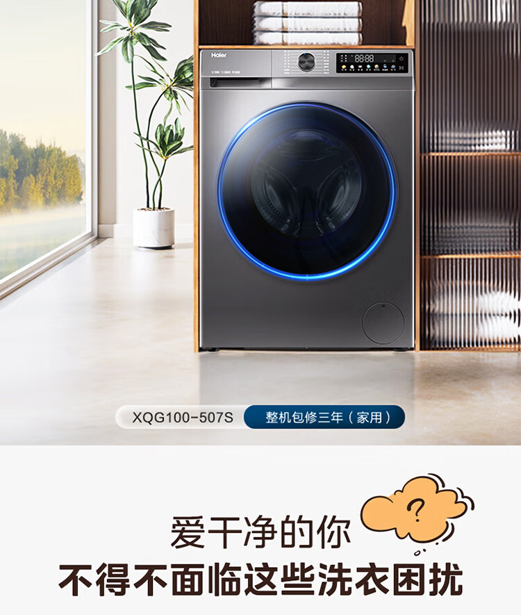 Haier Xqg100-507S New Ultra-Thin Six-Dimensional Shock-Absorbing Variable Frequency Dual Spray Drum Washing Machine