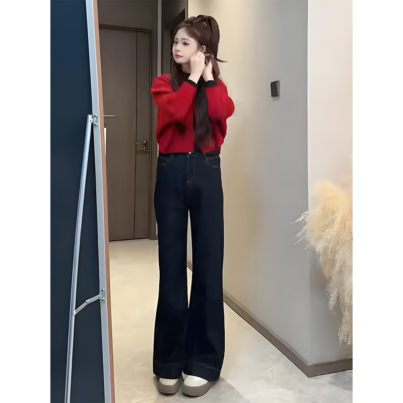 Wear a complete set of autumn new high-end and lazy temperament red sweater wide-leg pants suit for women elegantly and decently