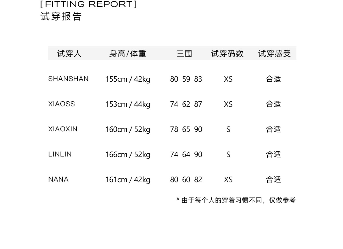 China (cm) 160-165/84-86 165-170 / 88-90 167-172 / 92-96 168-173 / 98-102 170-176 / 106-110