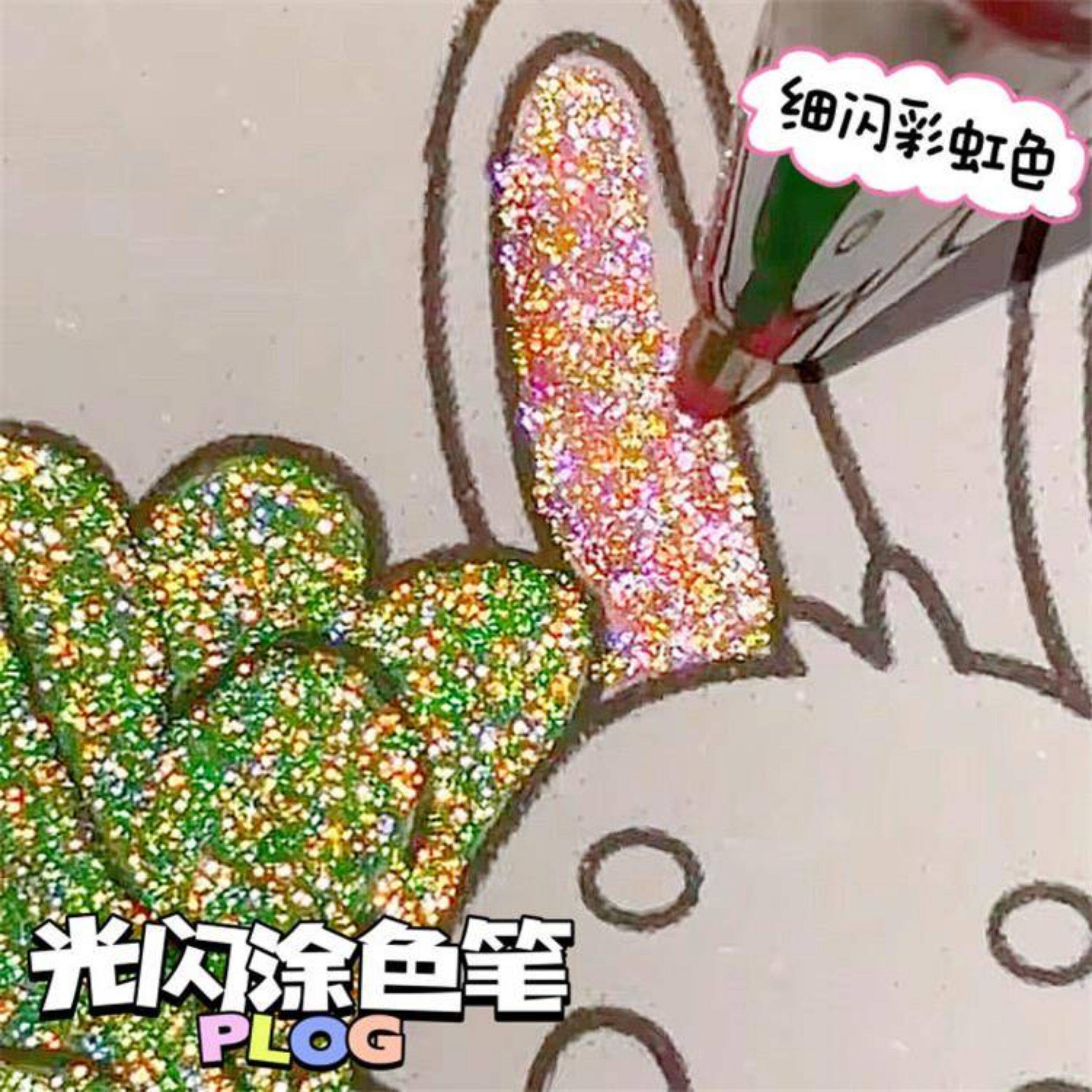 Glitter Pen Colorful with Glitter Powder Watercolor Pen DIY Marker Fluorescent Pearlescent Flowing Color-Changing Laser Coloring Drawing Pen