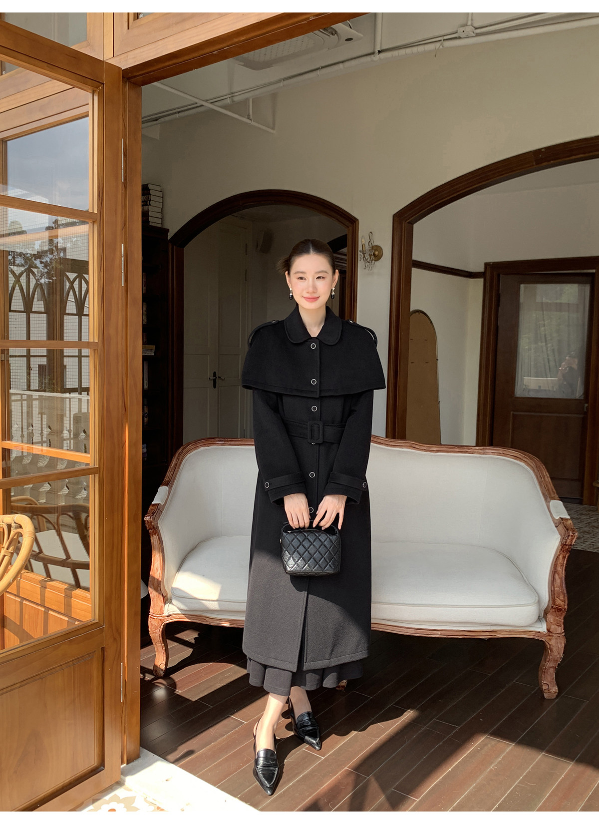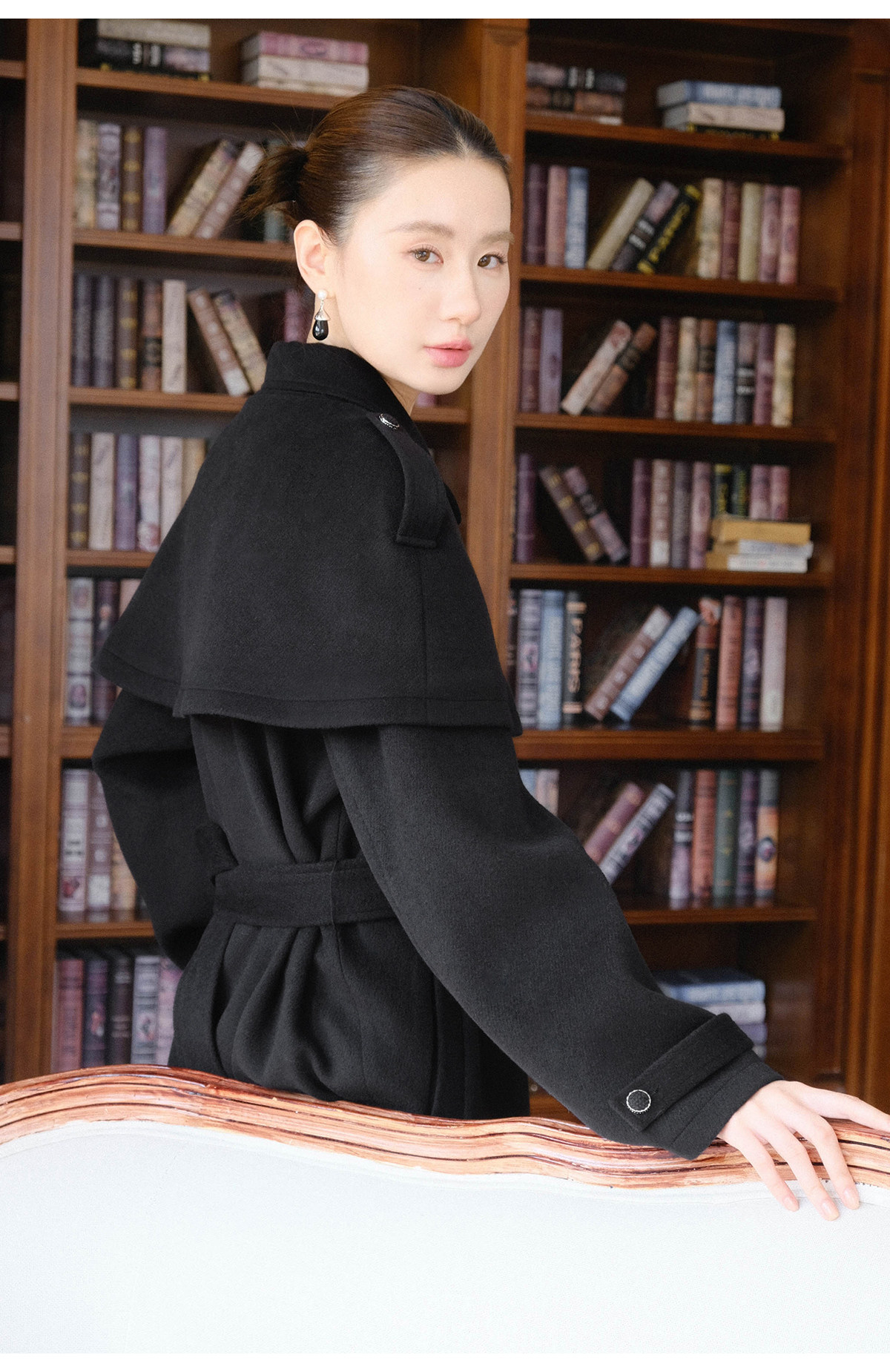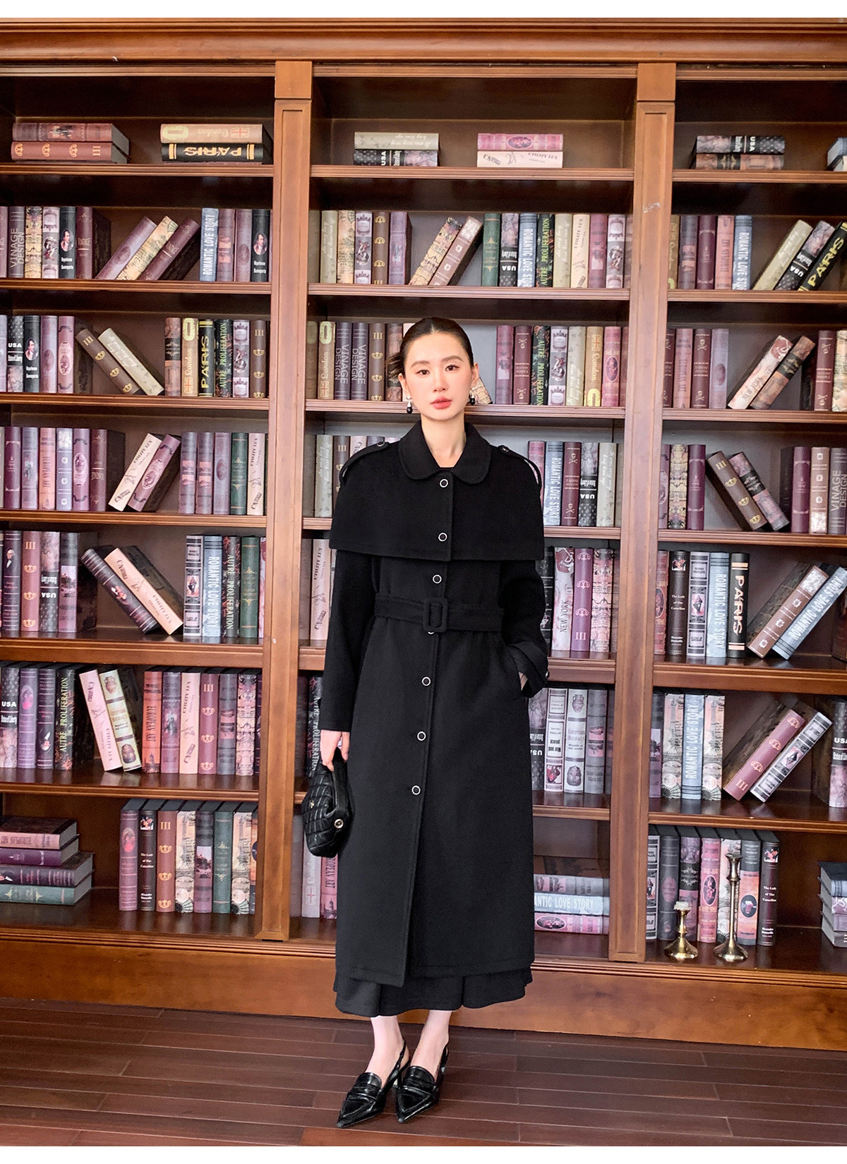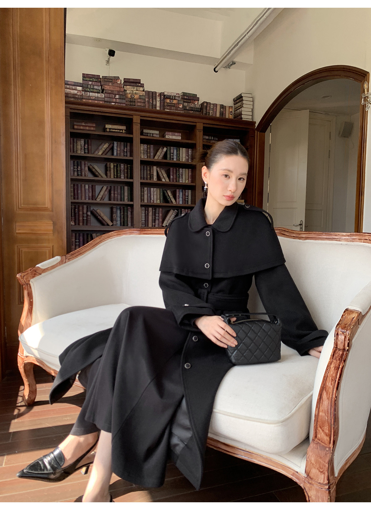 Xxning French Retro Cape Design Two-Way Woolen Coat for Women, Autumn and Winter High-End Fashion Waist-Cinching Jacket