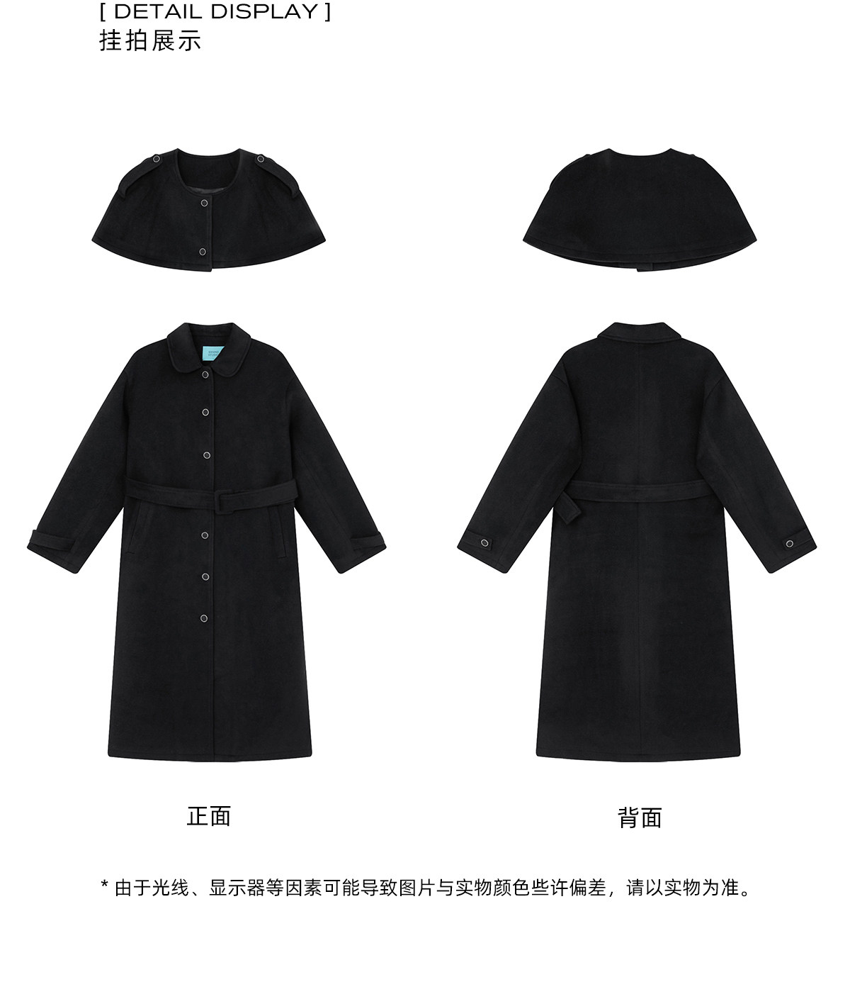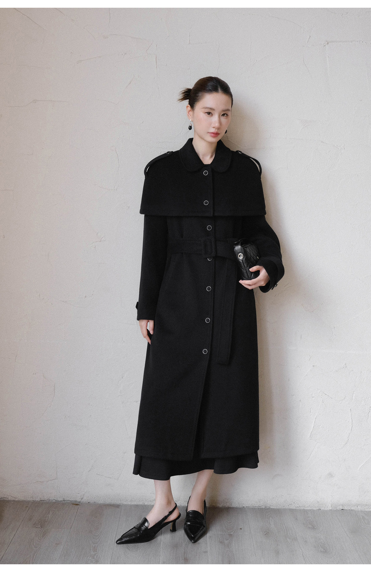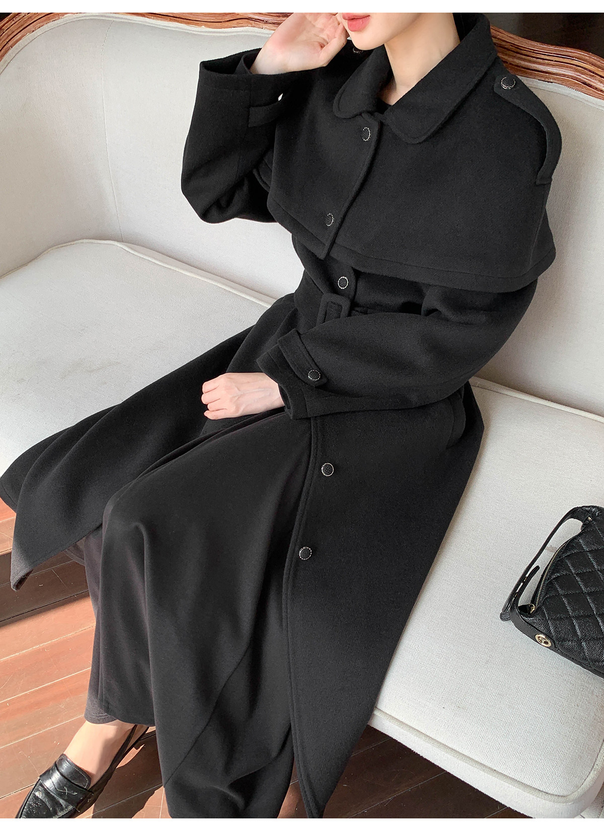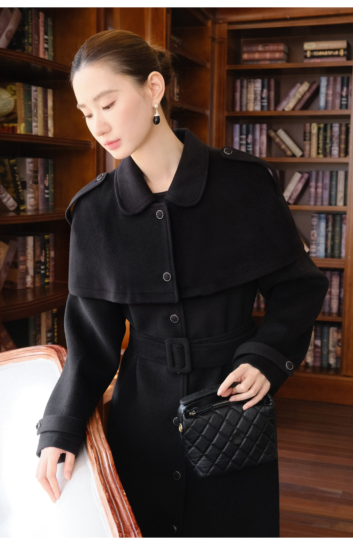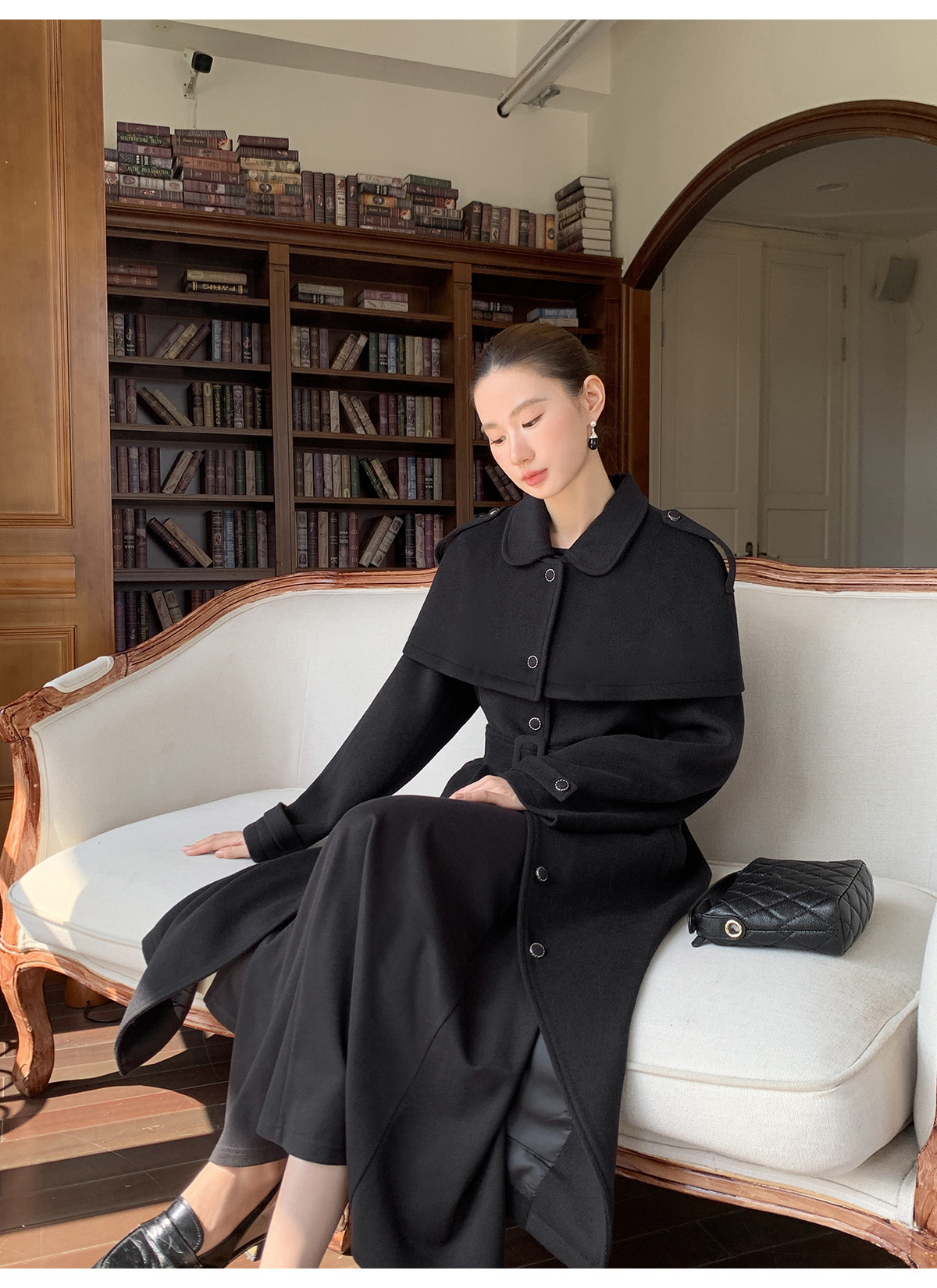 Xxning French Retro Cape Design Two-Way Woolen Coat for Women, Autumn and Winter High-End Fashion Waist-Cinching Jacket