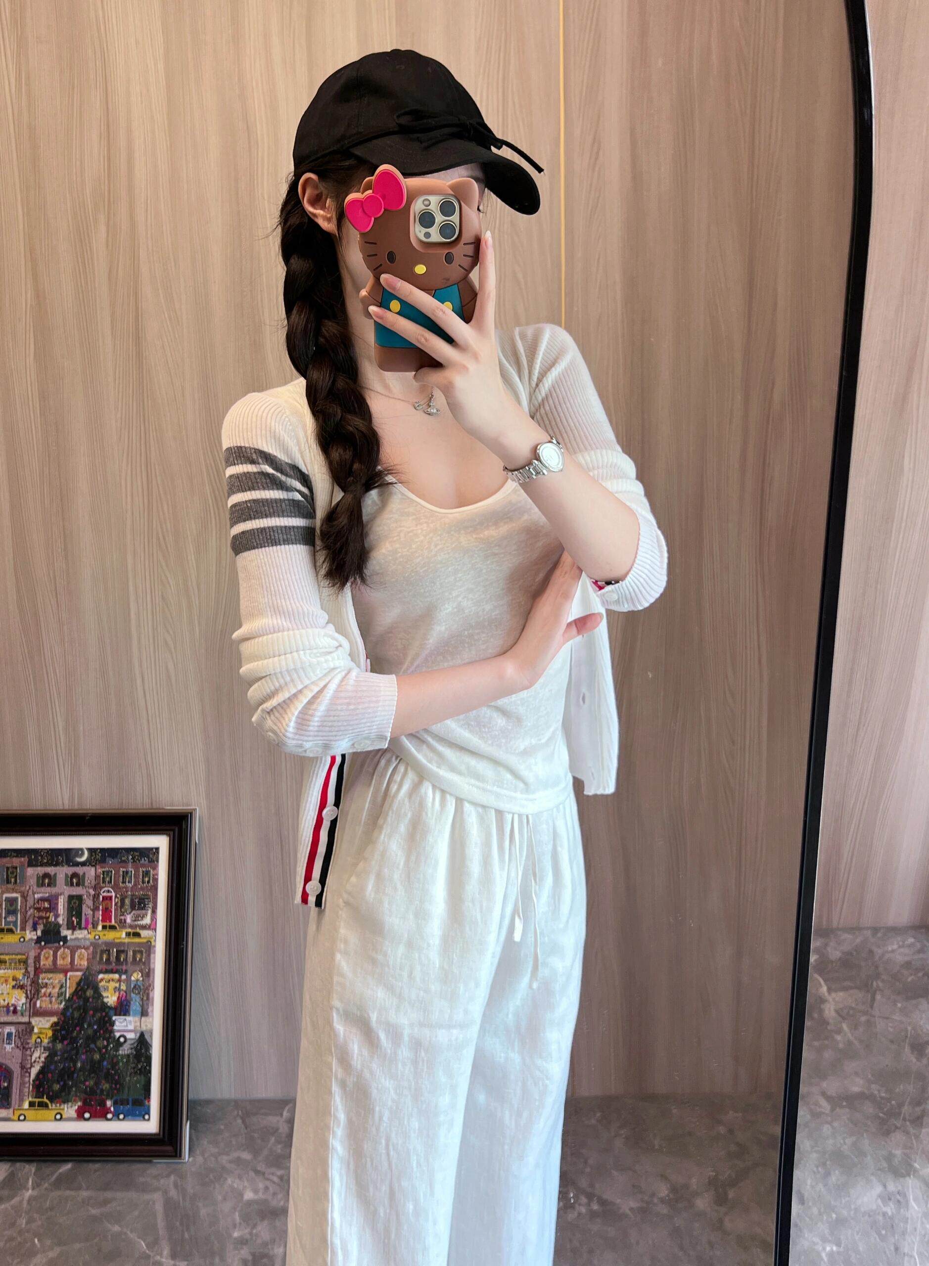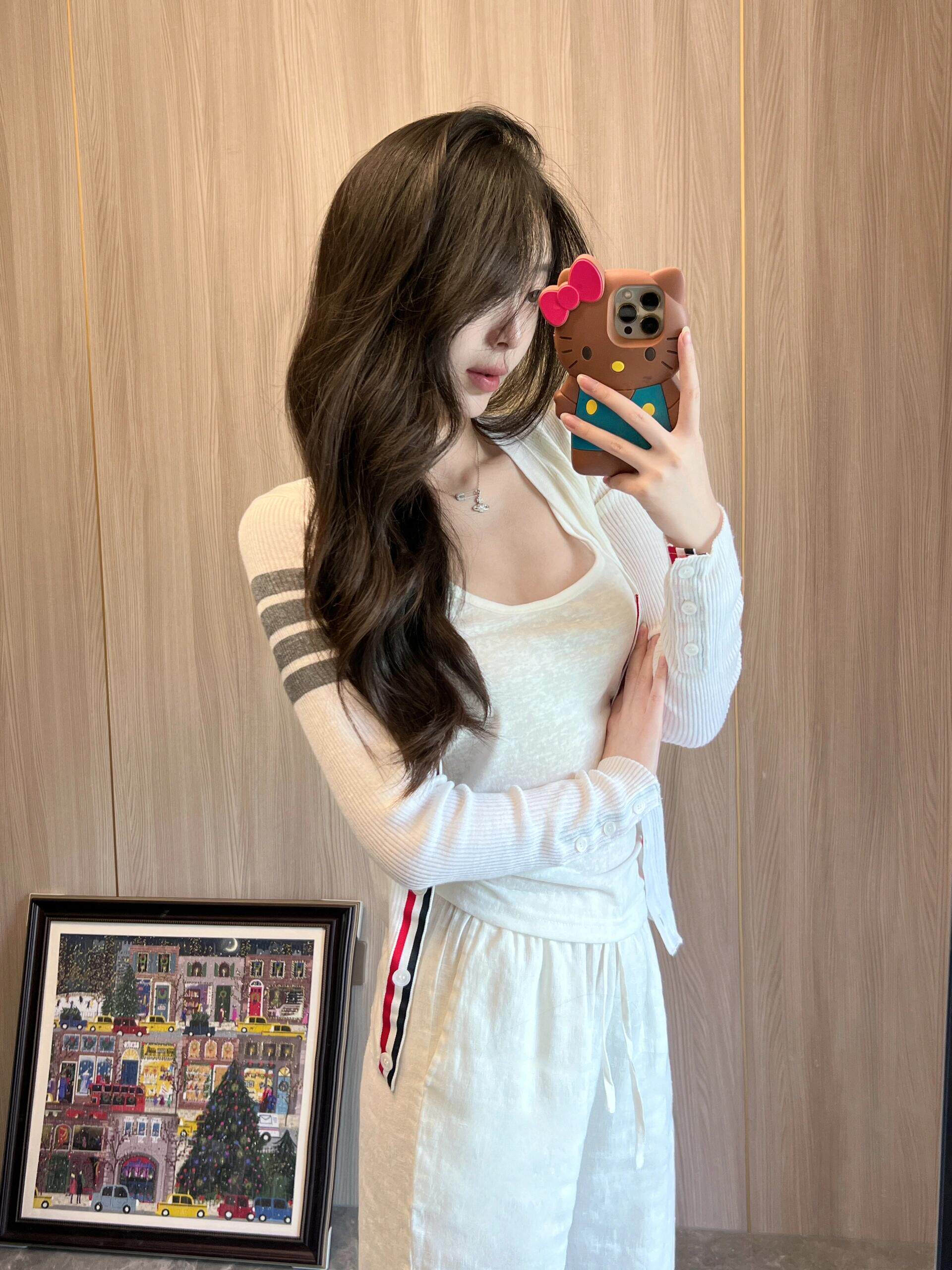 [College Girl] White Knitted Loose Cardigan for Women, Thin Outerwear, Slim Fit, Long Sleeve Top, Sun Protection Shirt
