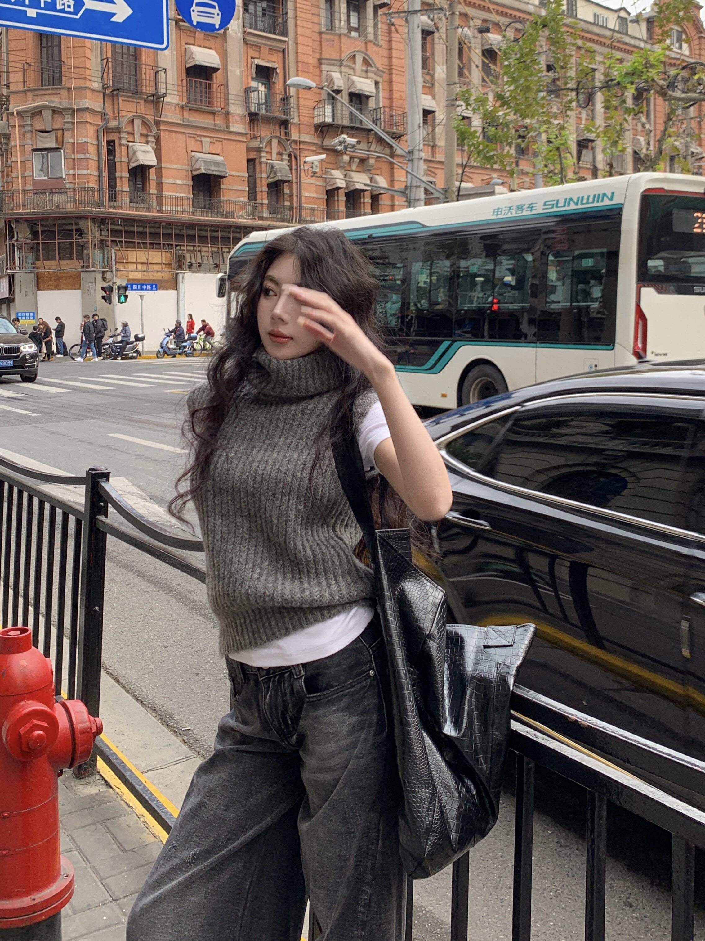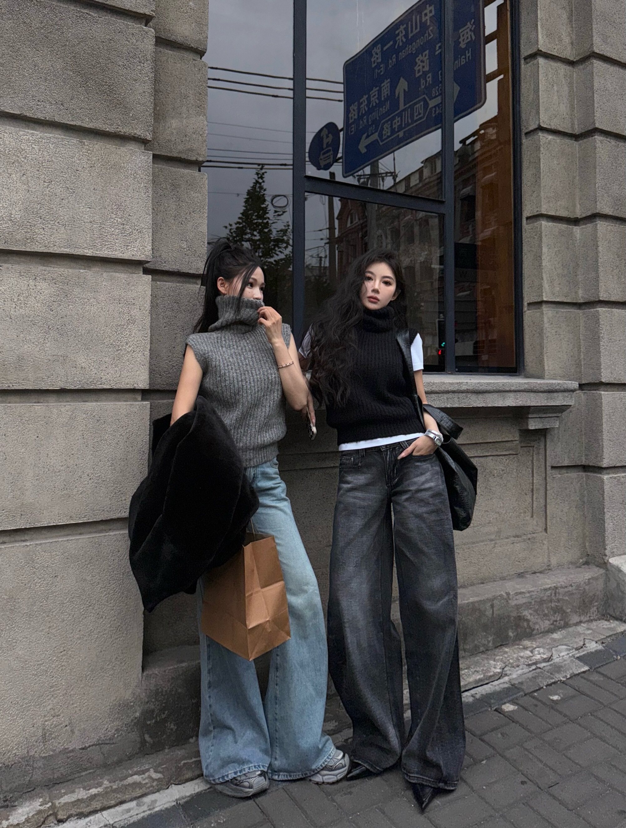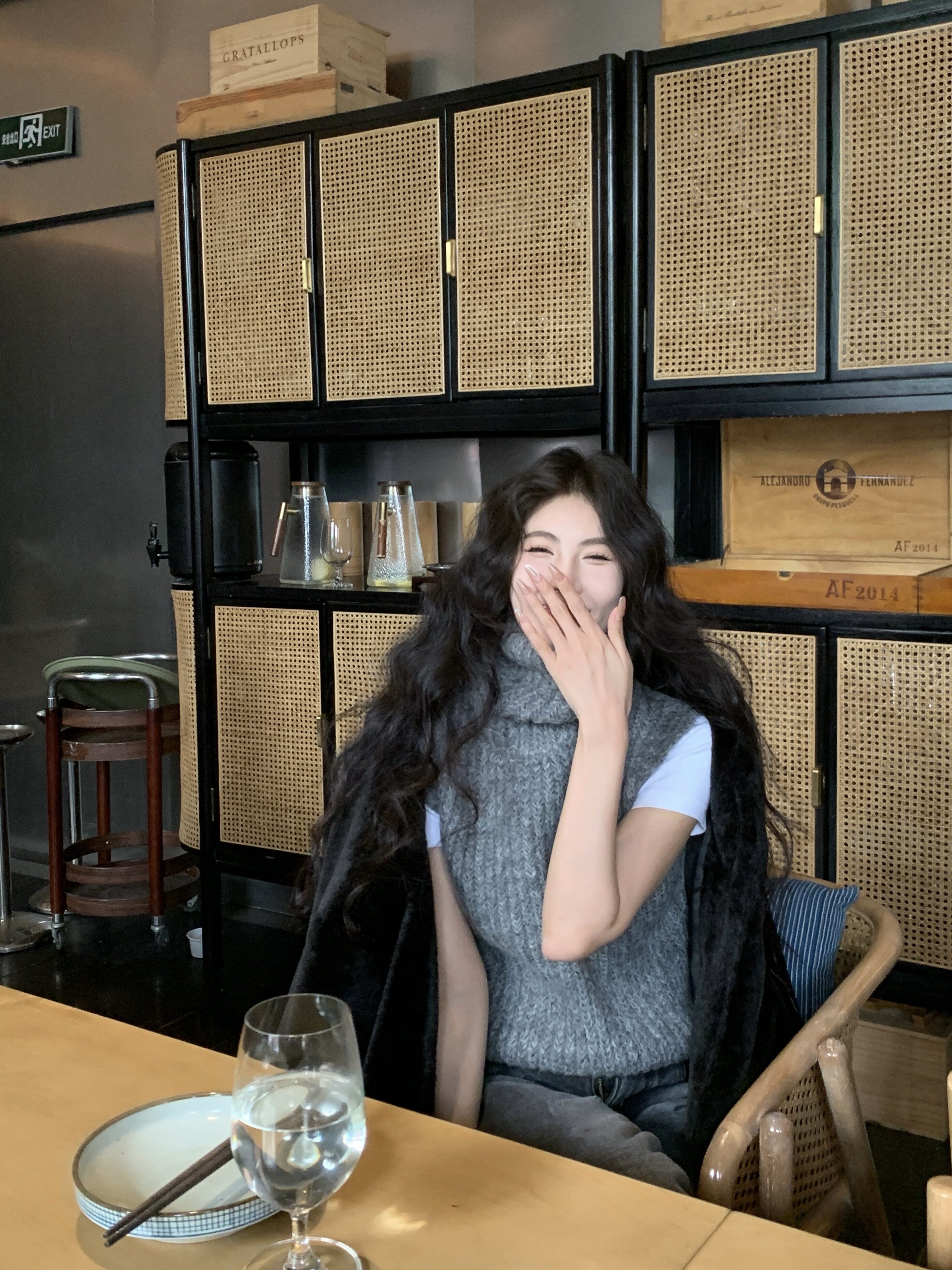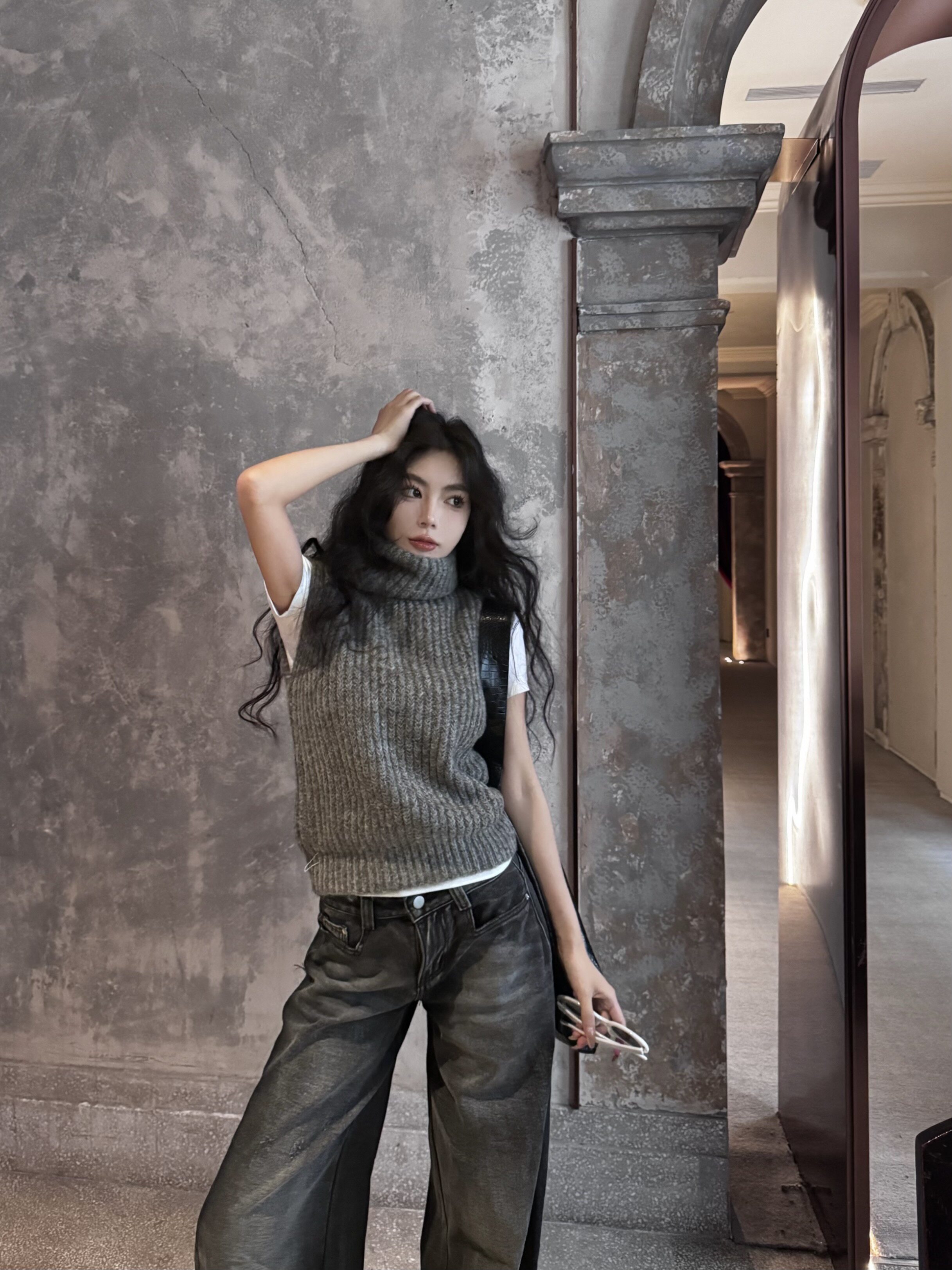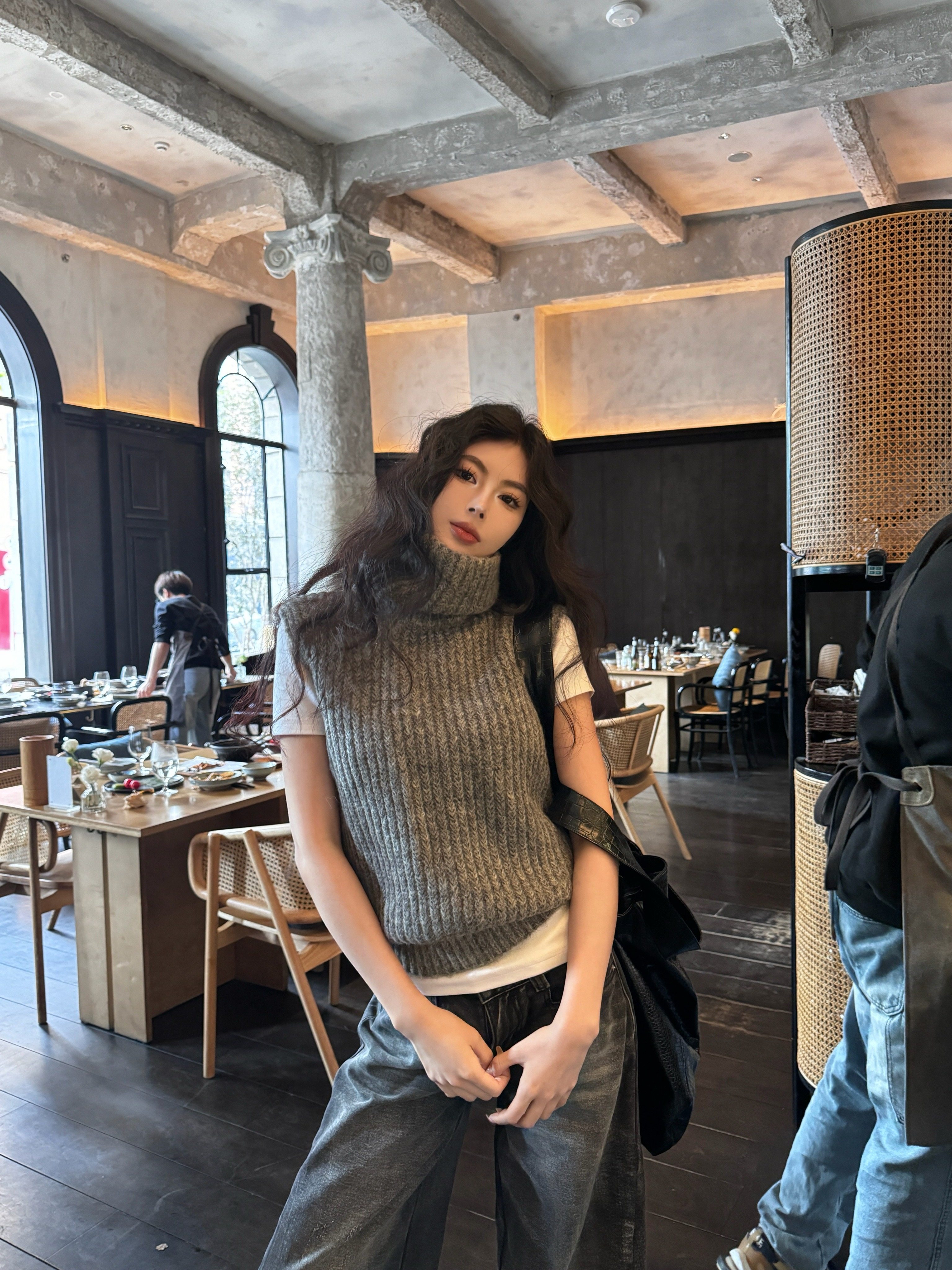 Old Money Style Black Turtleneck Knitted Vest for Women, Autumn and Winter Layered Design Sweater, Sleeveless Lazy Style Top