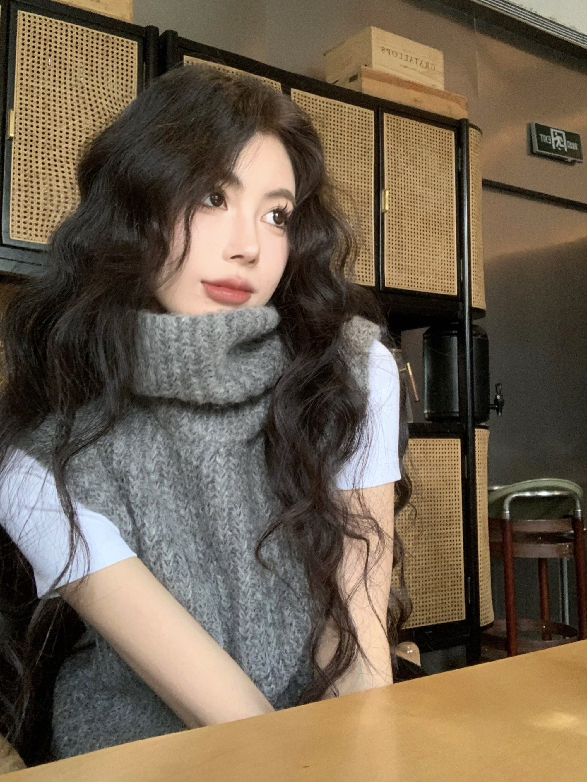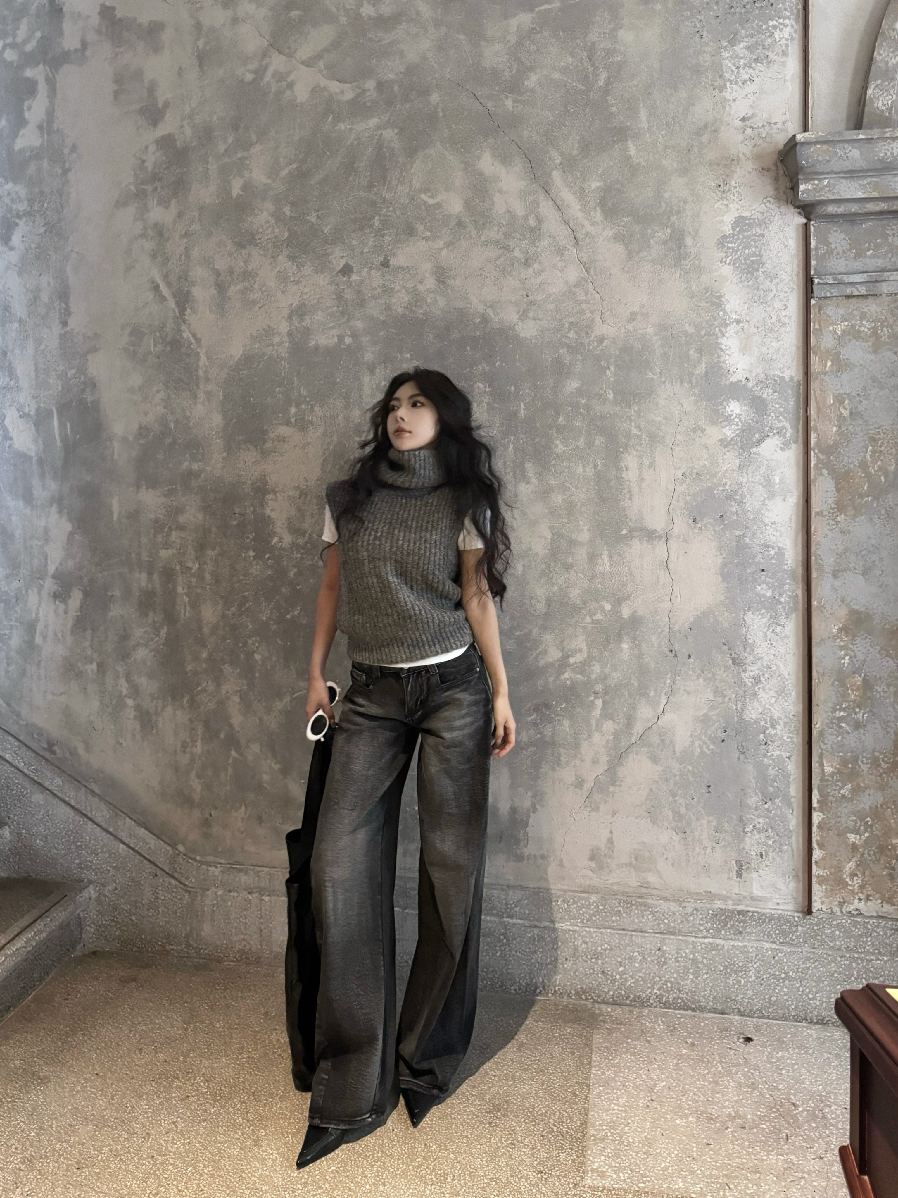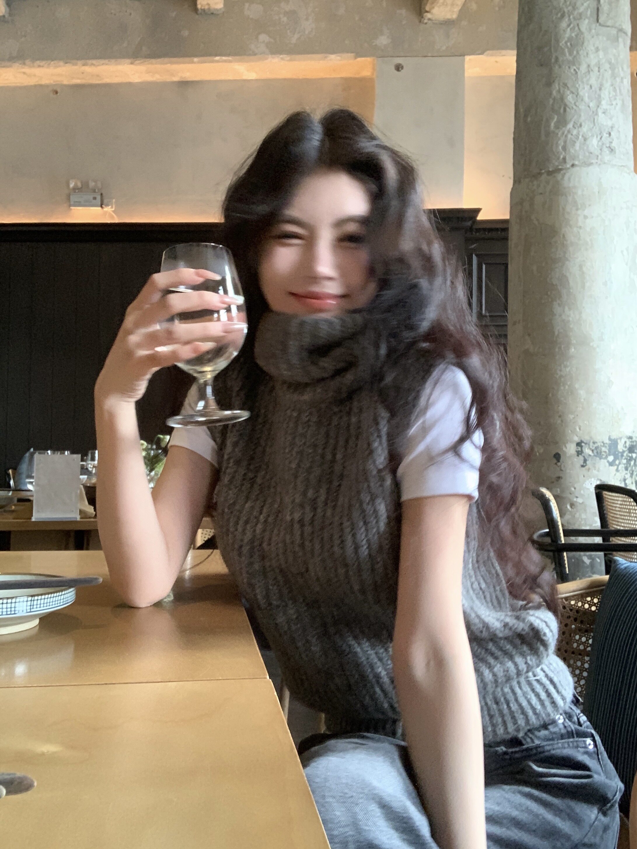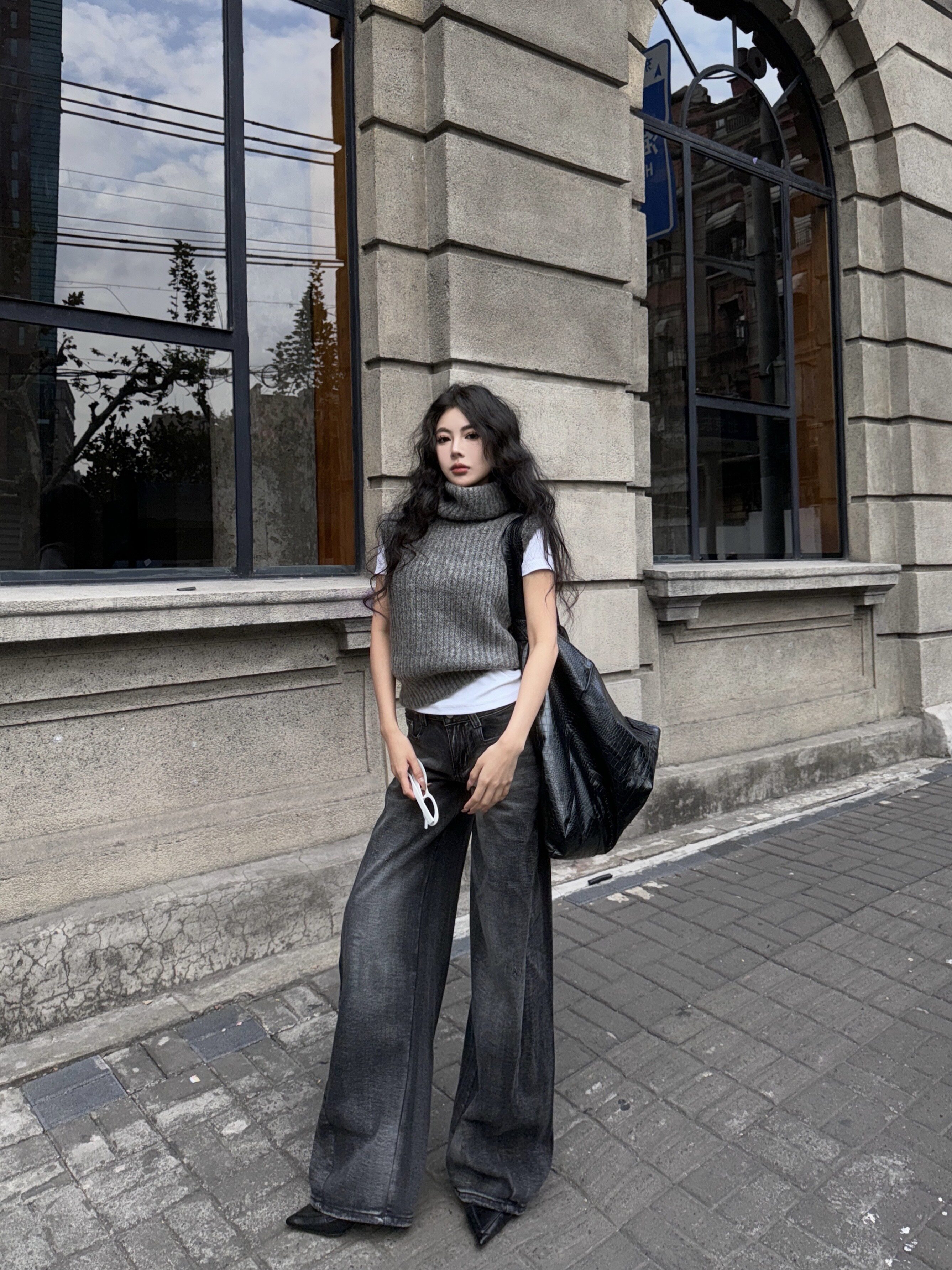 Old Money Style Black Turtleneck Knitted Vest for Women, Autumn and Winter Layered Design Sweater, Sleeveless Lazy Style Top