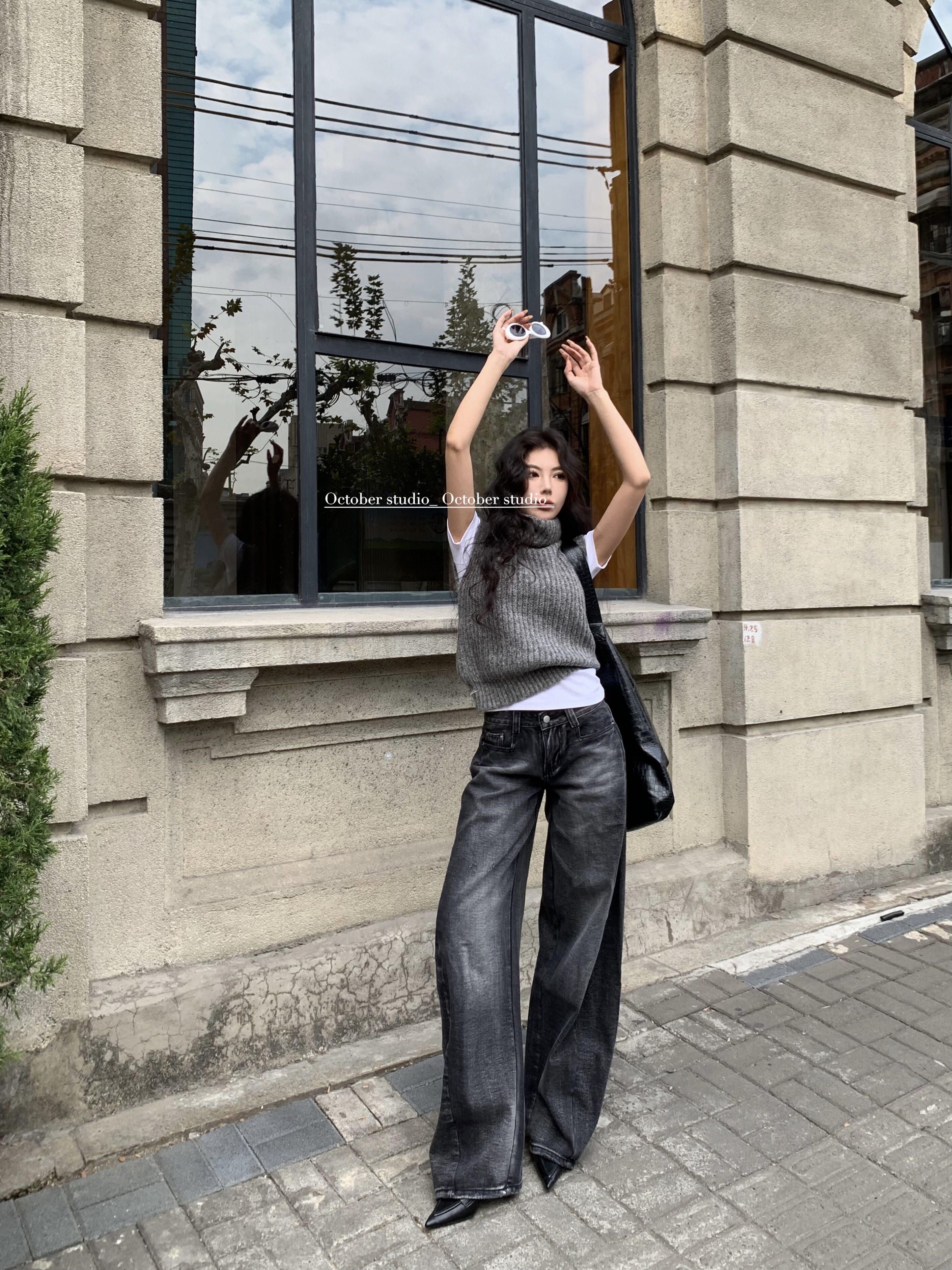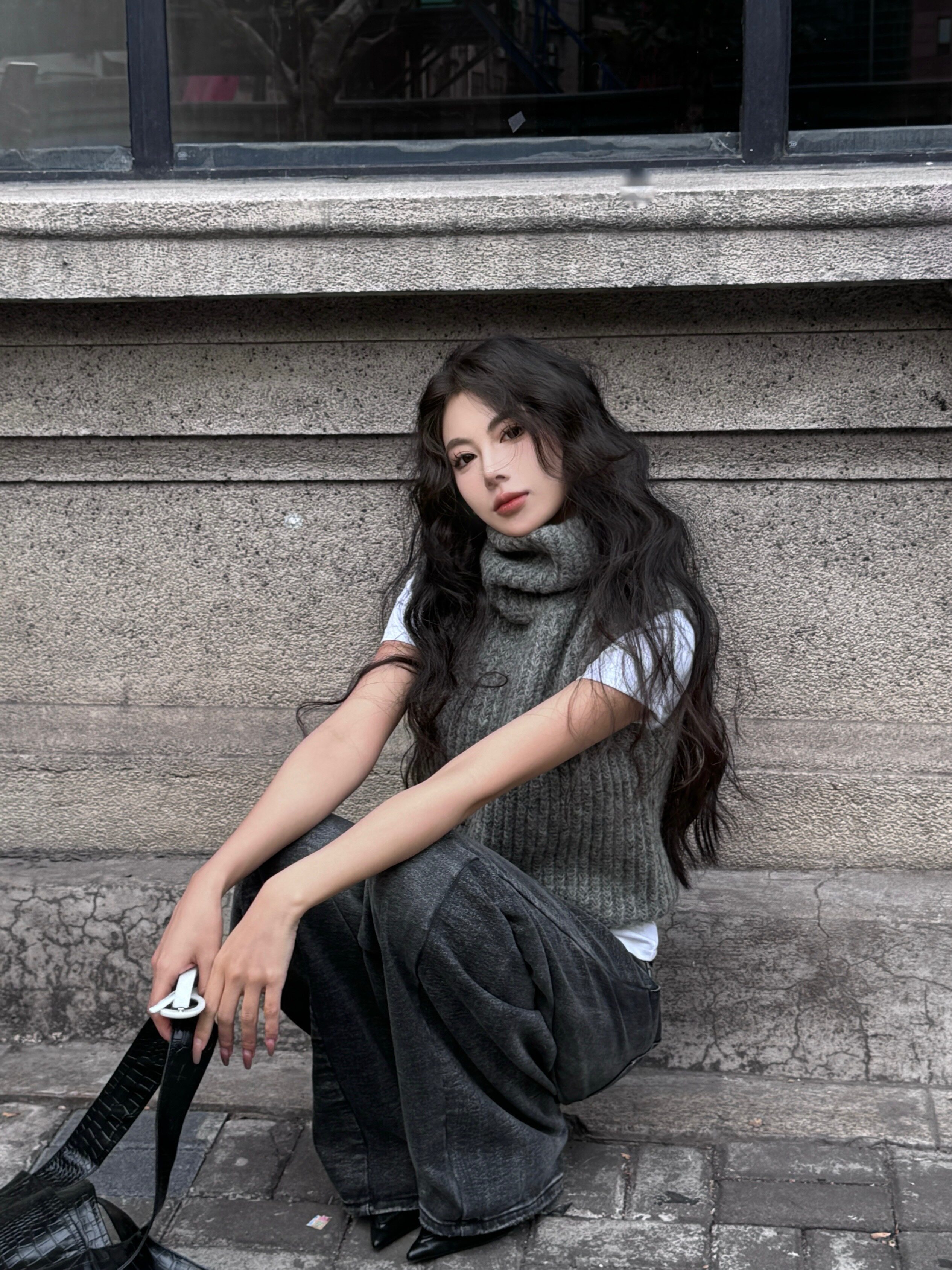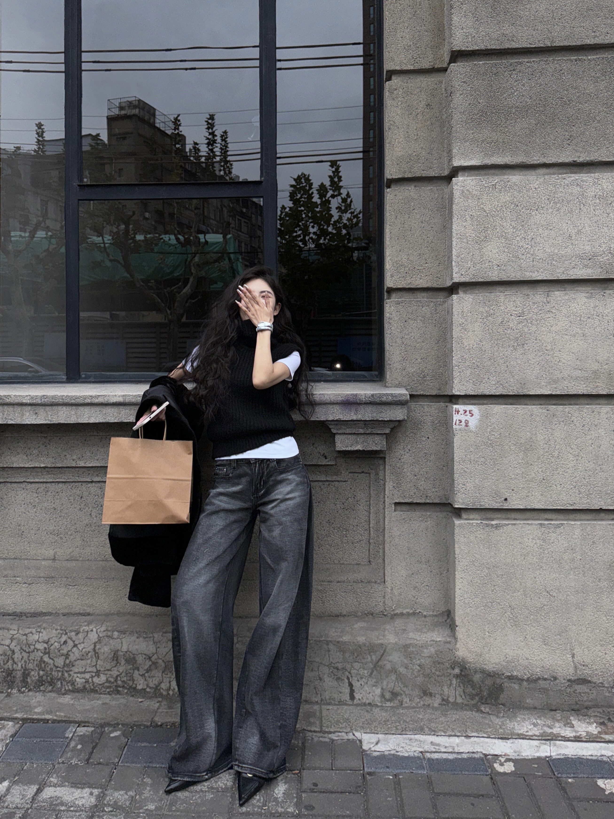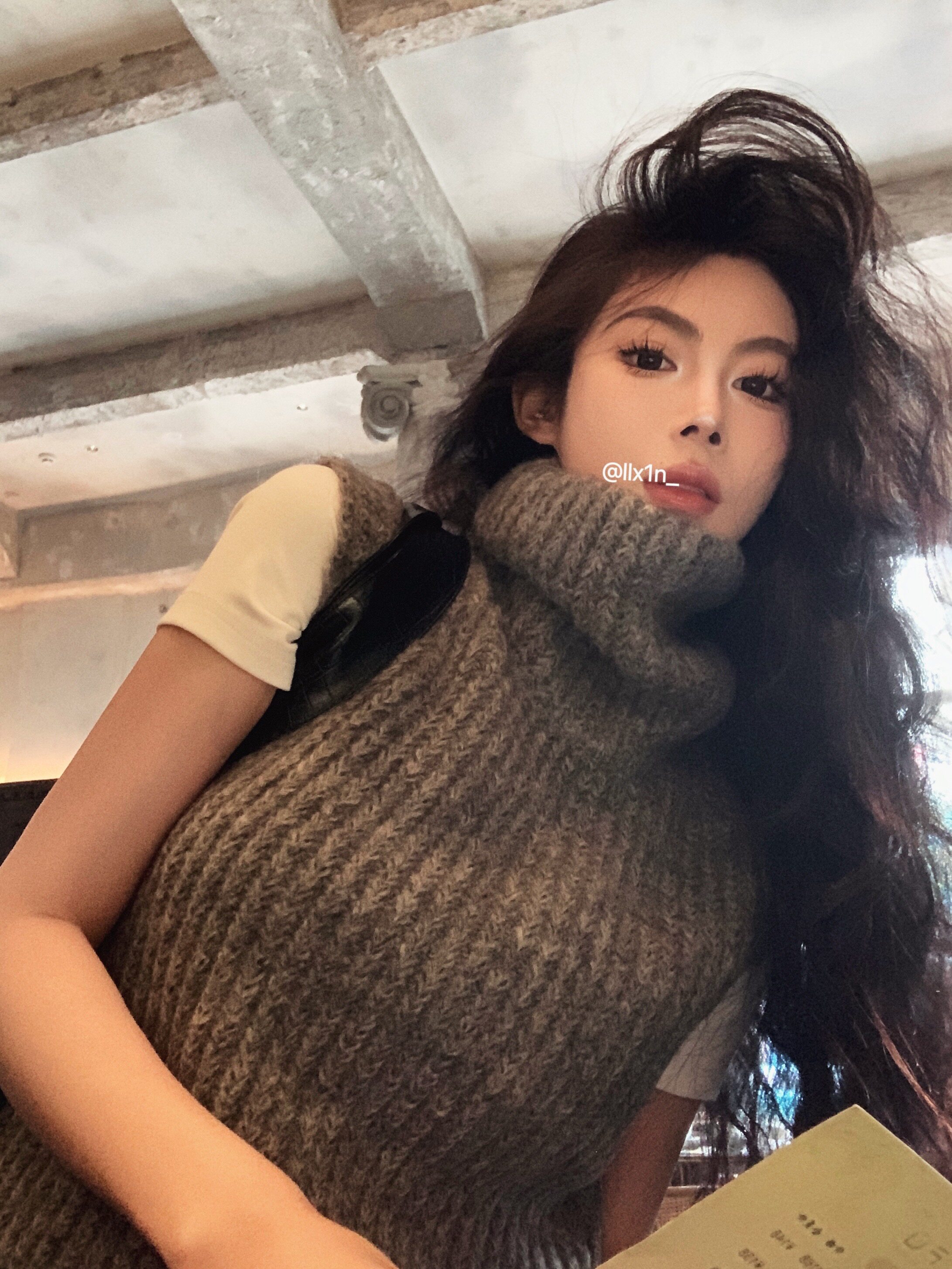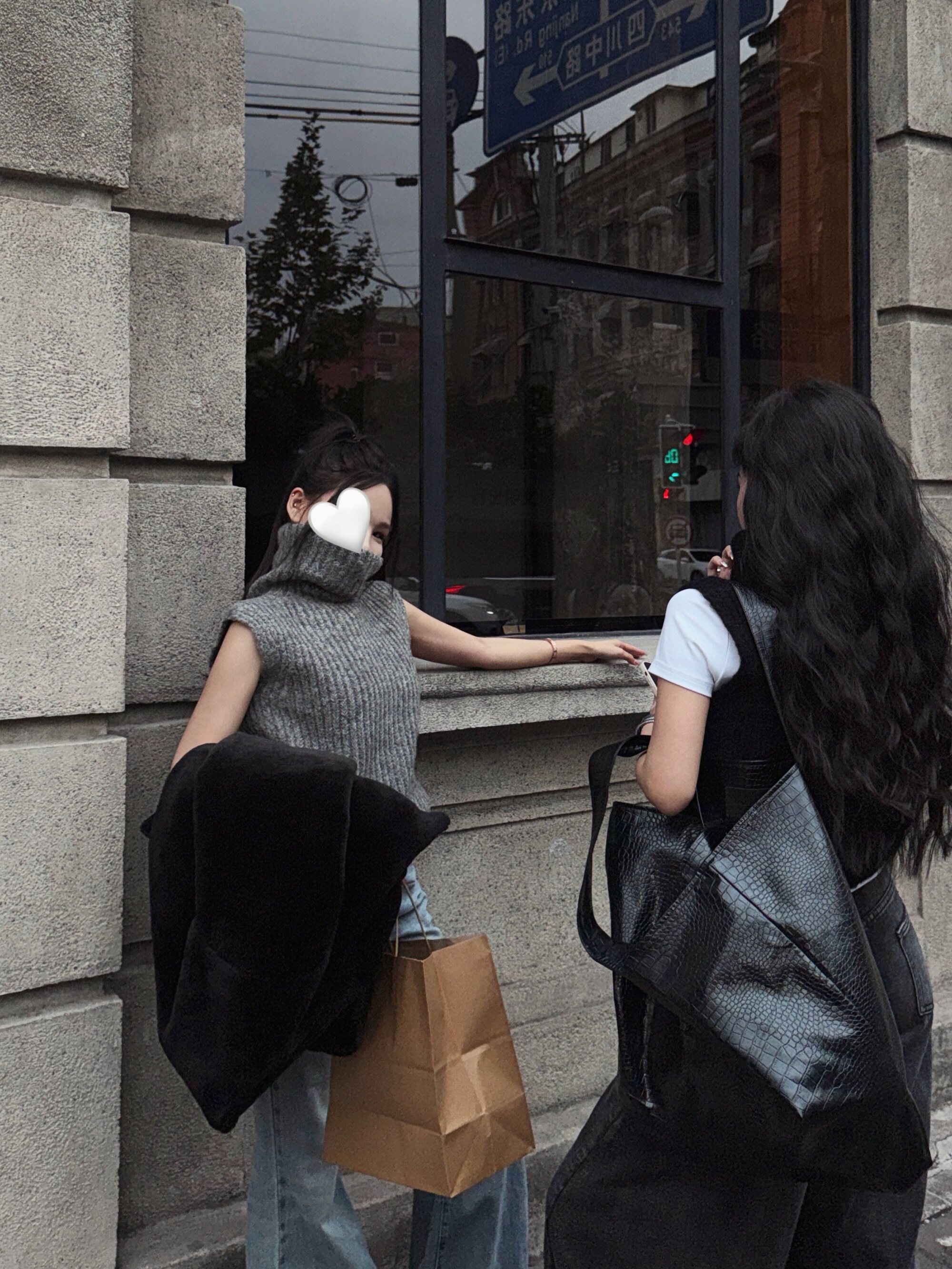 Old Money Style Black Turtleneck Knitted Vest for Women, Autumn and Winter Layered Design Sweater, Sleeveless Lazy Style Top