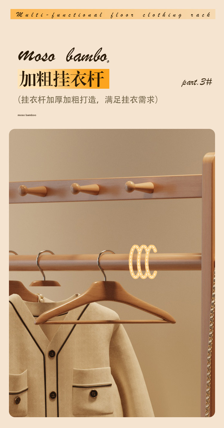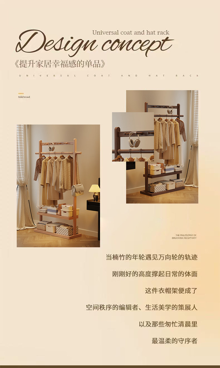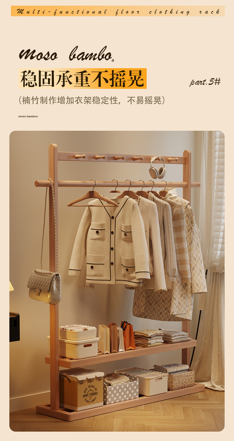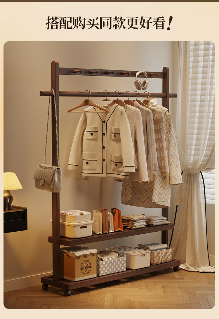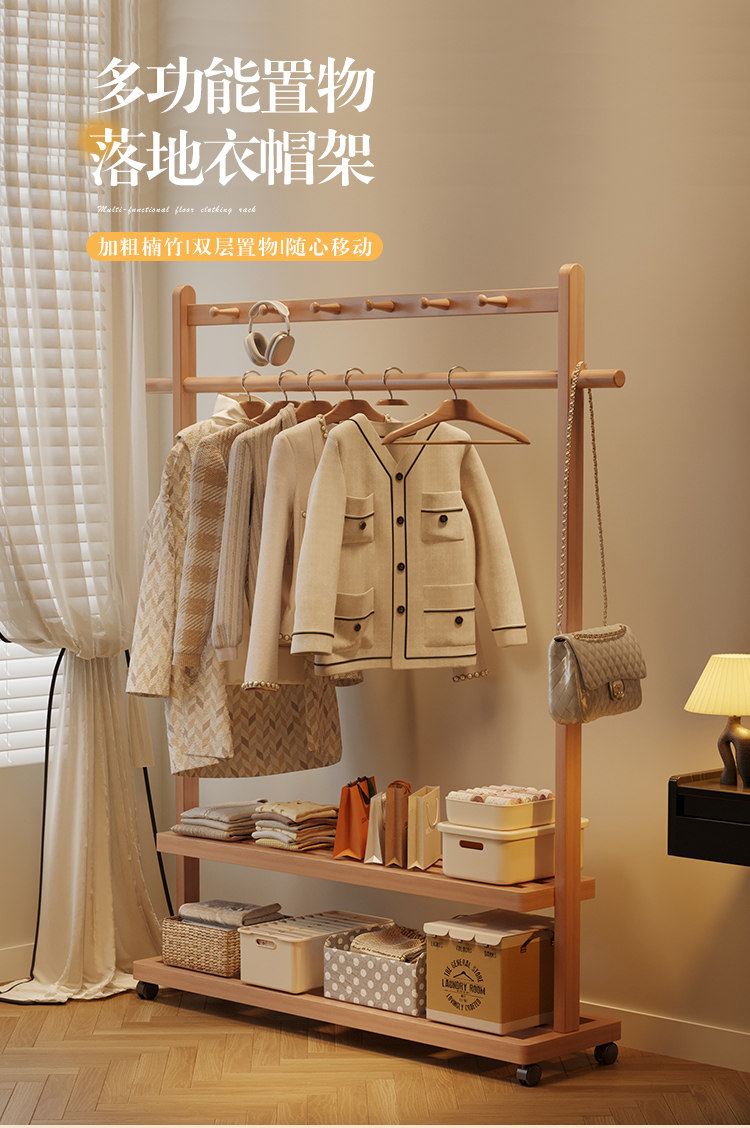 Solid Wood Coat Rack, Floor-Standing Bedroom Household Clothes Rack, Simple Clothes Storage Rack, Living Room Storage Rack