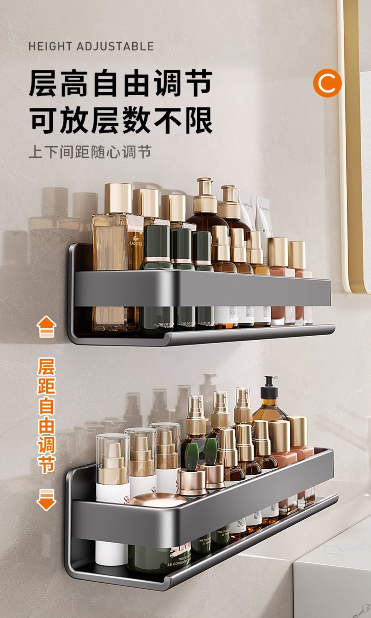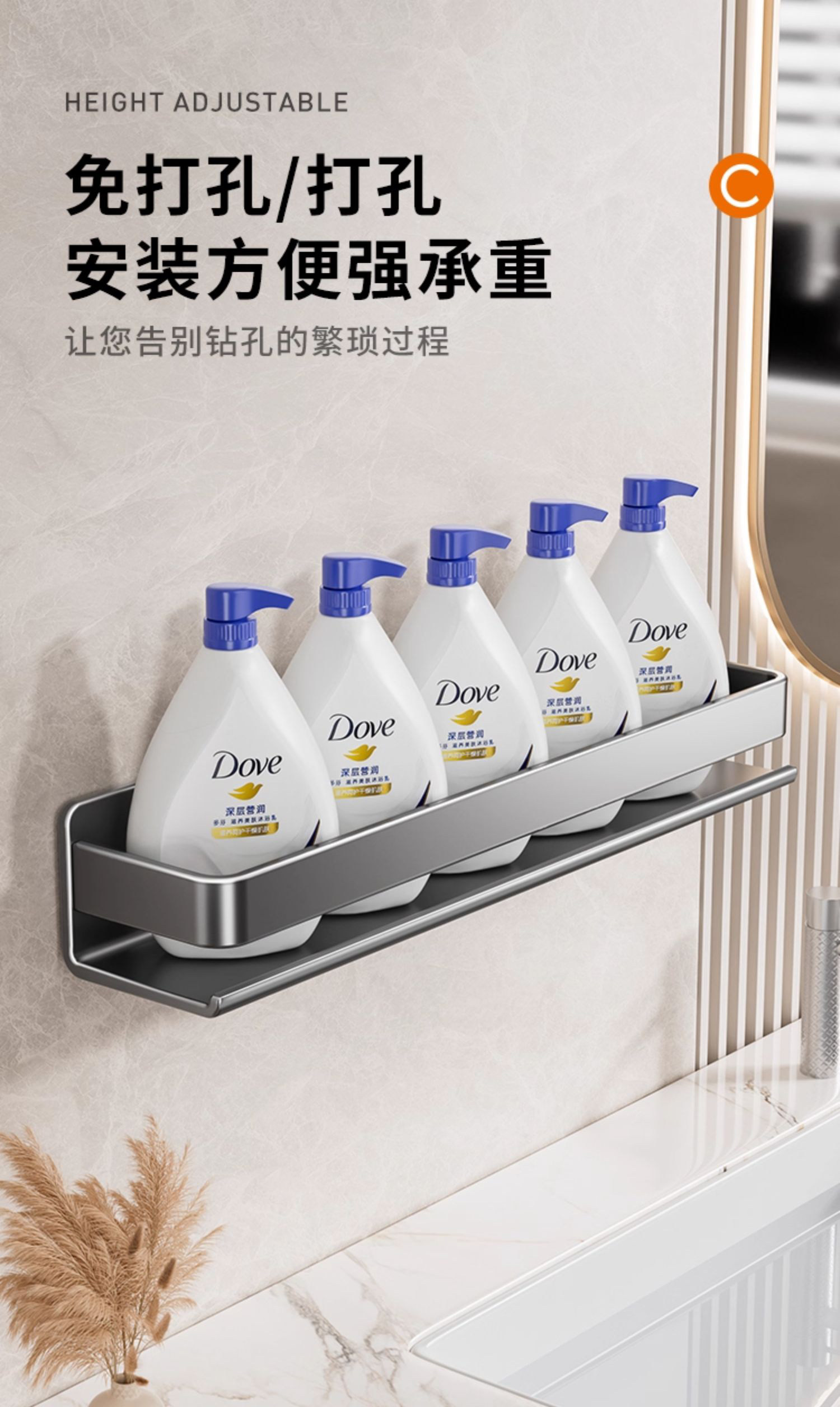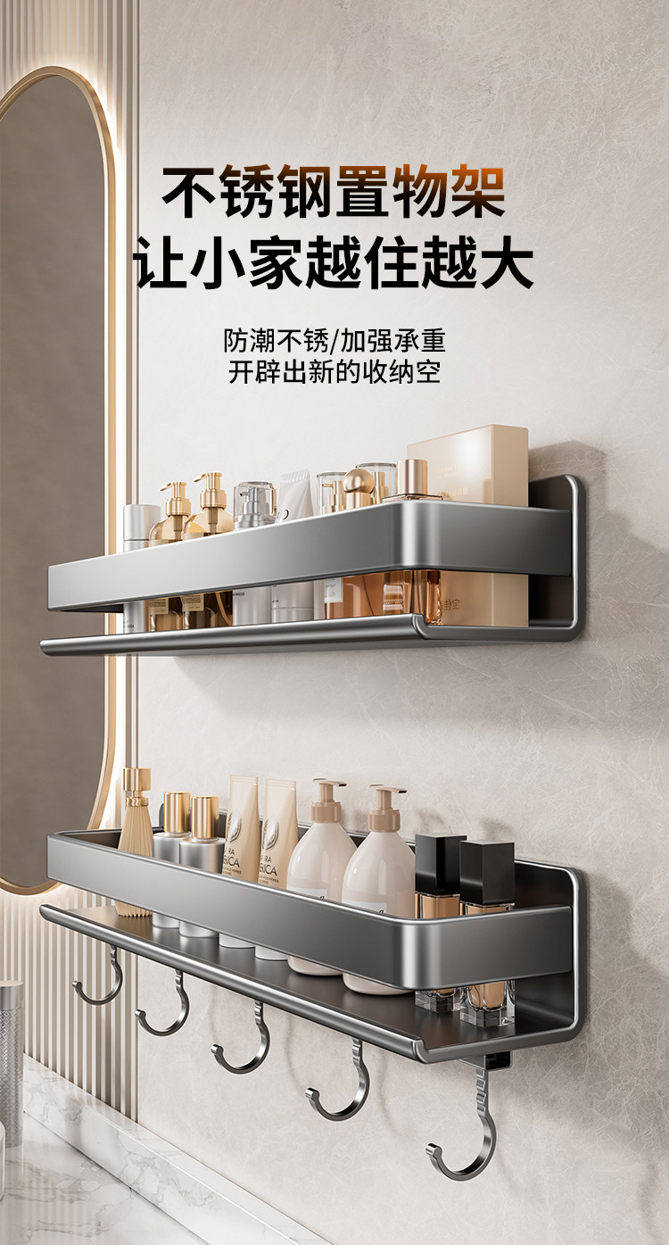 Perforated Bathroom Stainless Steel Toilet Washbasin Wall-Mounted Bathroom Storage Rack Wall-Mounted Shower Storage Shelf