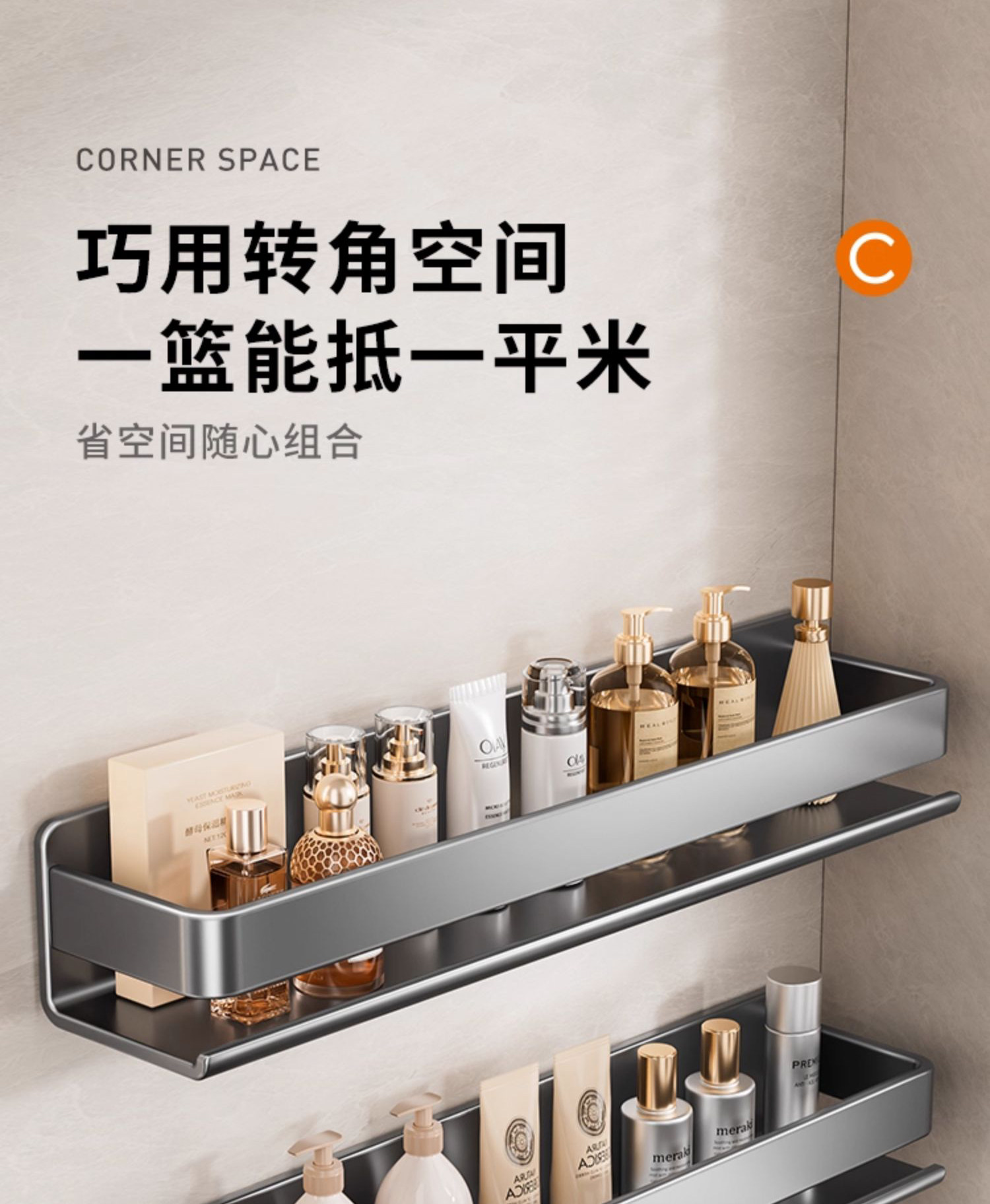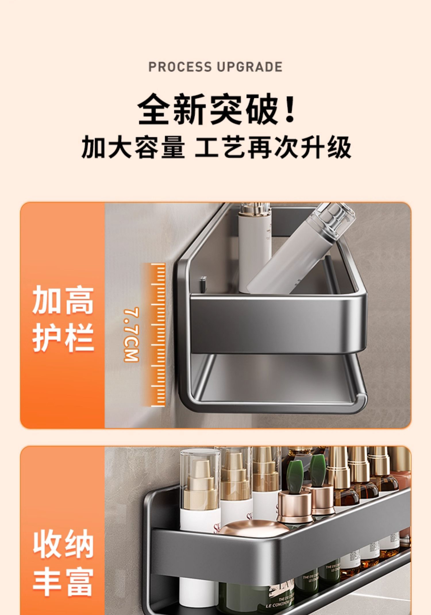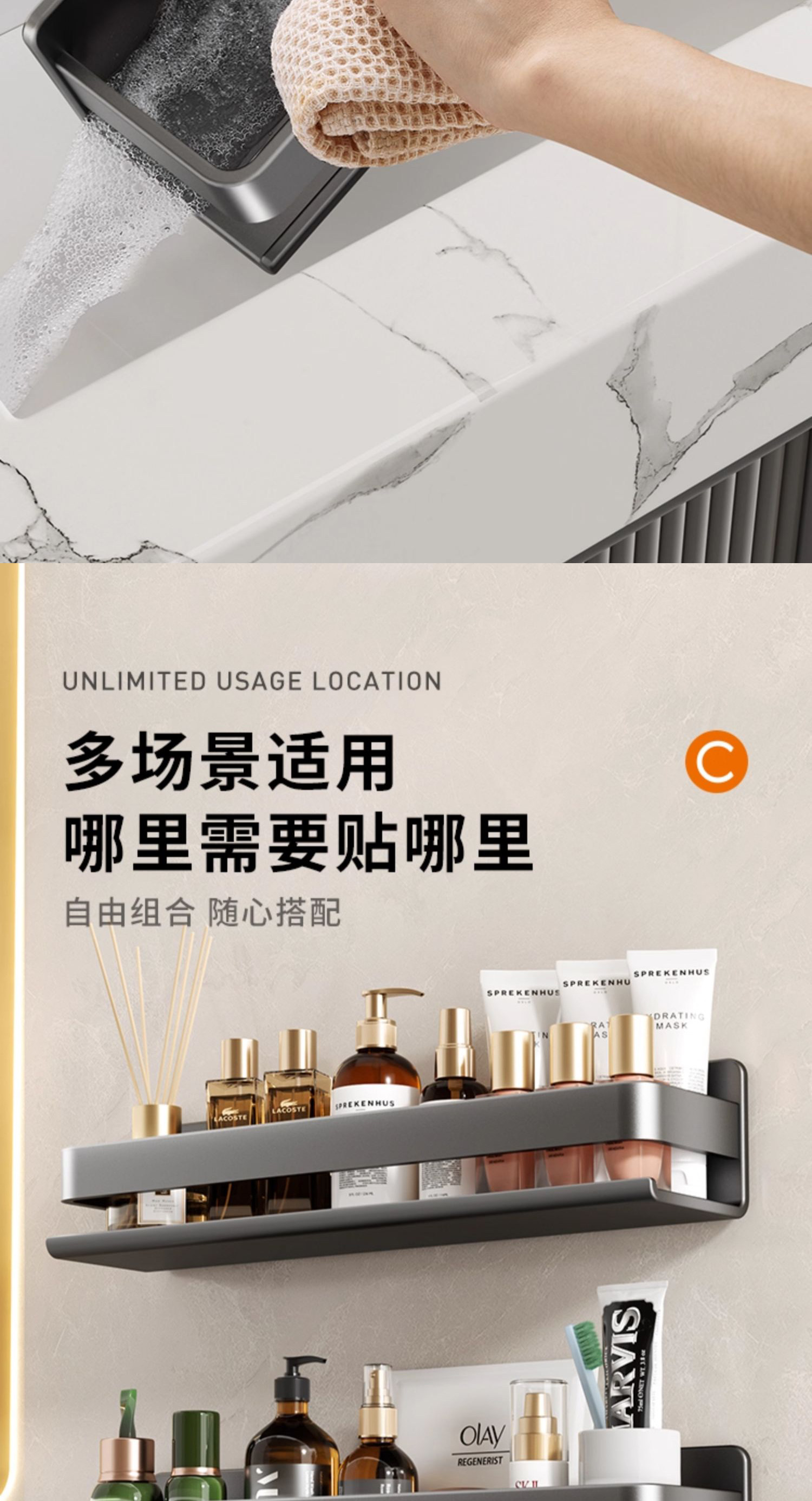 Perforated Bathroom Stainless Steel Toilet Washbasin Wall-Mounted Bathroom Storage Rack Wall-Mounted Shower Storage Shelf
