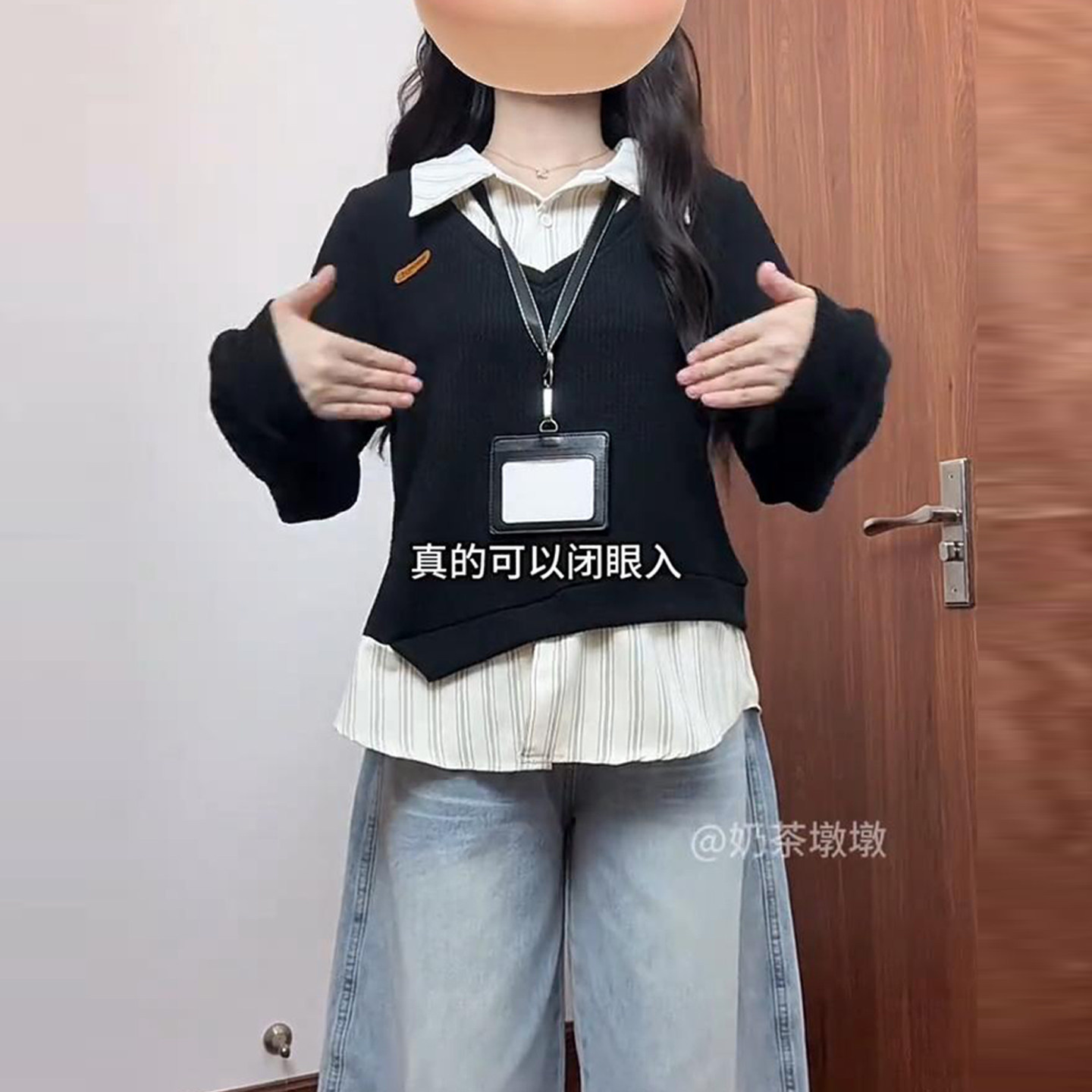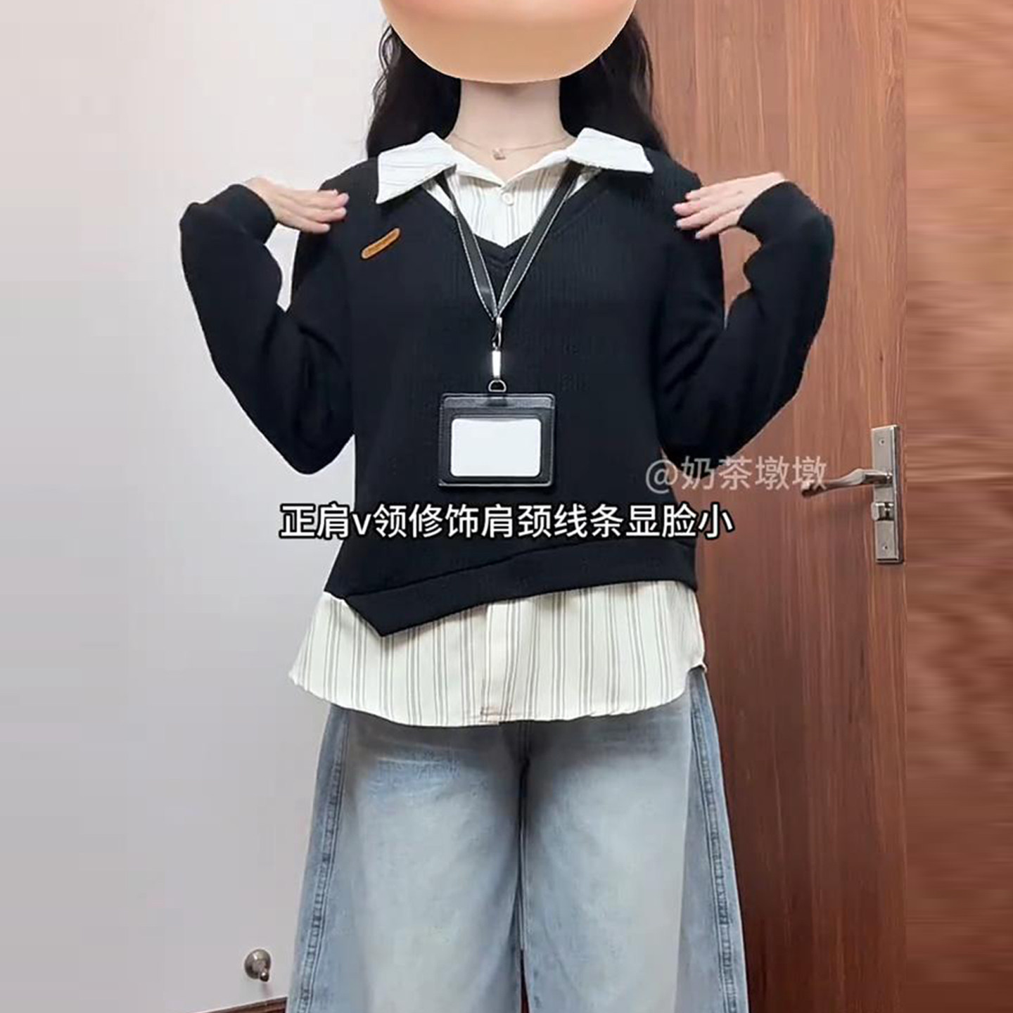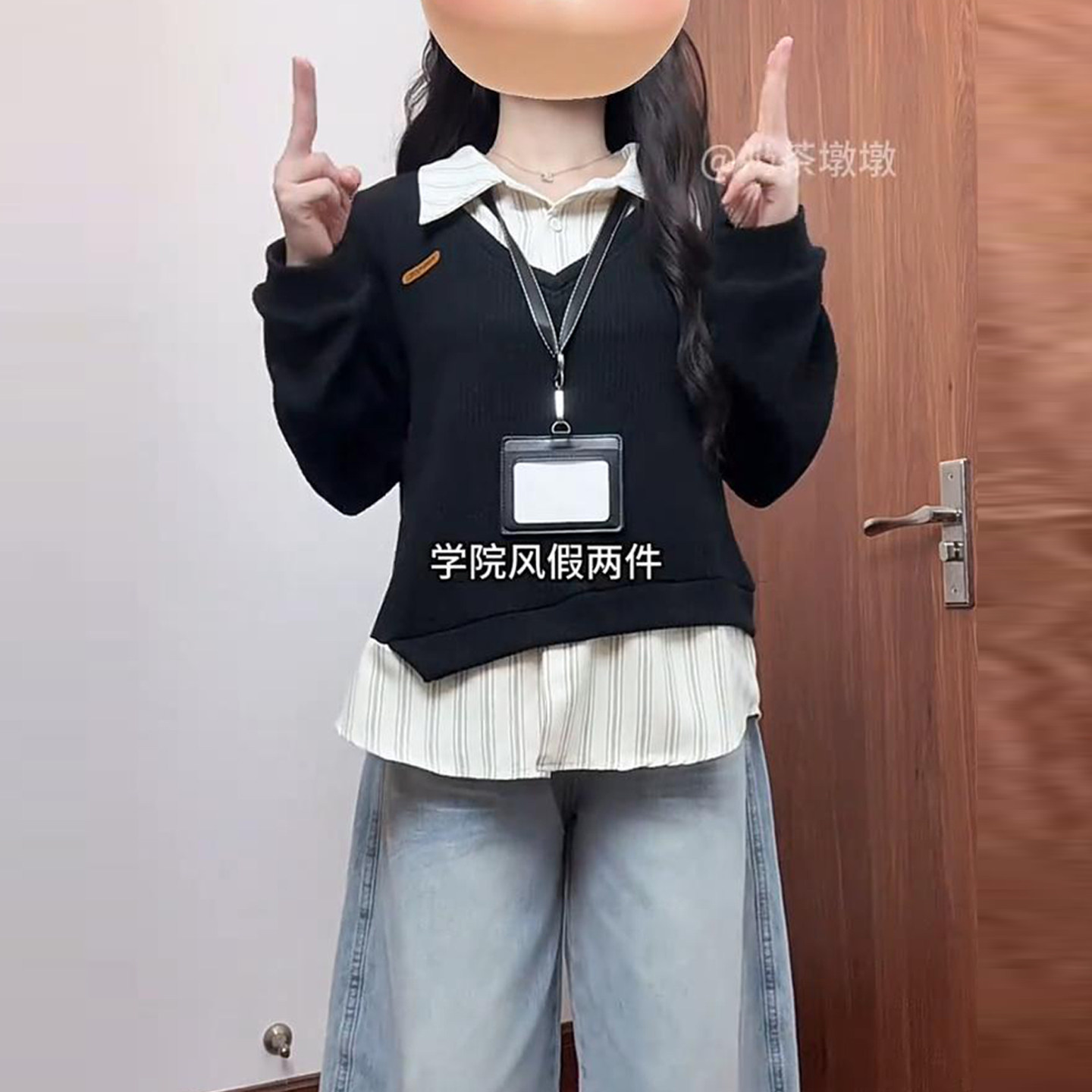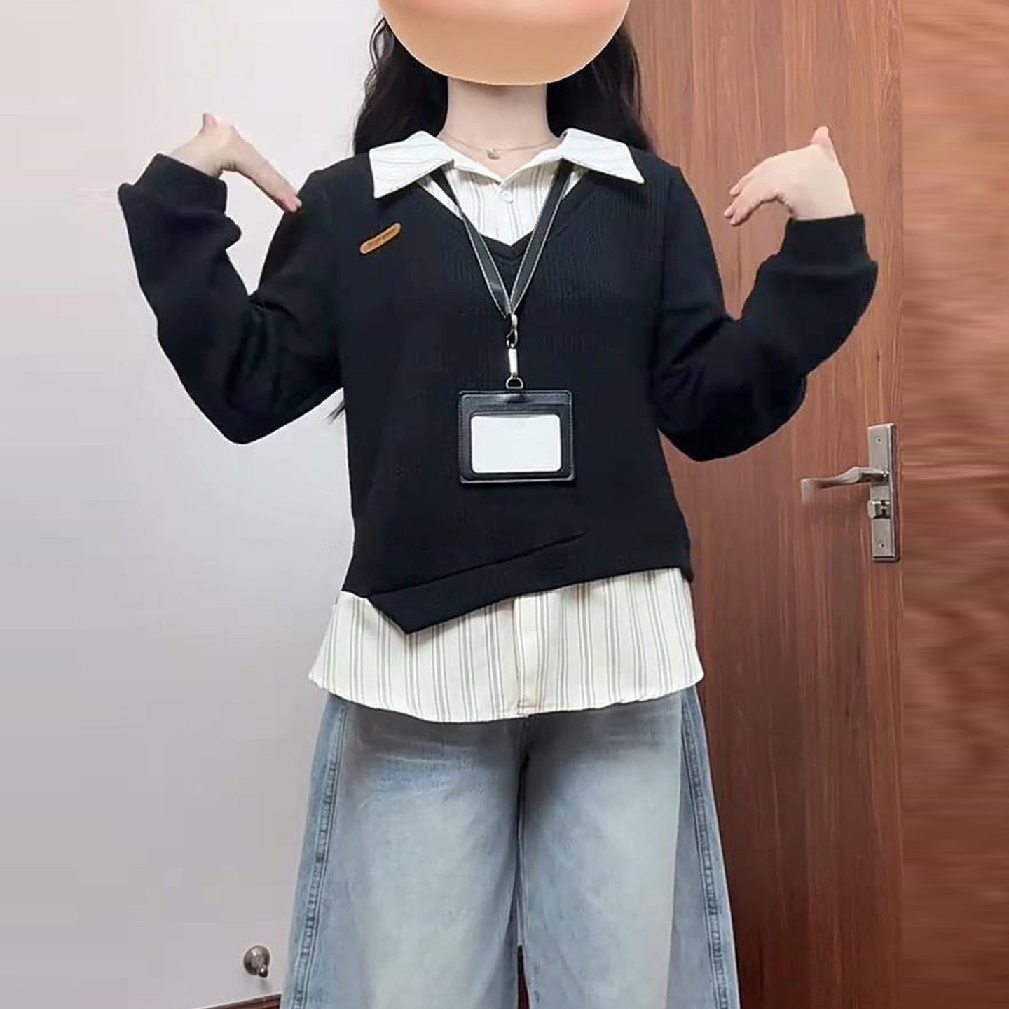 Large size college style fake two-piece polo collar sweatshirt for women in autumn and winter fat mm slimming stitching design niche top
