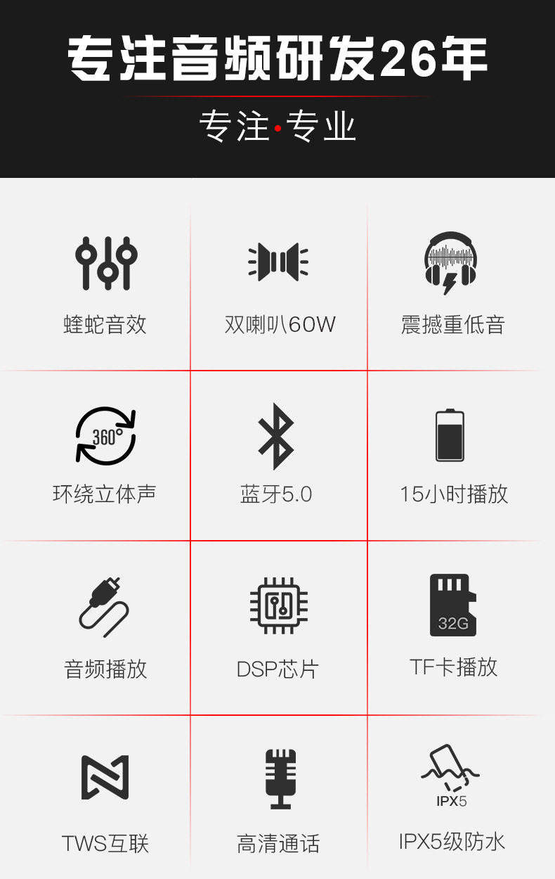 German Voice of Berlin universal Bluetooth speaker 60W subwoofer outdoor waterproof portable home audio