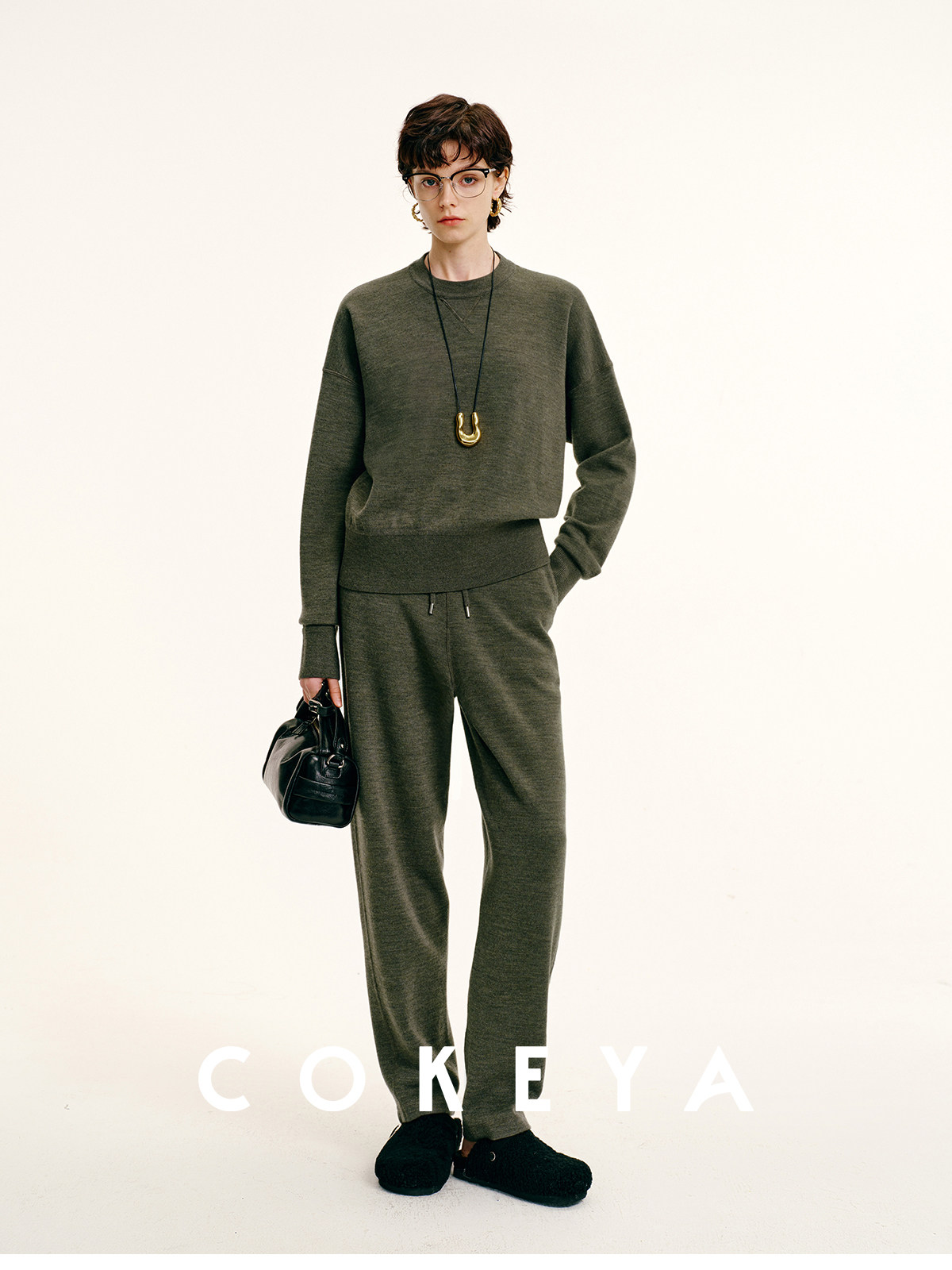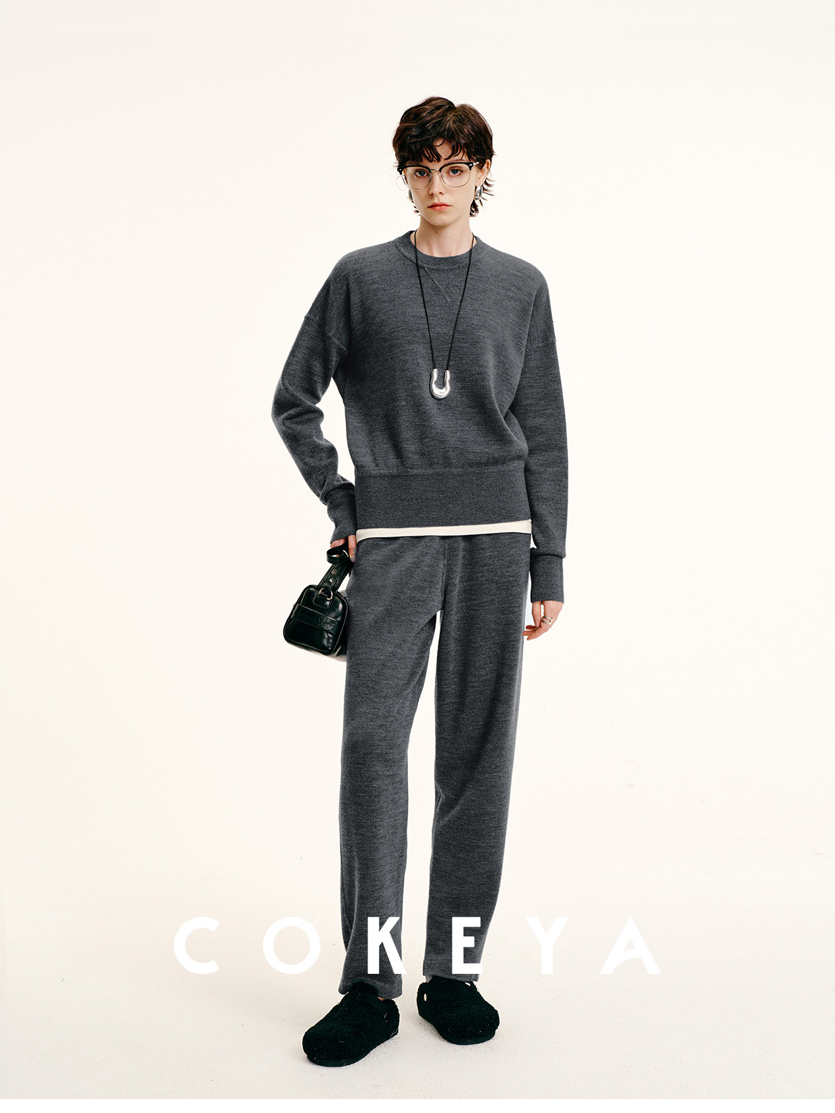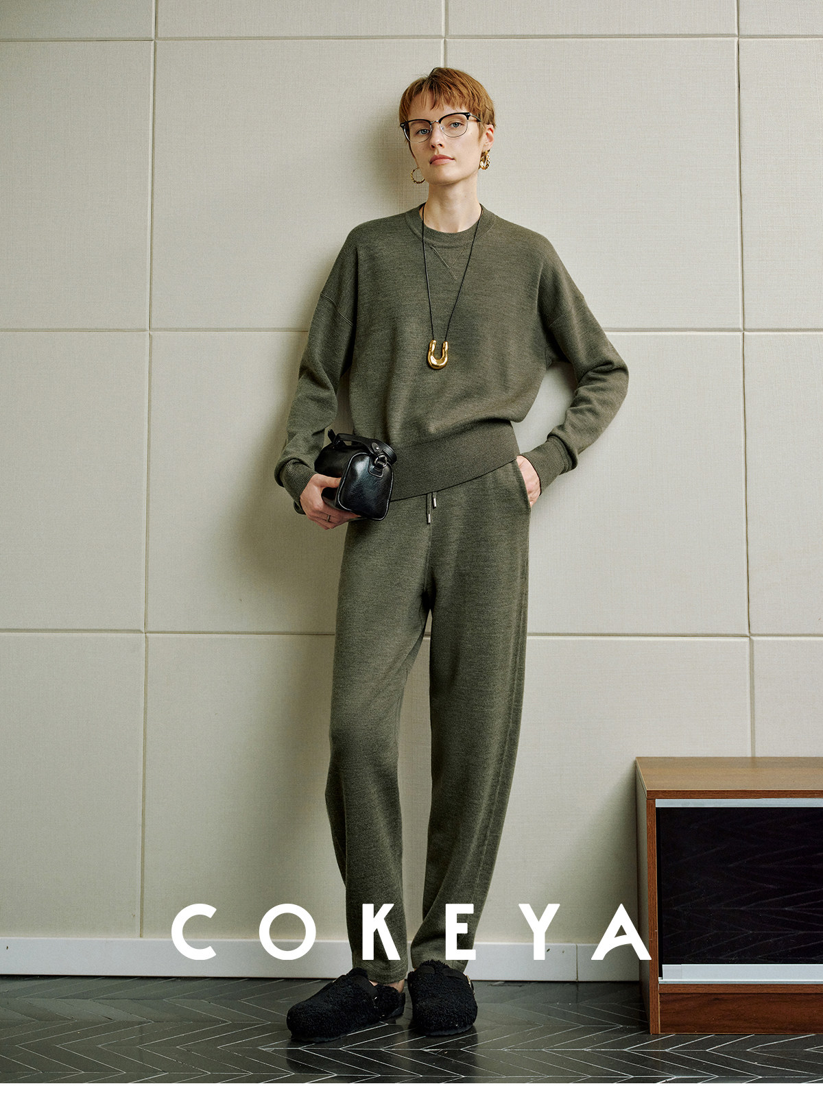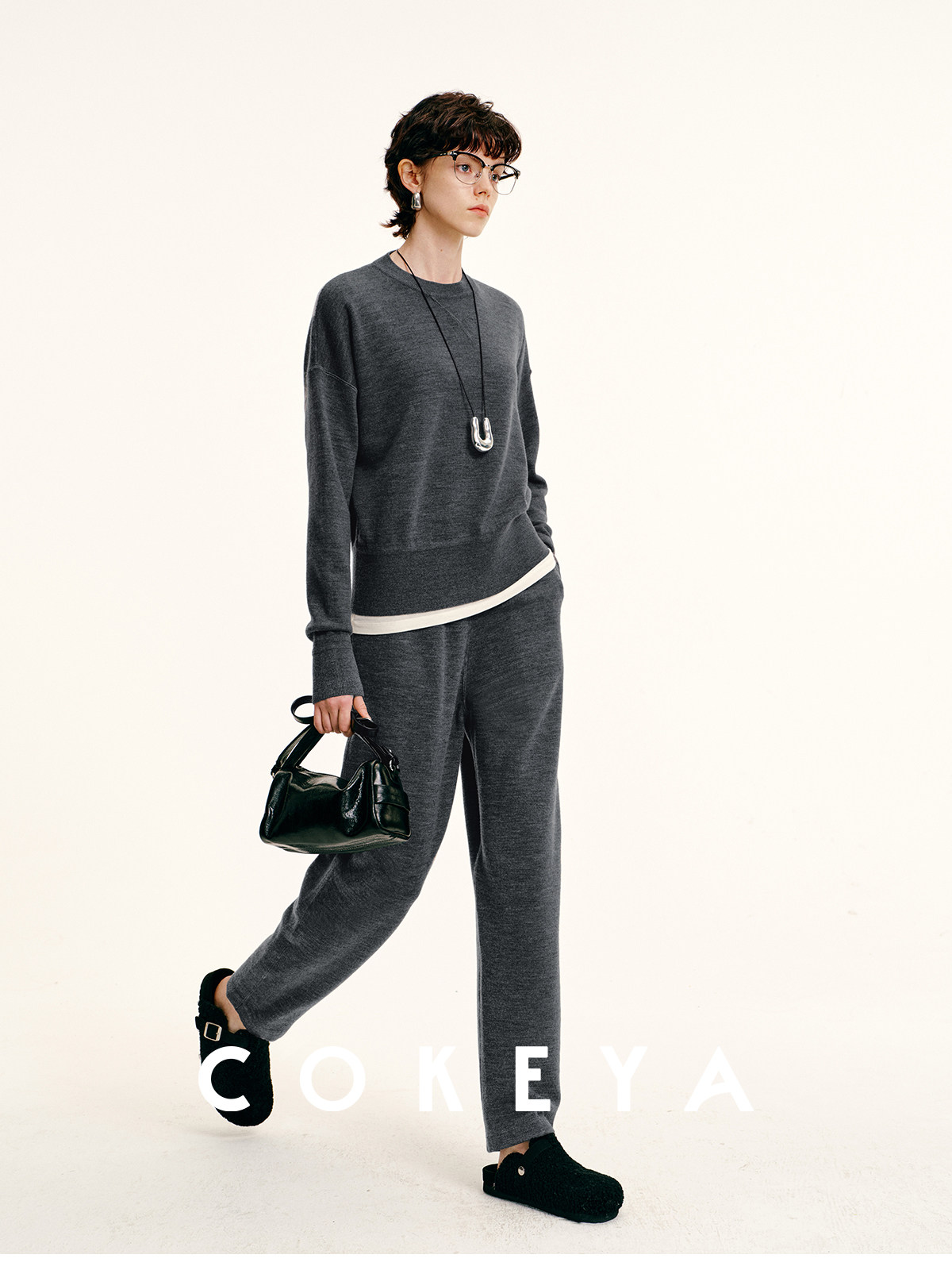 Cokeya/Light Casual Style ~ New Anti-Shrink Wool Knit Base Shirt for Women, Spring Casual Pants Set