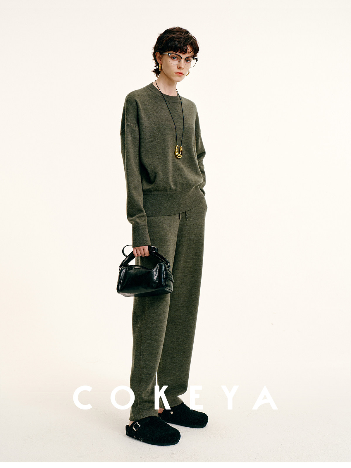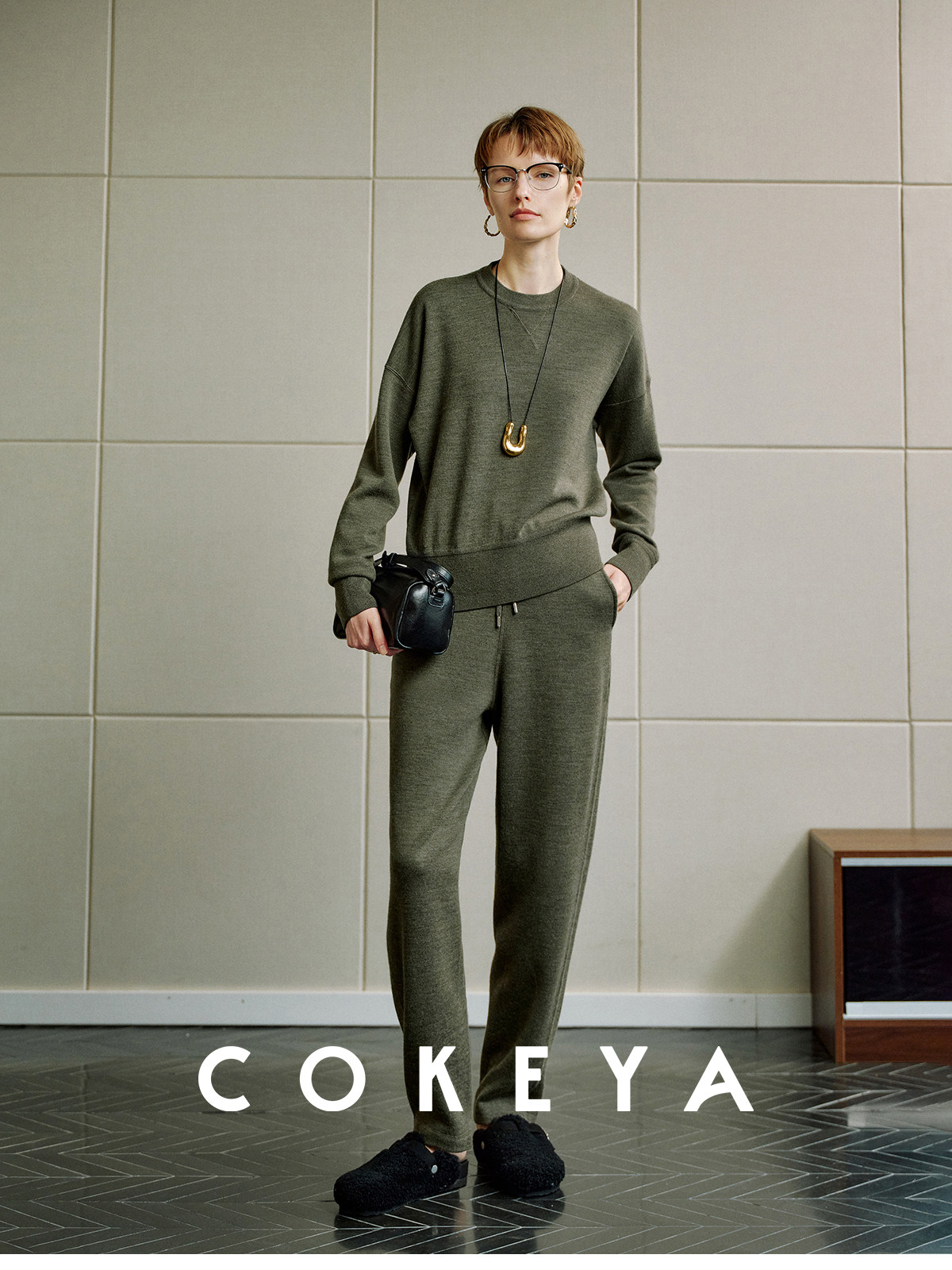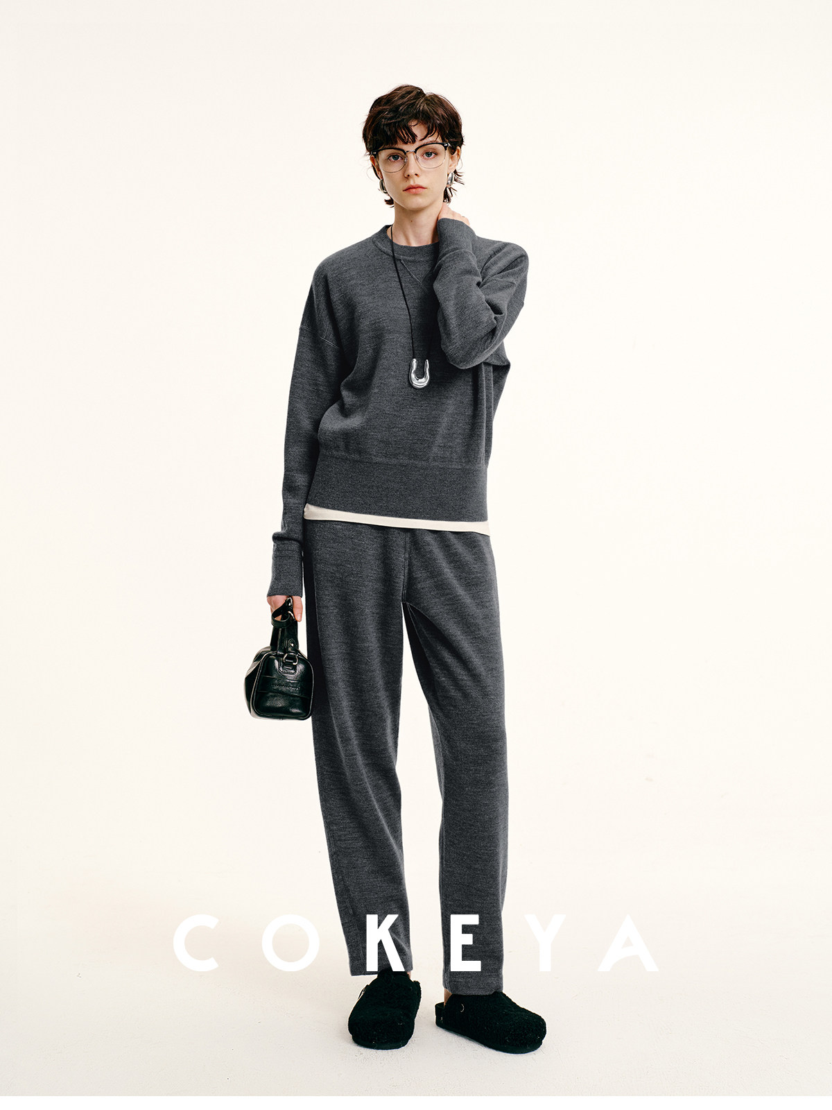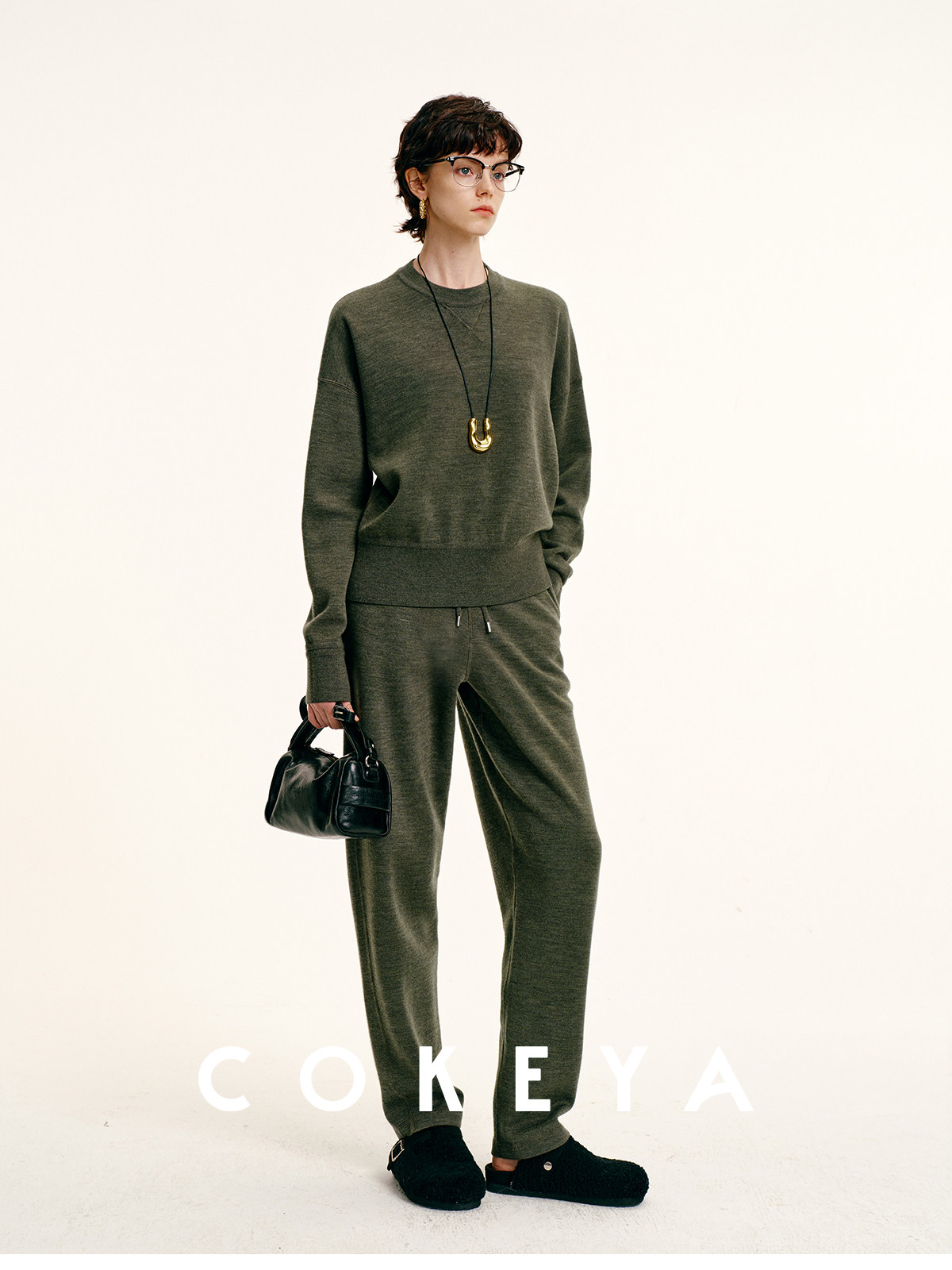 Cokeya/Light Casual Style ~ New Anti-Shrink Wool Knit Base Shirt for Women, Spring Casual Pants Set