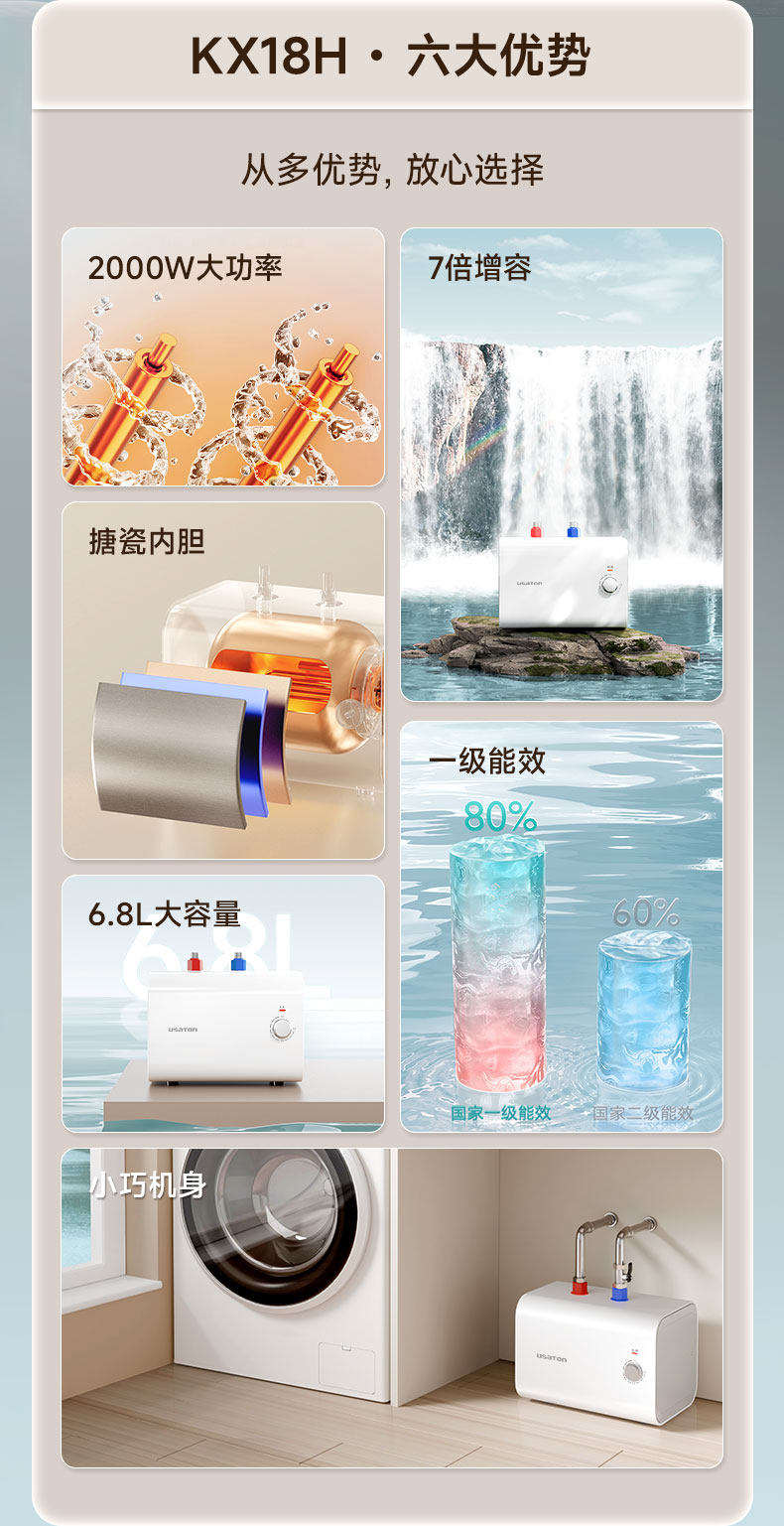 Ashidanton Small Kitchen Water Heater, Under-Counter, Small Household Kitchen Water Heater, Instant Heating, First-Class Energy Efficiency Hot Water Heater