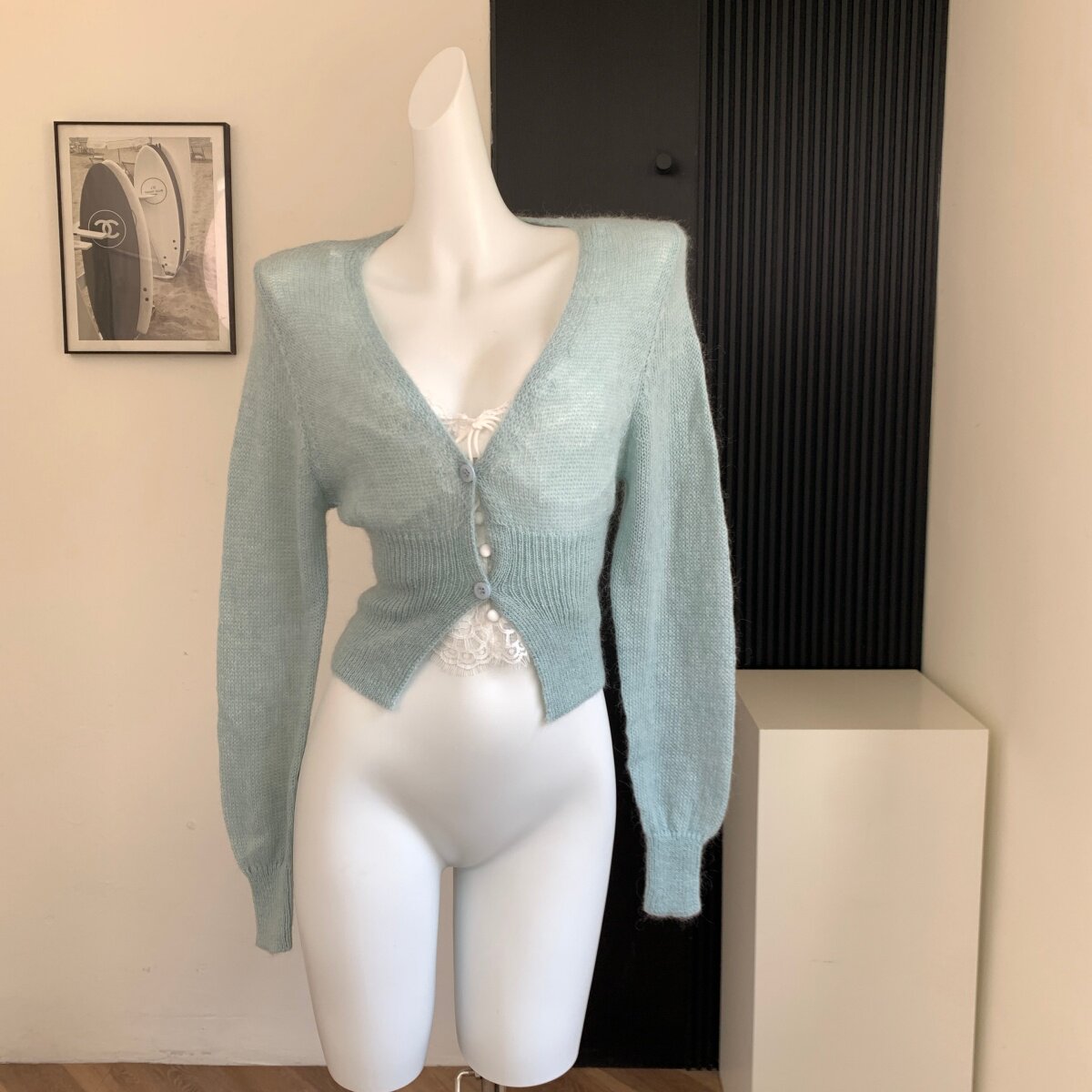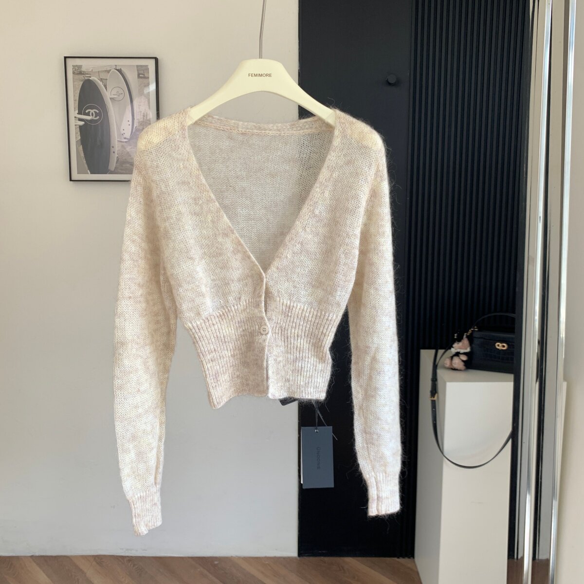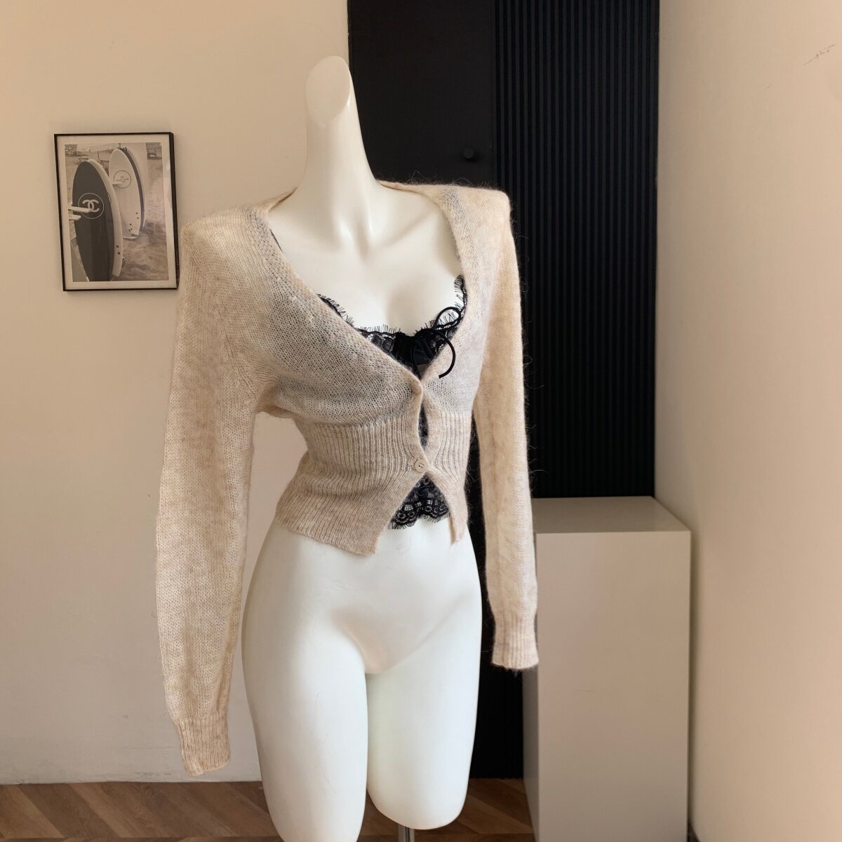 Lin Xi Xi Waist-Slimming Beauty God V-Neck Short Knitted Cardigan for Women, Slim-Fit Long-Sleeve Pure Desire Top for Autumn