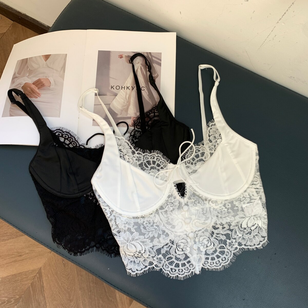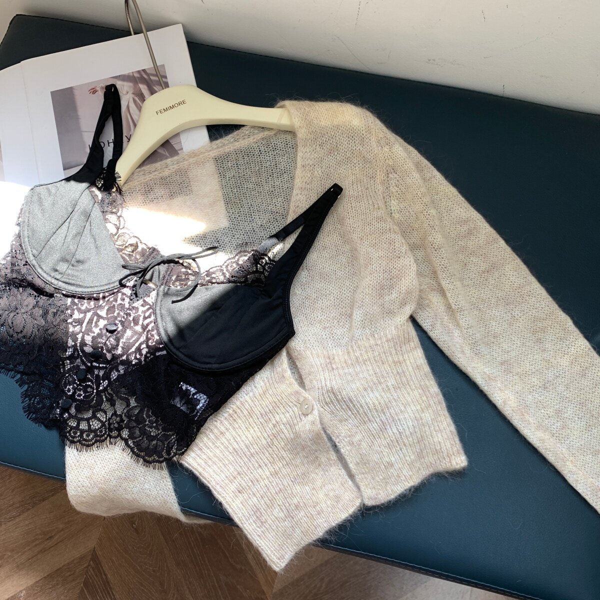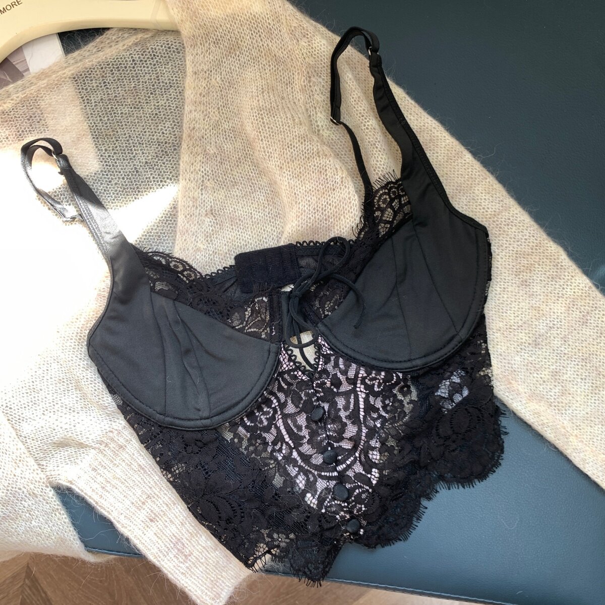 Color Classification White Lace Underwear,Black Lace Underwear,Khaki Sweater,Blue Sweater