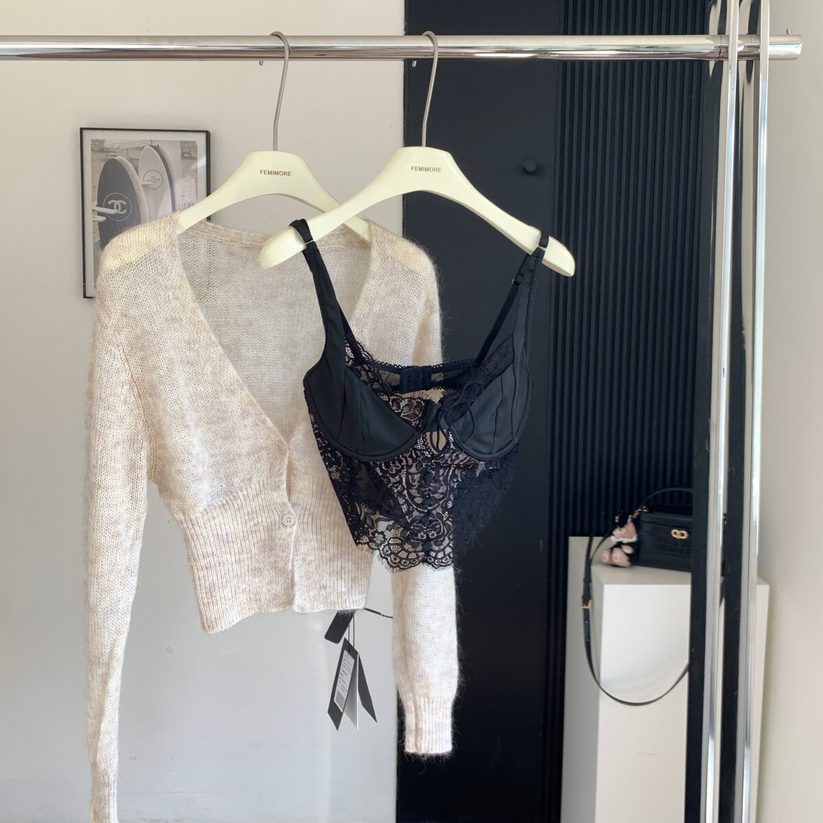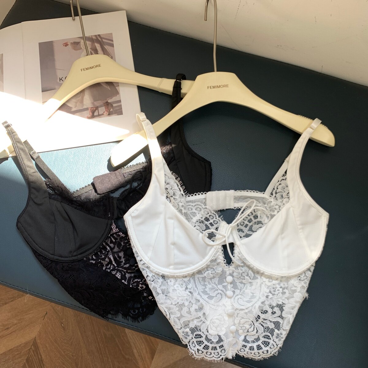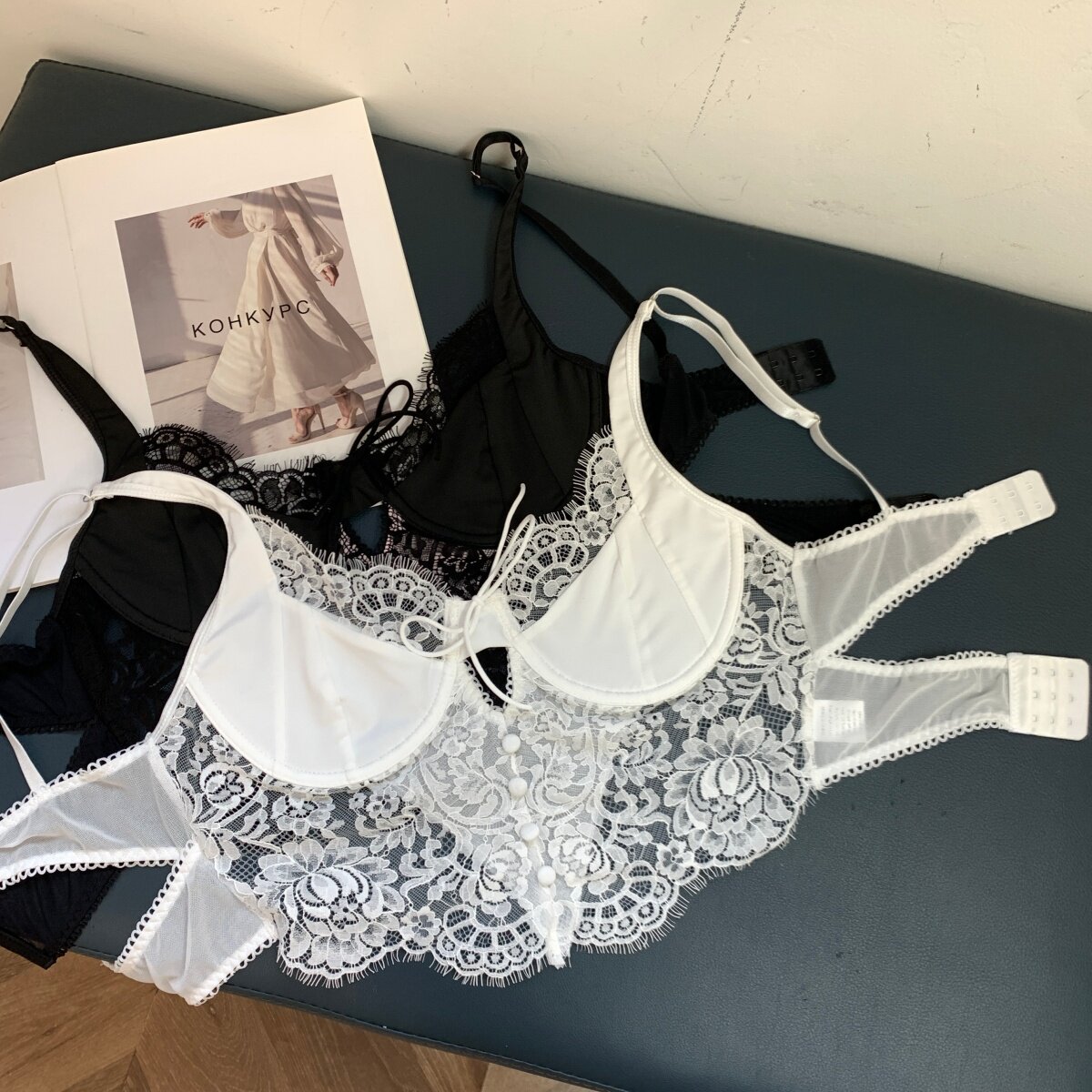 Color Classification White Lace Underwear,Black Lace Underwear,Khaki Sweater,Blue Sweater
