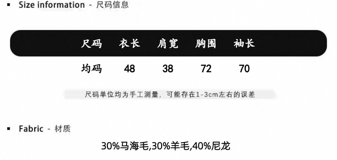 Material Composition Wool 30%, Mohair 30%, Other 40%