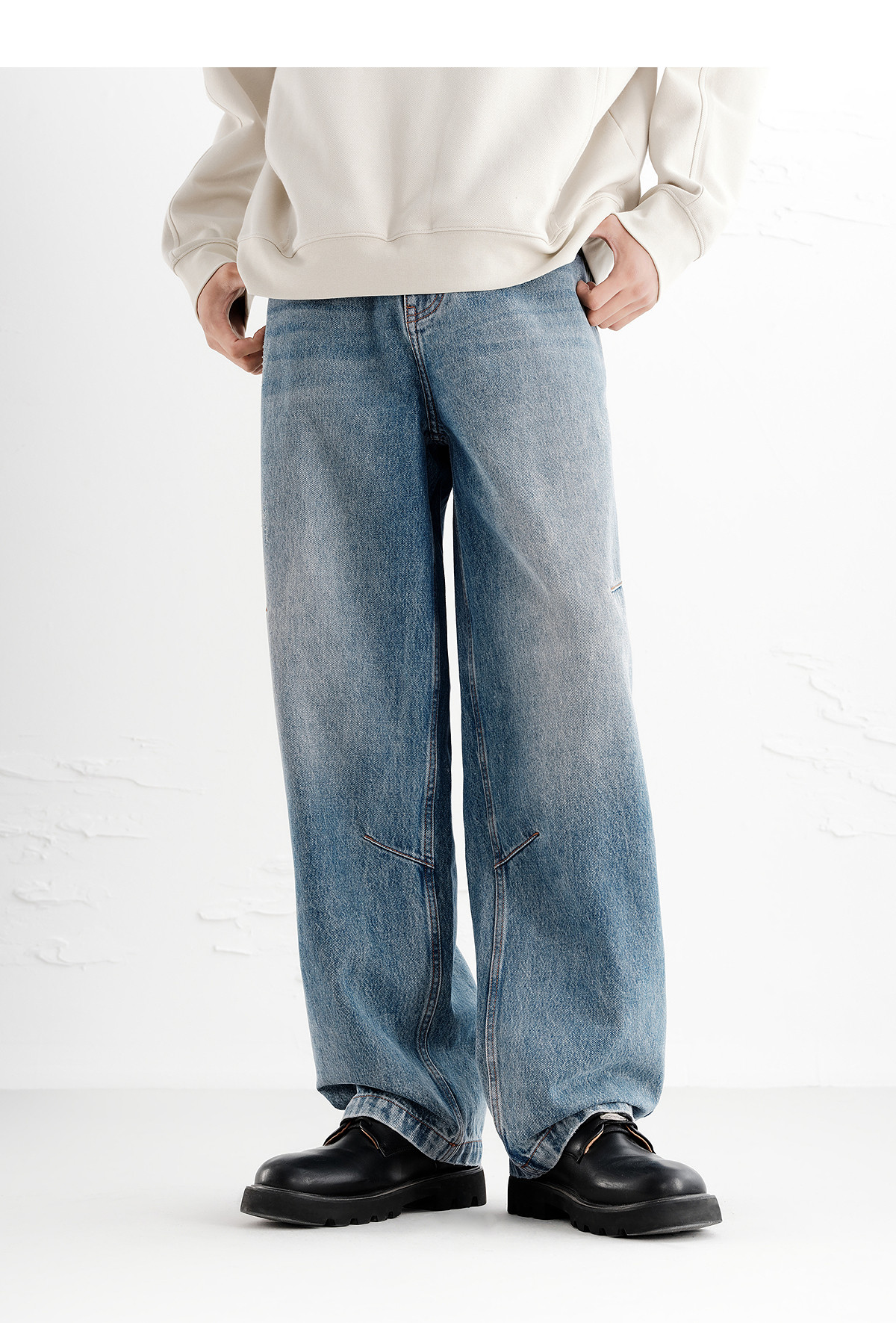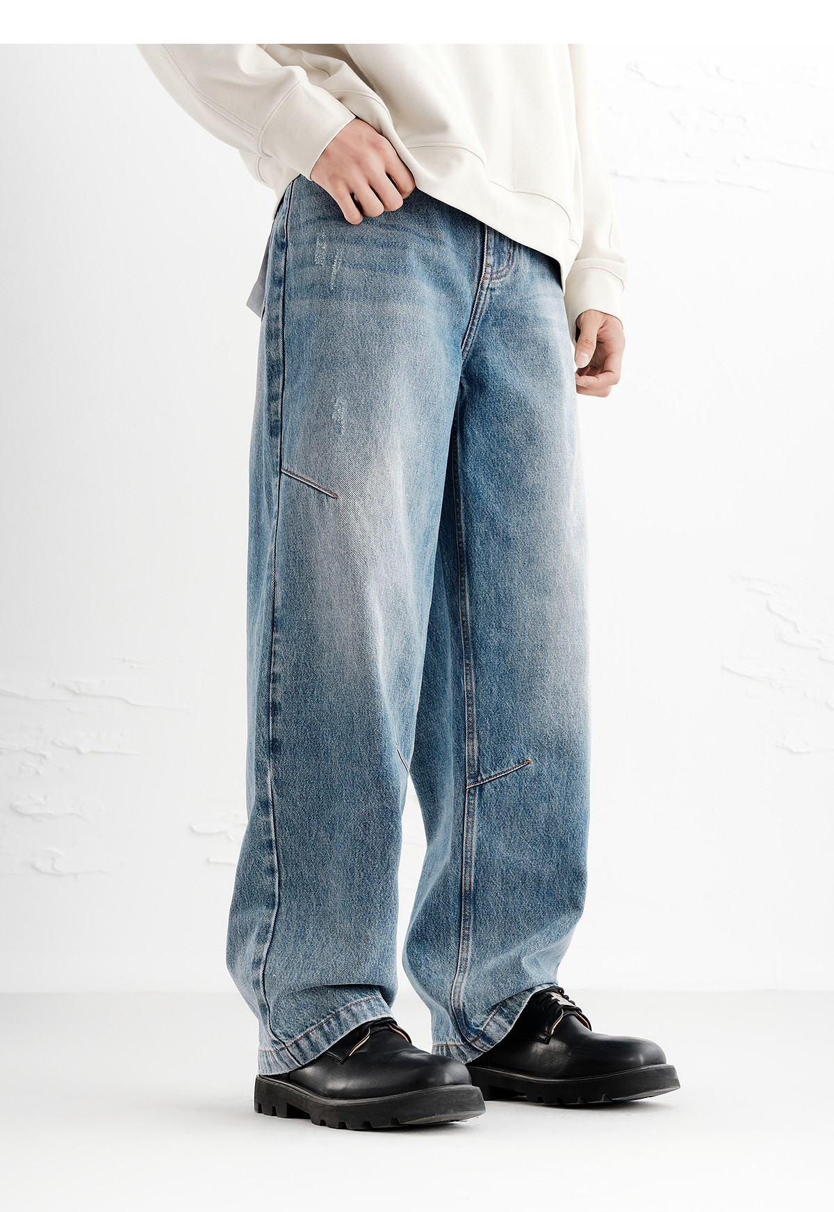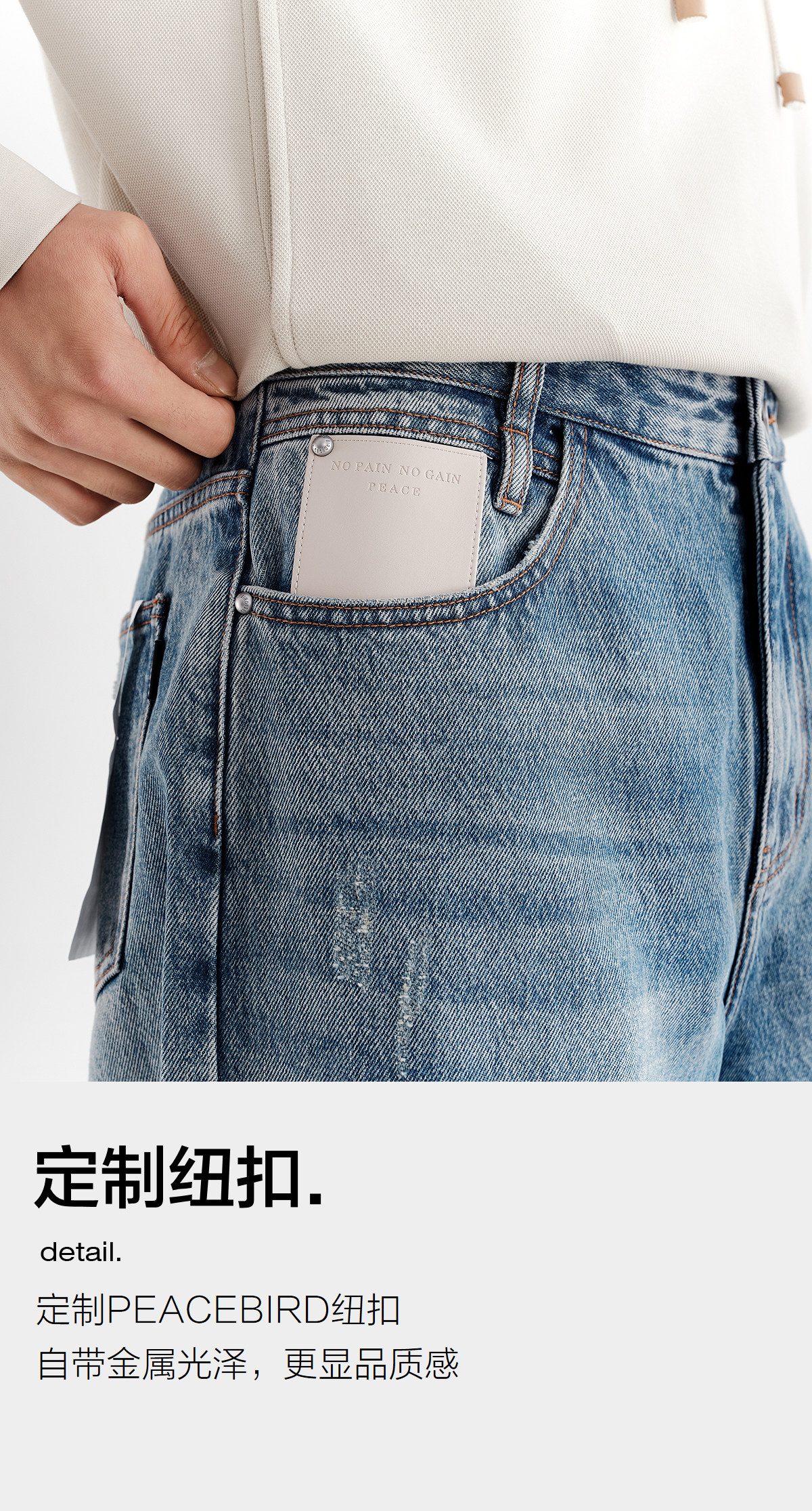 Peacebird Men's Jeans Trendy Brand Cool Distressed Pants Autumn New Straight Loose Fit B1Haf3233