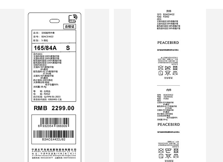 Shopping Mall Same Style Peacebird Men's down Jacket Winter Three-In-One Outdoor Casual Jacket Fashion B2Ace4422