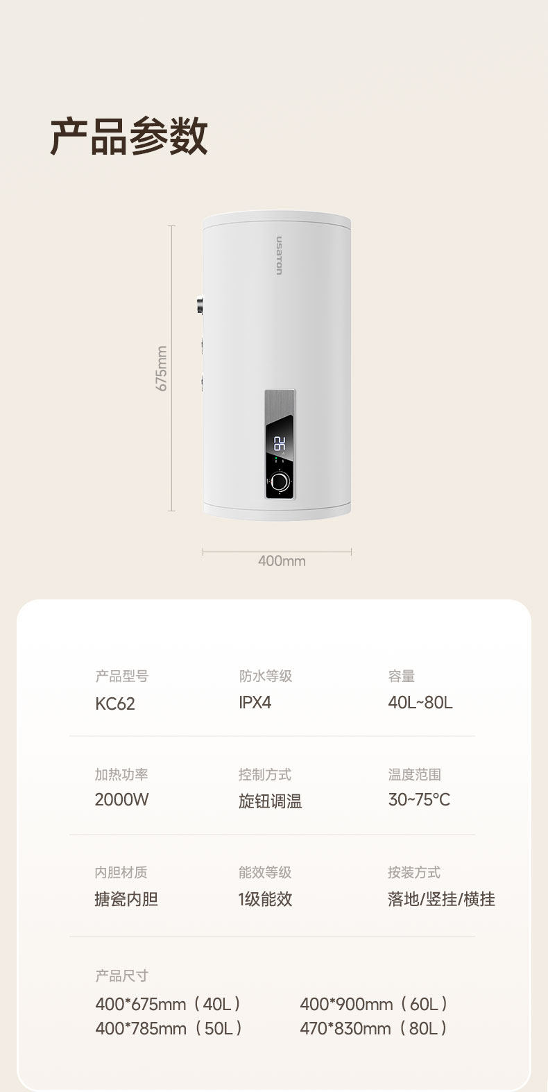 Ashidanton Electric Water Heater, Floor-Standing, Vertical, Storage Type, Household Use, 40/50/60/80 Liters, First-Class Energy Efficiency