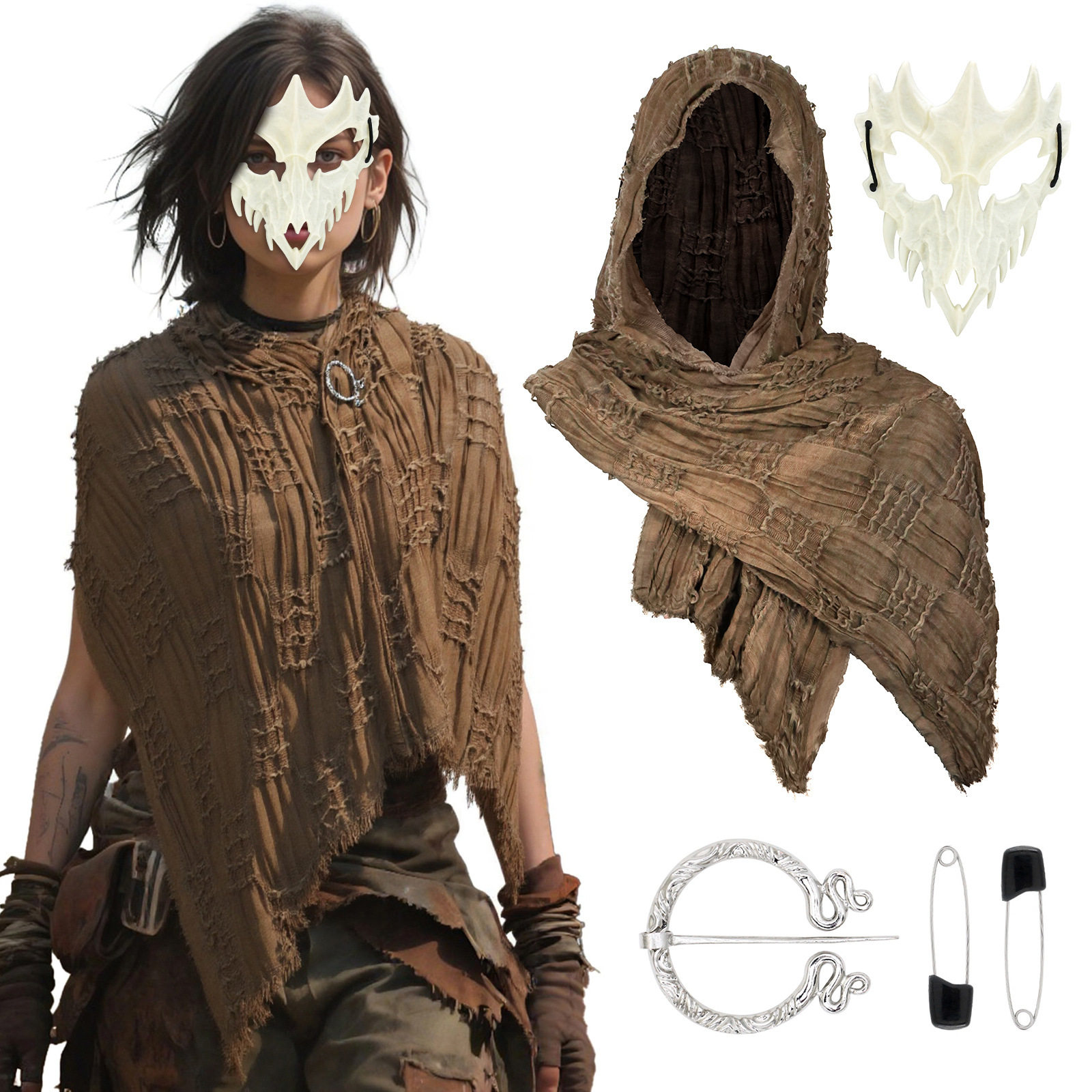 Wasteland-Style Scarf, Cape, Shawl, Battle-Damaged Cloak, Headscarf, Desert Scarf, Ruins Cosplay, Medieval Retro Vintage