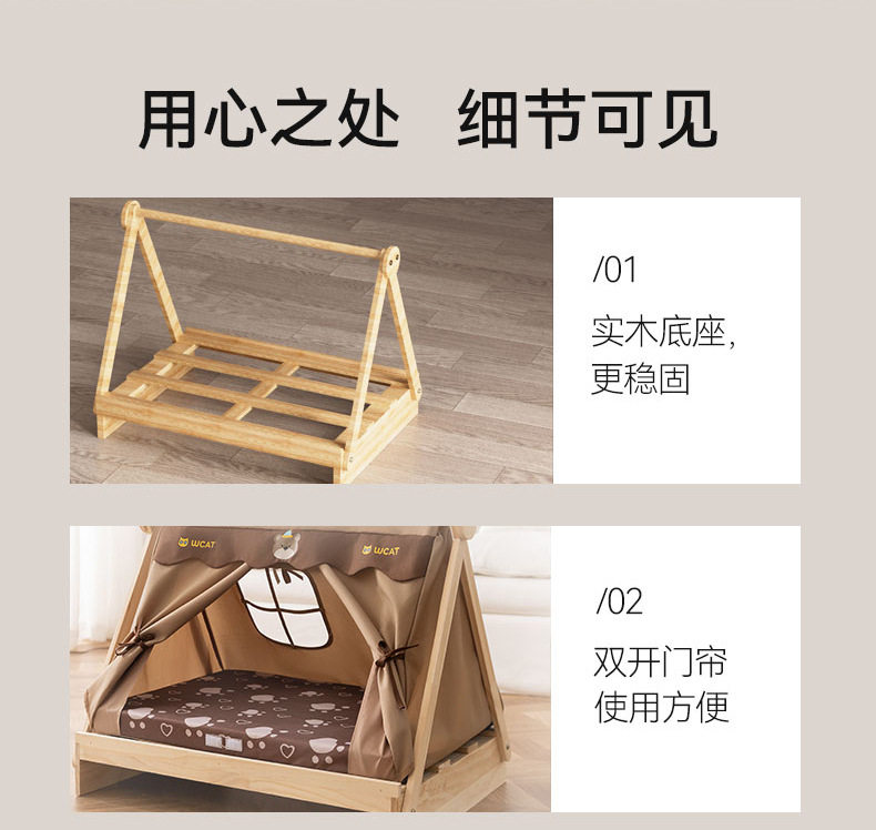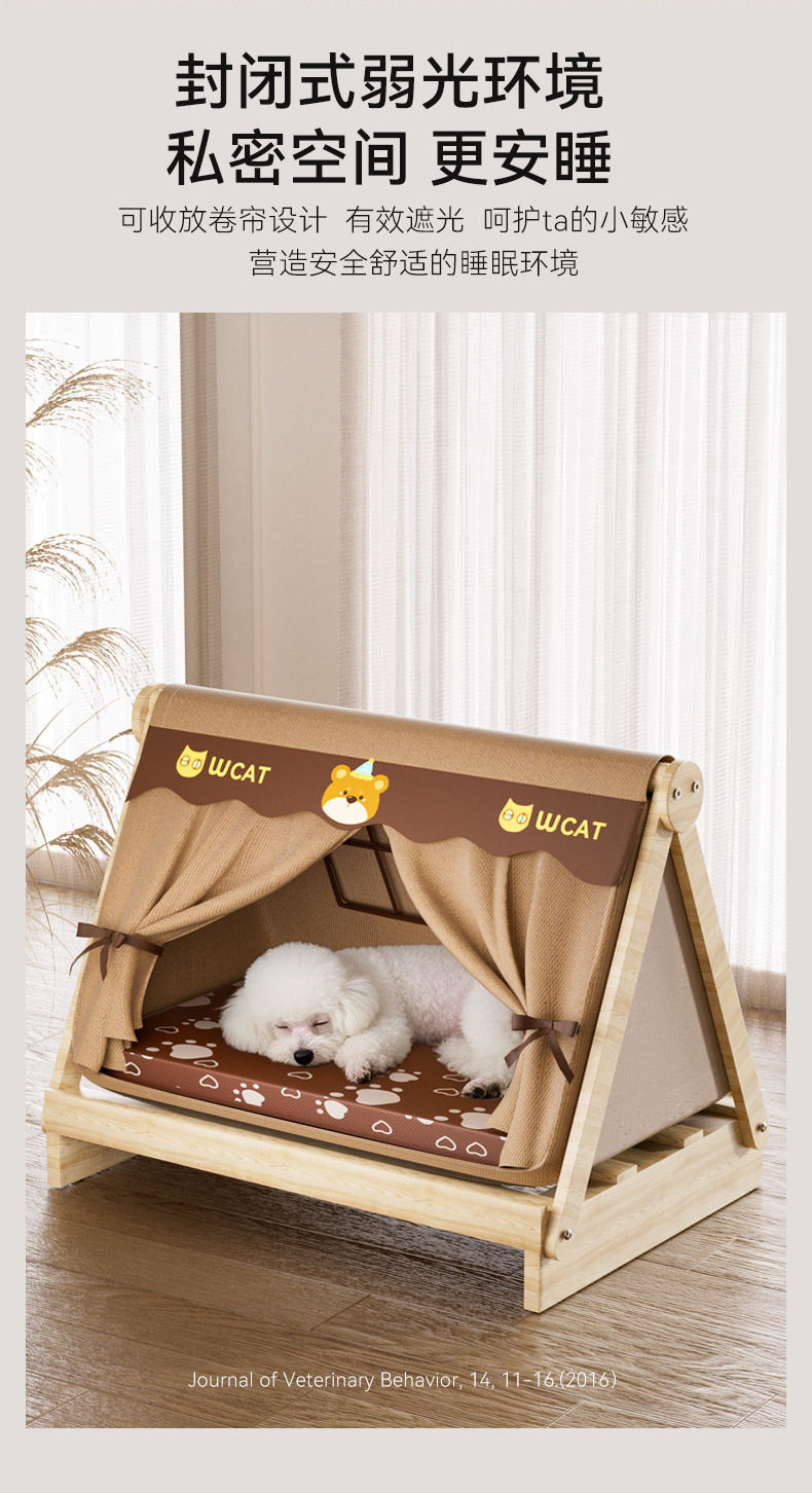 All-Season Solid Wood Dog House for Small Dogs, Bichon Frise, Secure Dog Bed, Tent House, Pet House, Removable and Washable, Cat House
