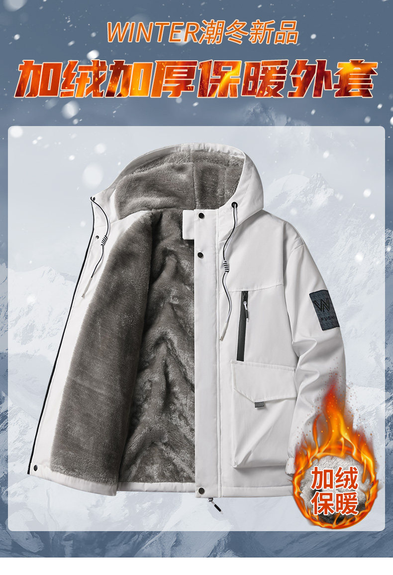 Autumn and Winter Youth Fleece-Lined Thickened Cold-Resistant Warm Jacket Men's Jacket Cotton Coat Junior High School and High School Students' Softshell Jacket