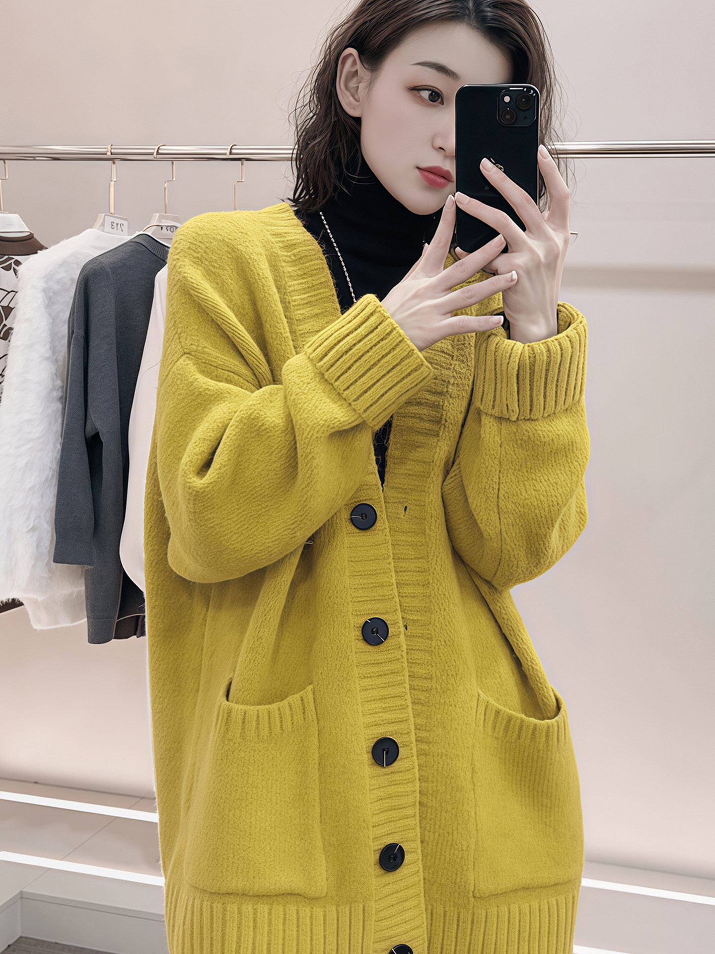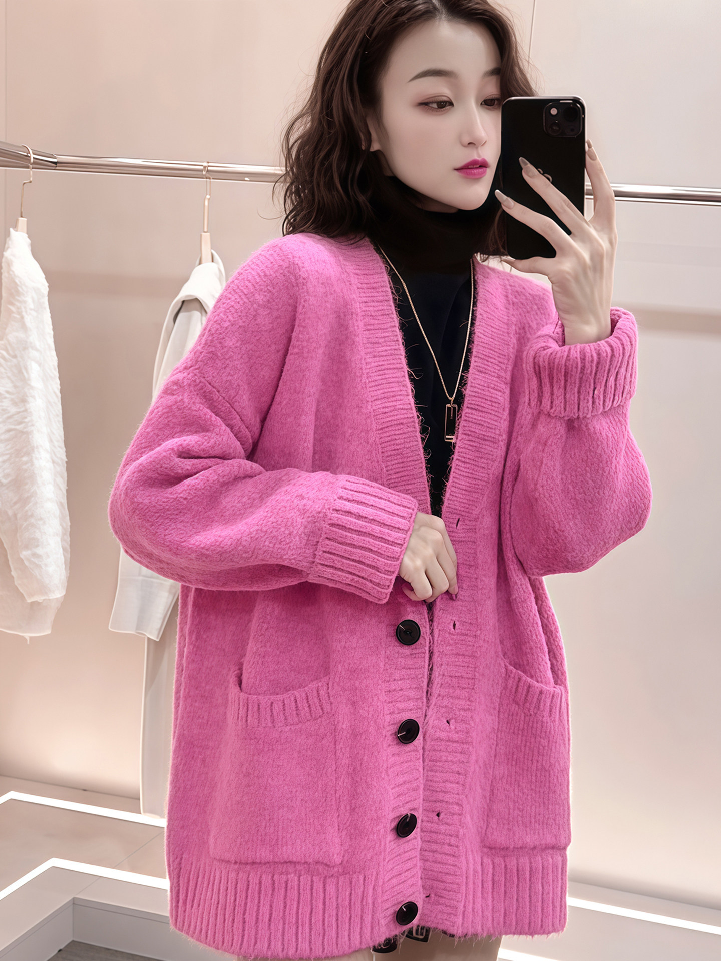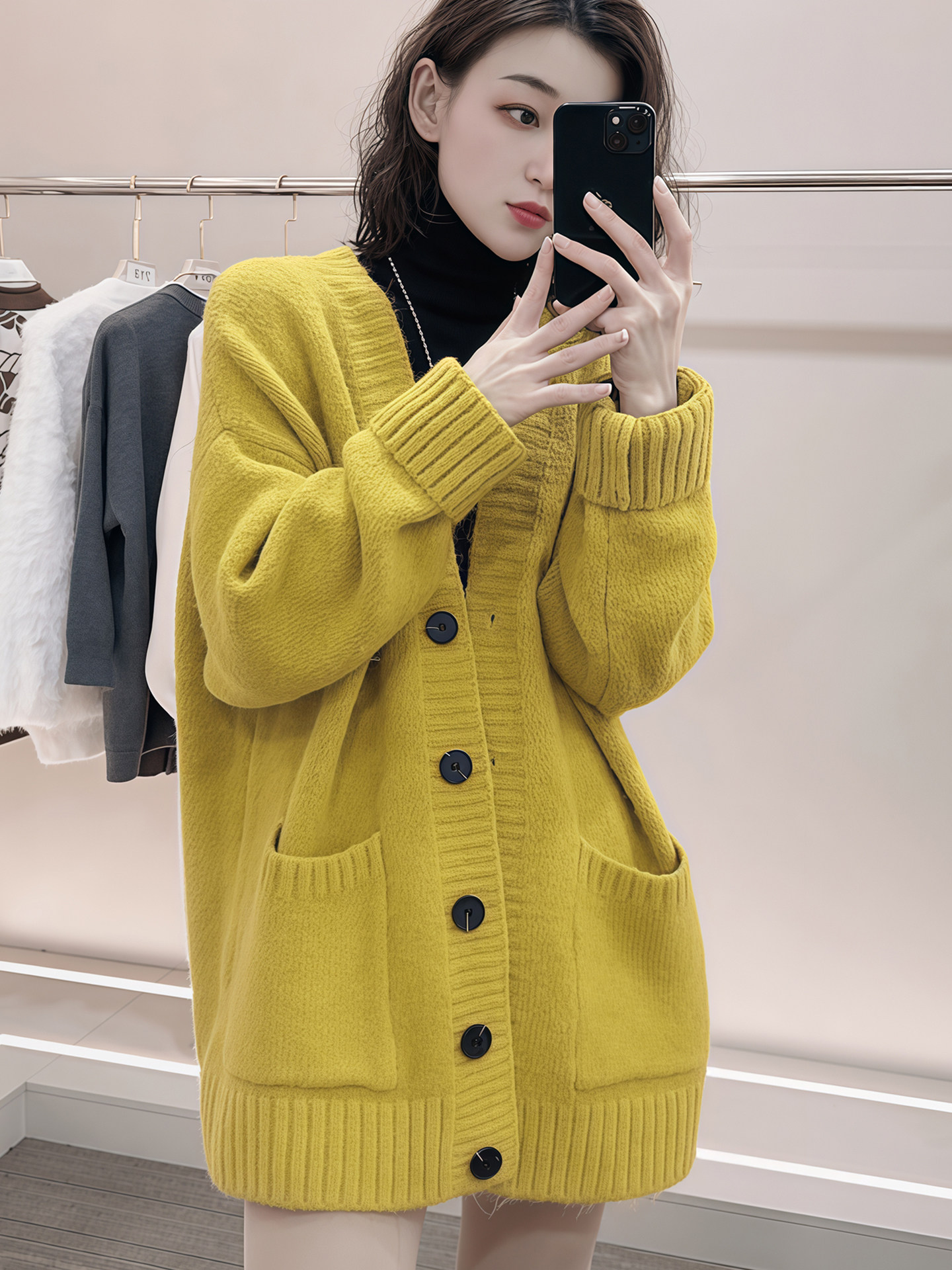 Sort by color Yellow knitted cardigan,Rose red knitted cardigan