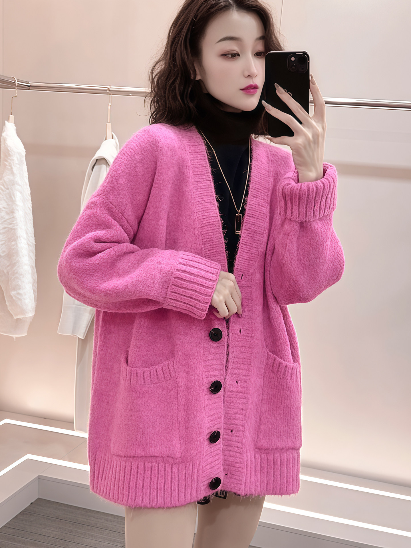 European heavyweight 2025 autumn and winter new simple knitted cardigans, high-end wear, beautiful tops for women