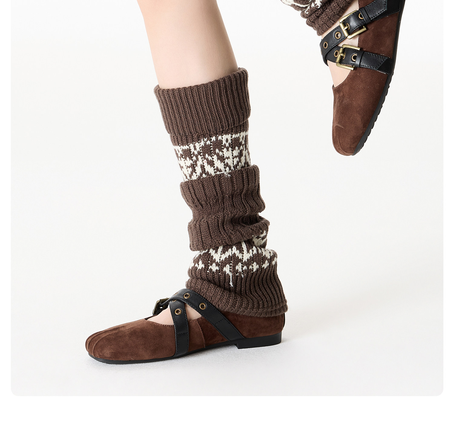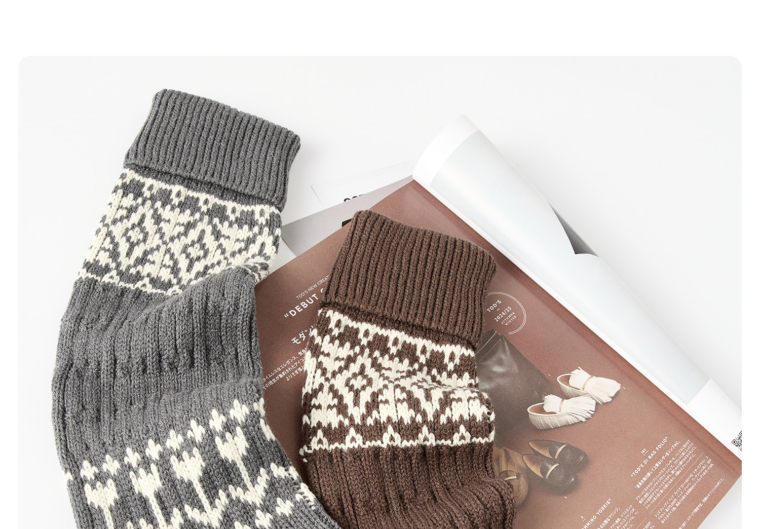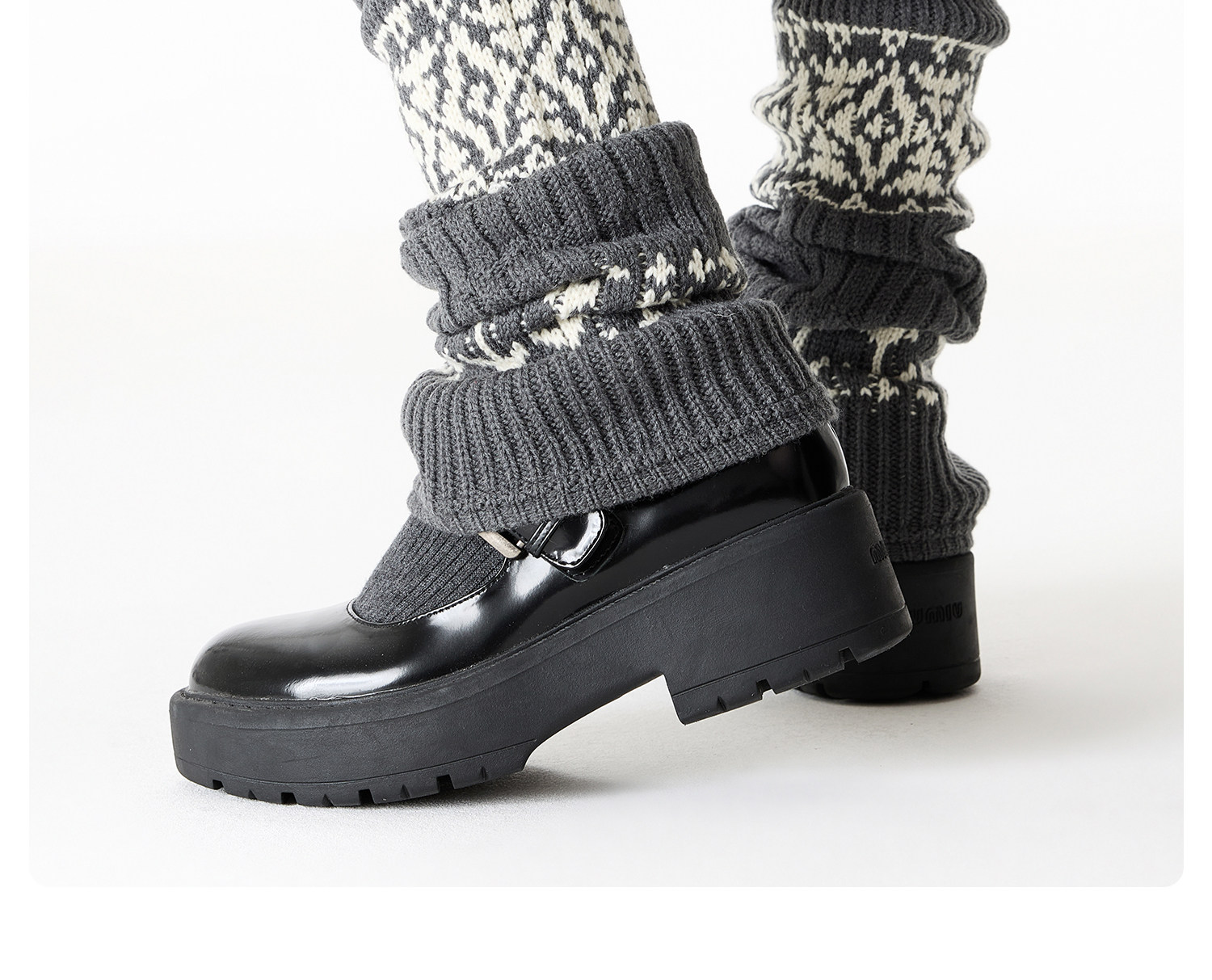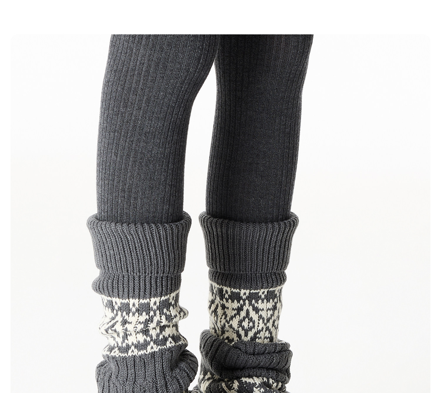 Wool Autumn and Winter Dark Gray Slouch Socks, Calf Leg Warmers, Vintage Fair Isle Thickened Warm Sock Covers for Women, Paired with Small Leather Shoes