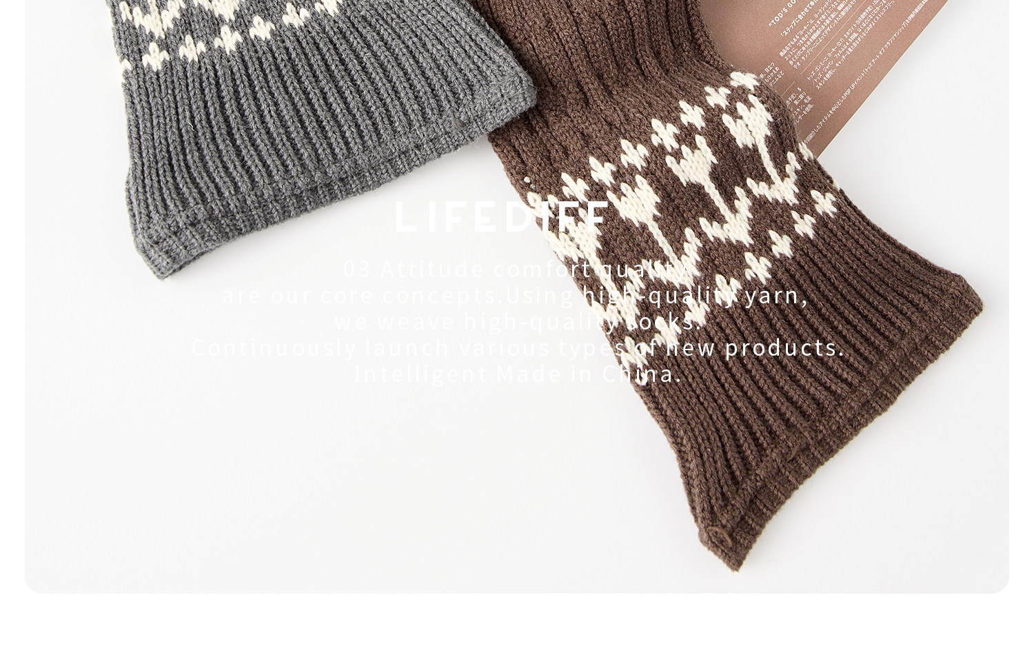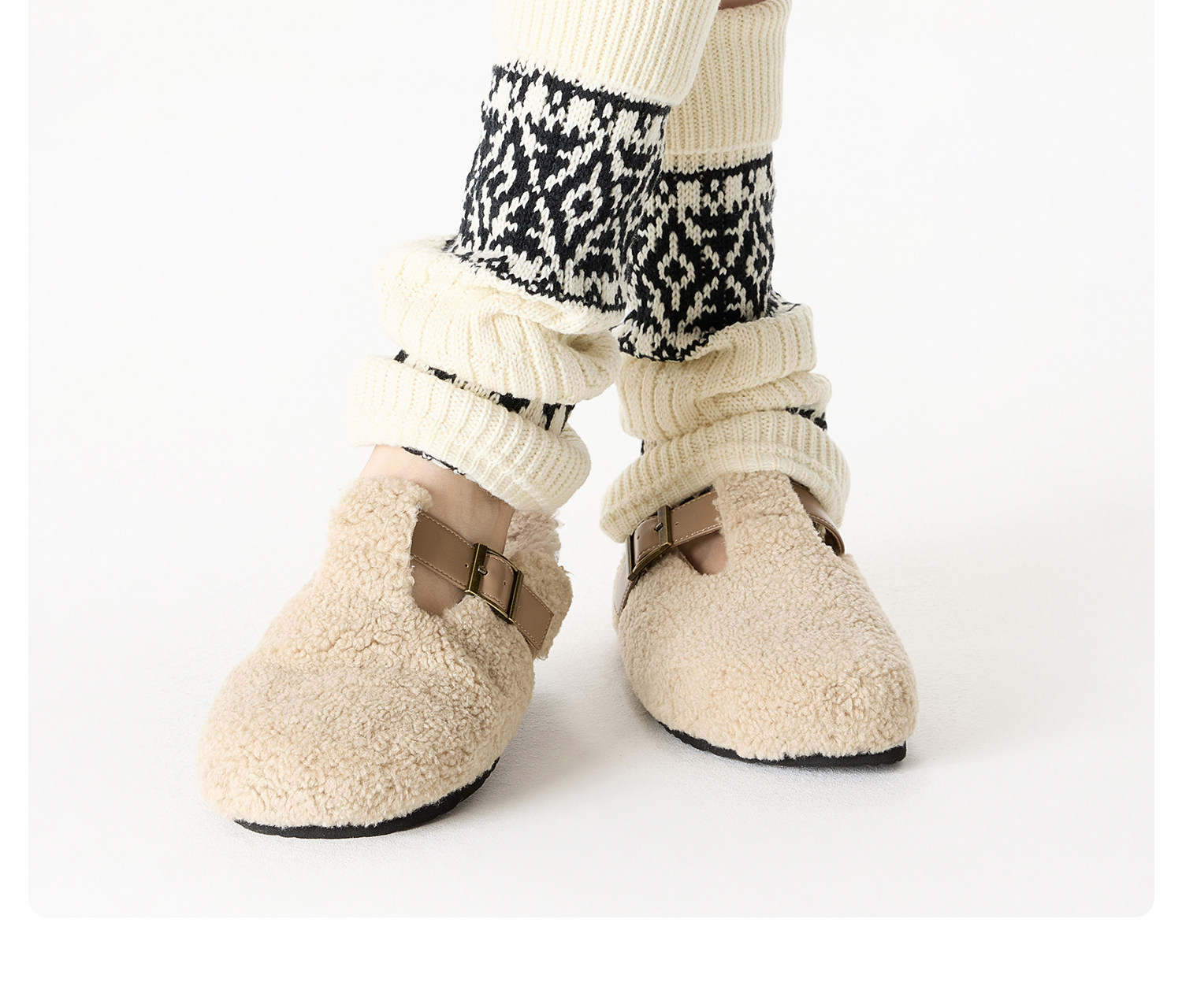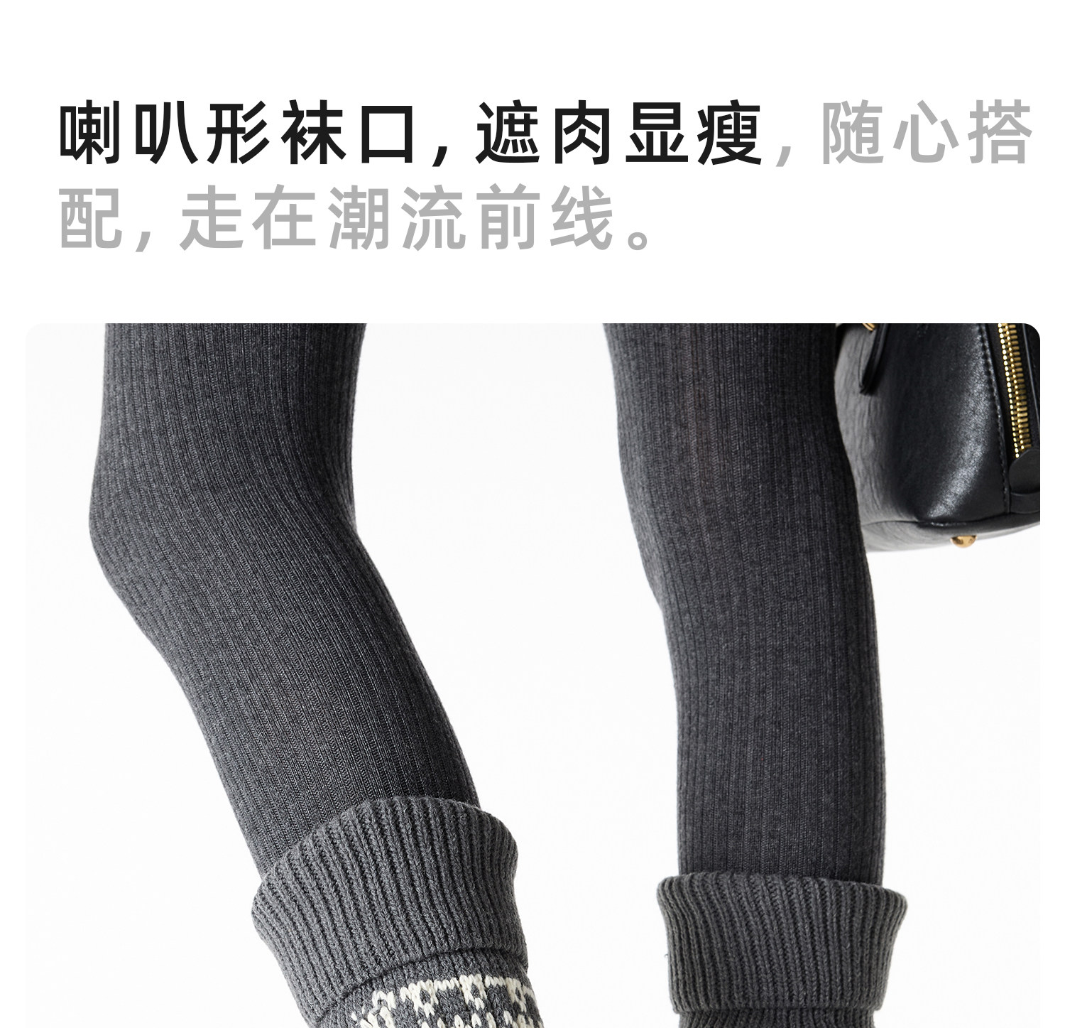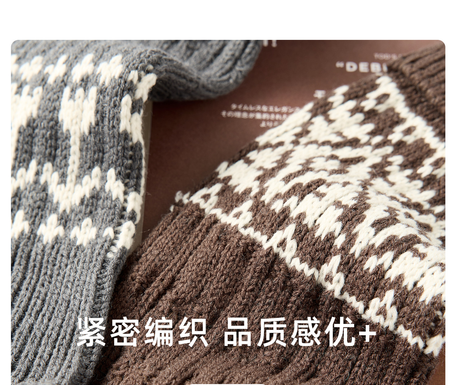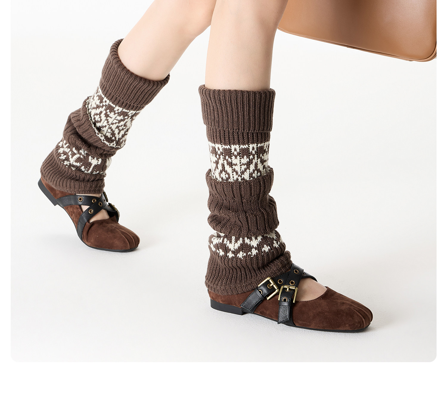 Wool Autumn and Winter Dark Gray Slouch Socks, Calf Leg Warmers, Vintage Fair Isle Thickened Warm Sock Covers for Women, Paired with Small Leather Shoes