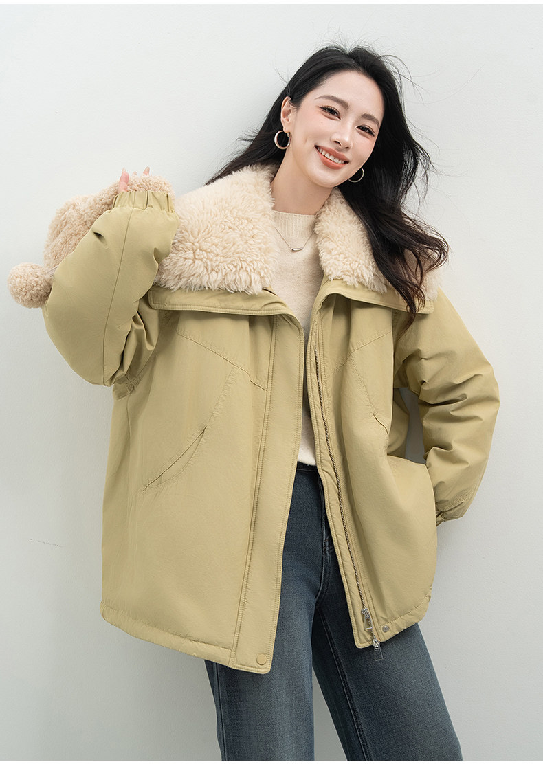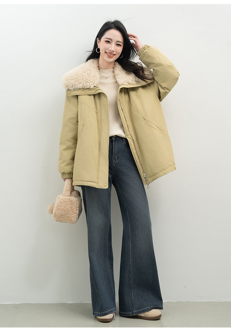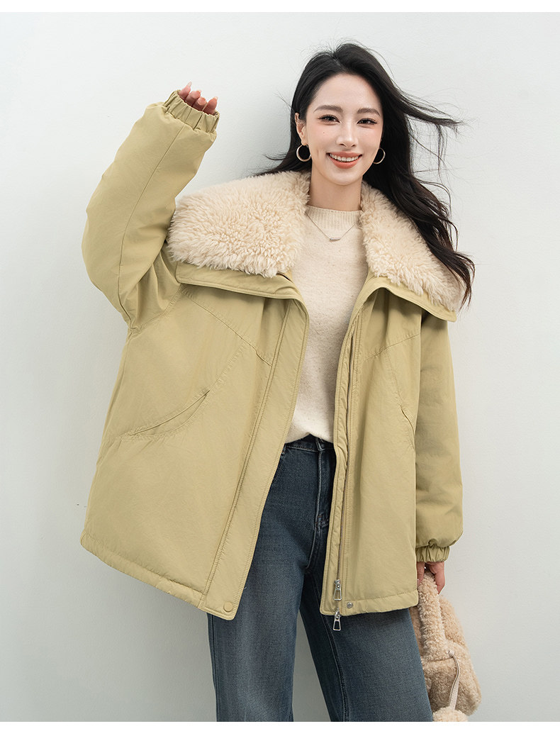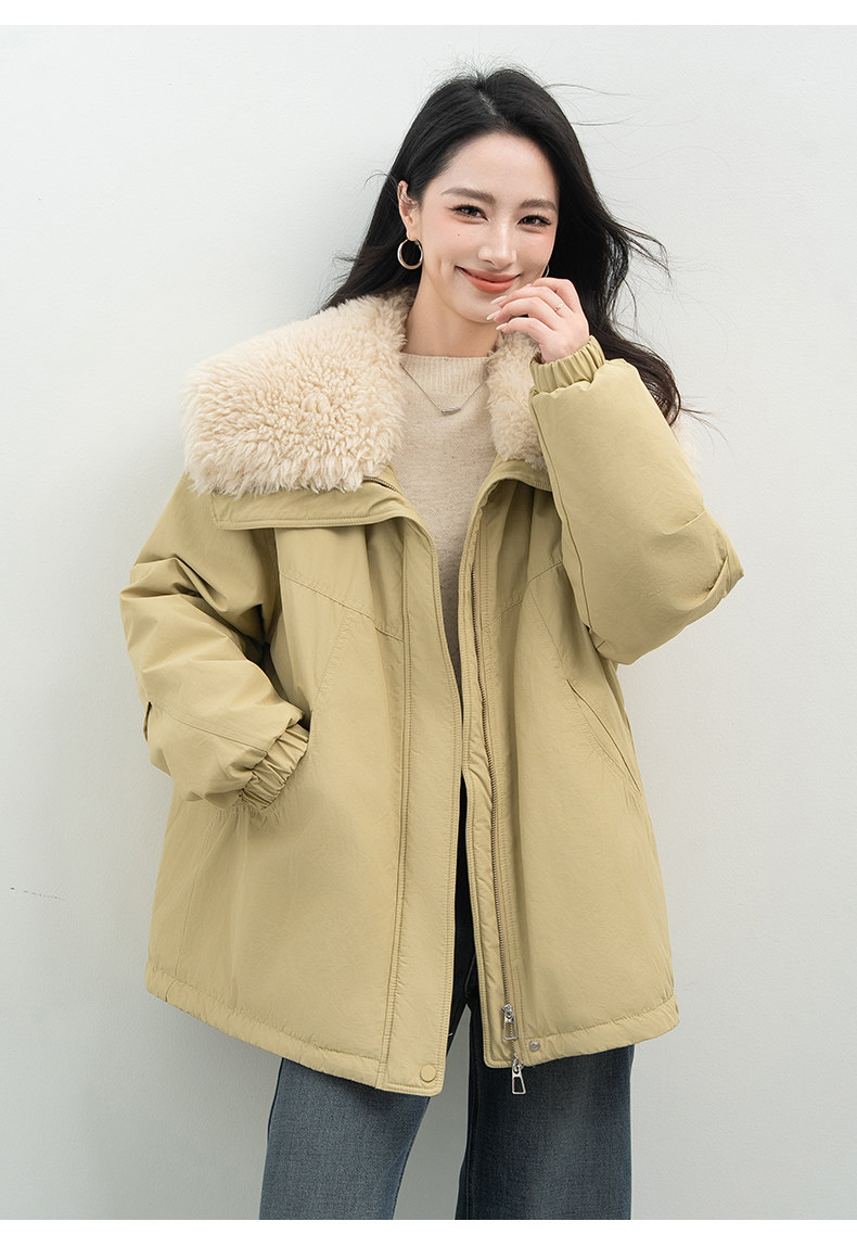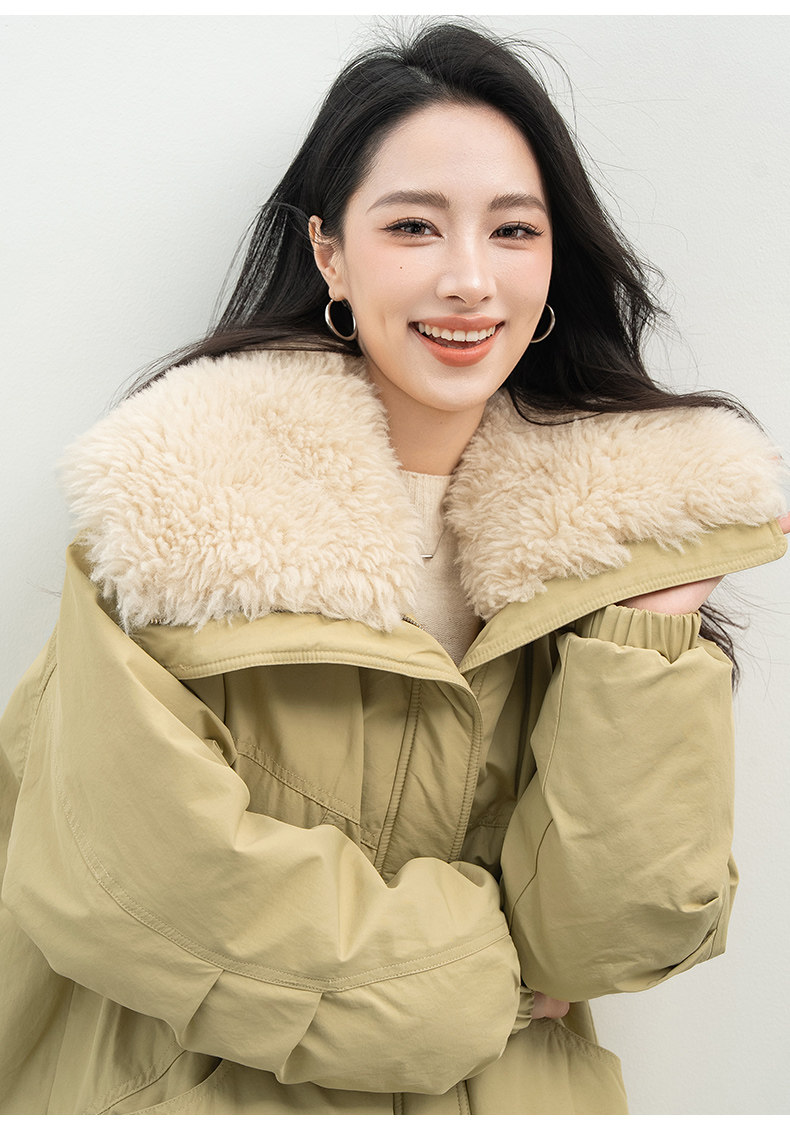 Xiafan Ni Warm Light Night Talk Yellow down Jacket for Women, Mid-Length, Super Stylish Faux Shearling Parka Winter Coat