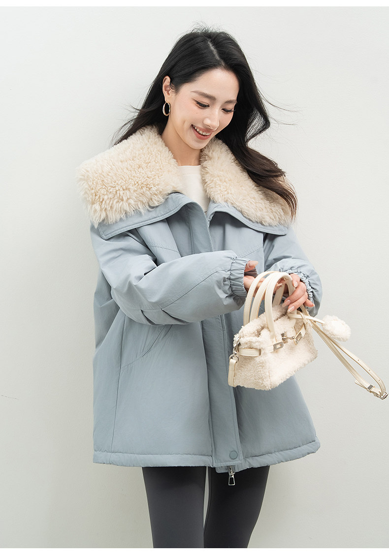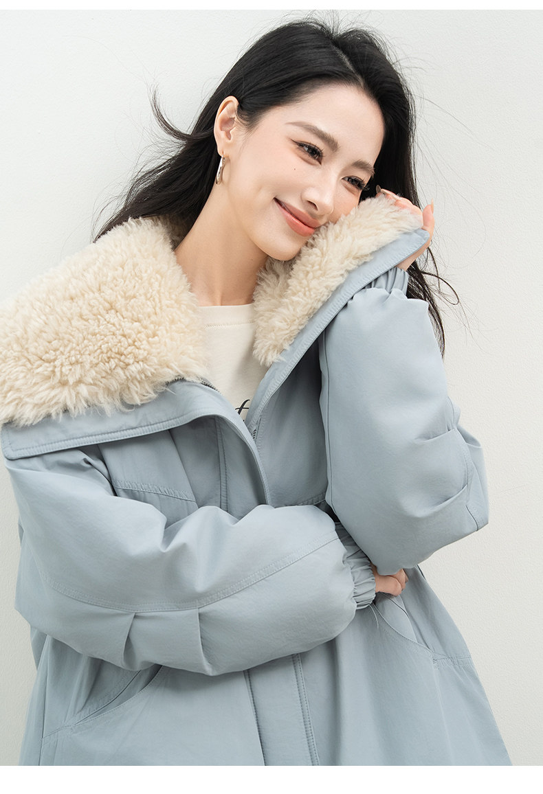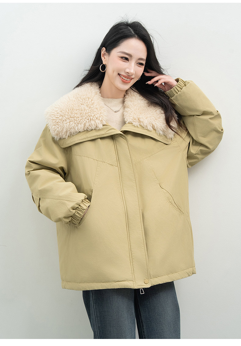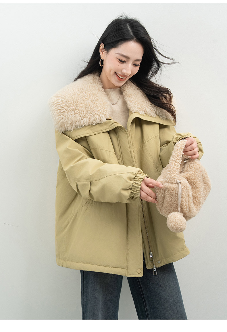 Xiafan Ni Warm Light Night Talk Yellow down Jacket for Women, Mid-Length, Super Stylish Faux Shearling Parka Winter Coat
