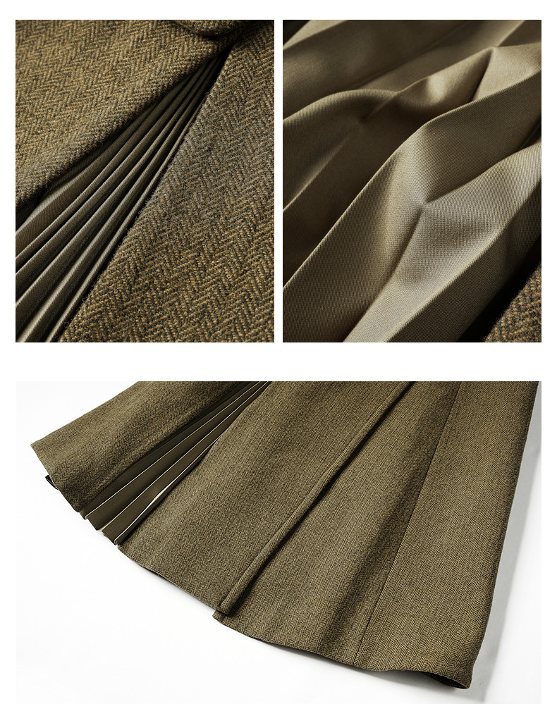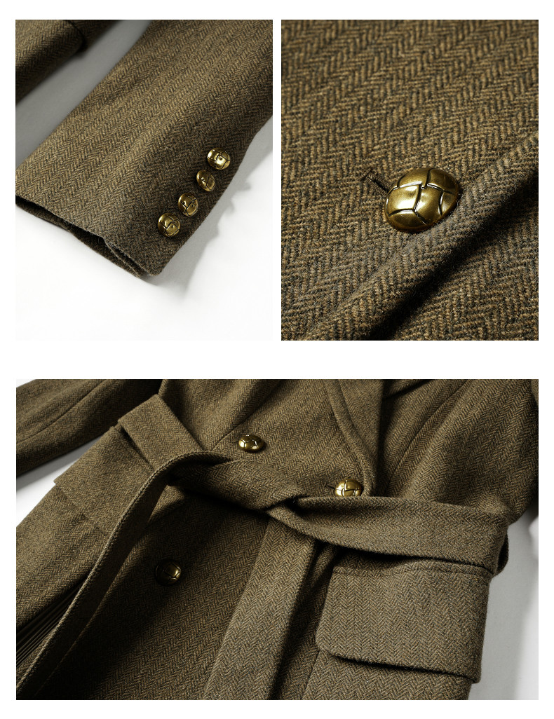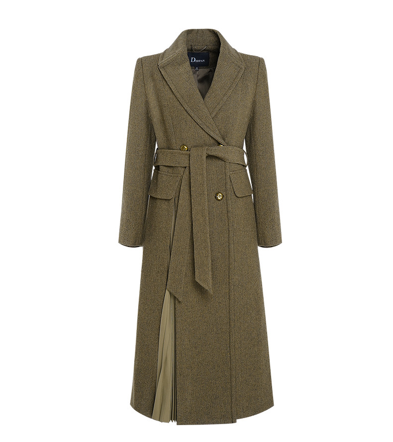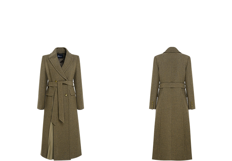 Idpan Outlet Autumn/Winter Classic Retro Melard Color Series Wool Coat for Women, High-End Elegant Waist-Cinched Coat
