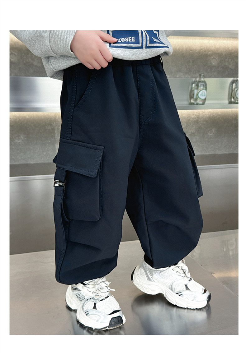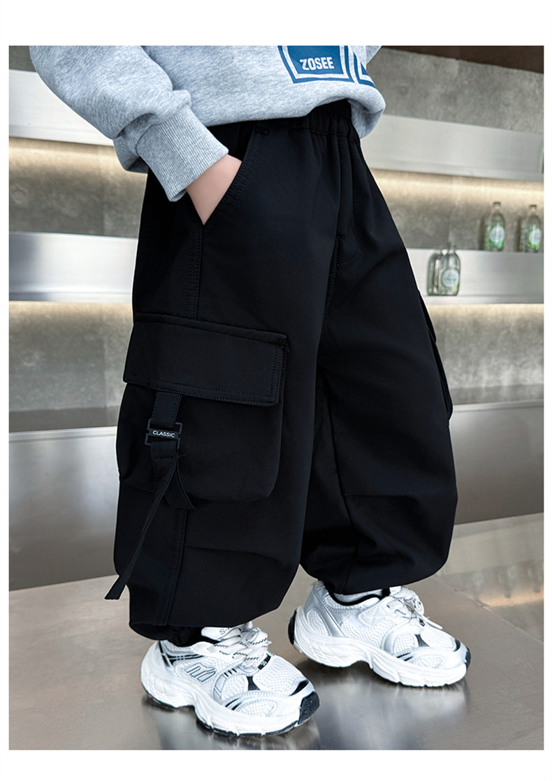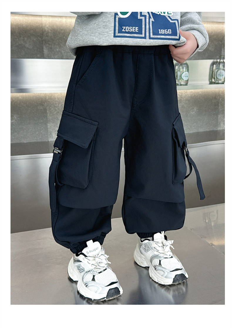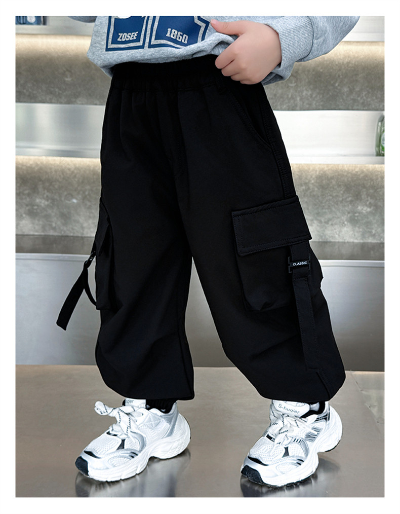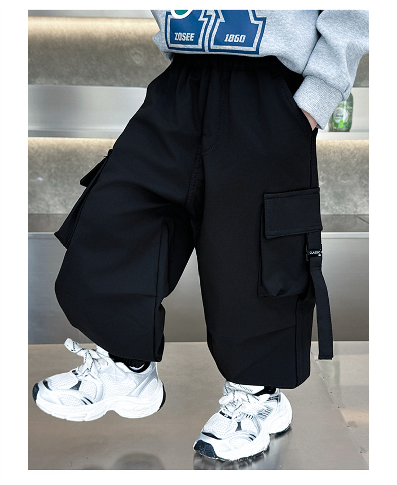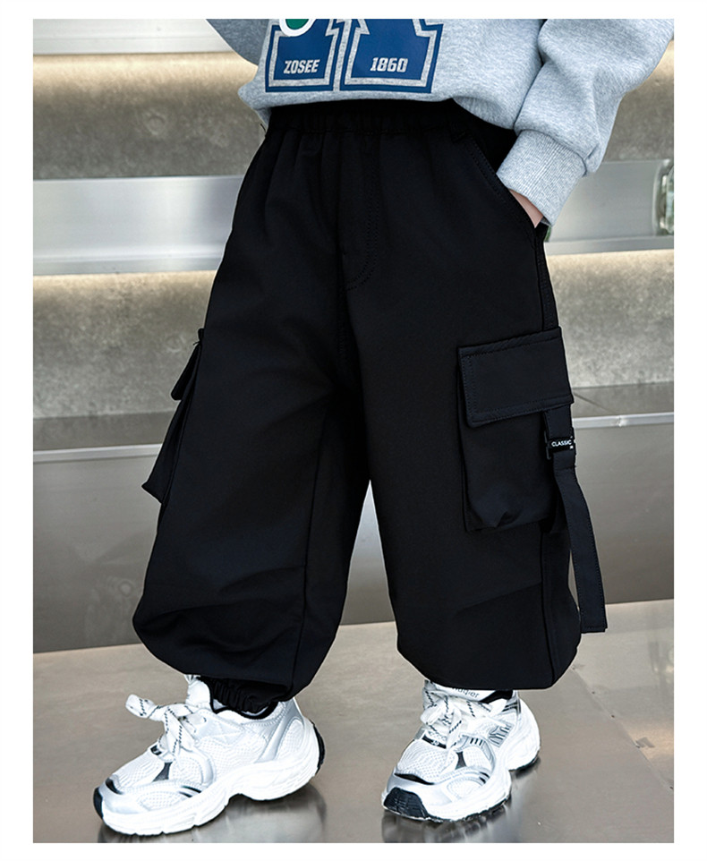 Boys' Fleece-Lined Pants for Autumn and Winter 2025, New Children's Cargo Pants, Thickened Casual Jogger Pants for Little Boys