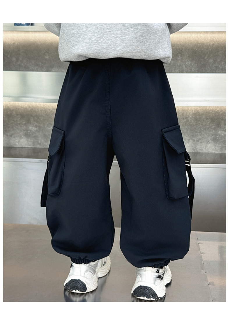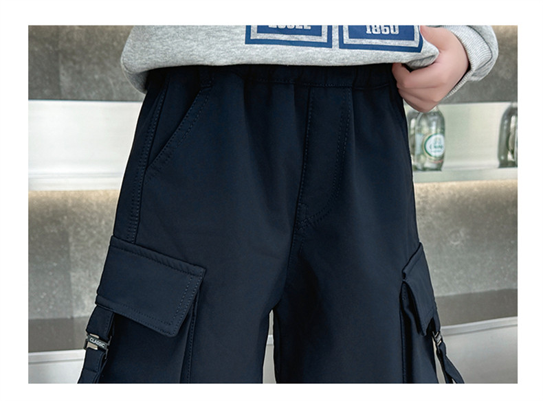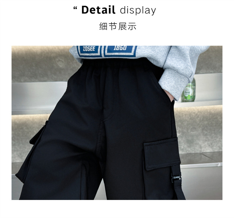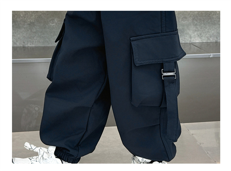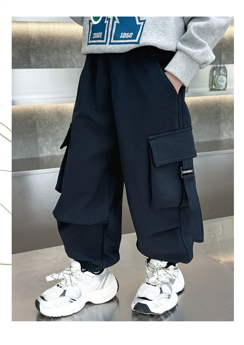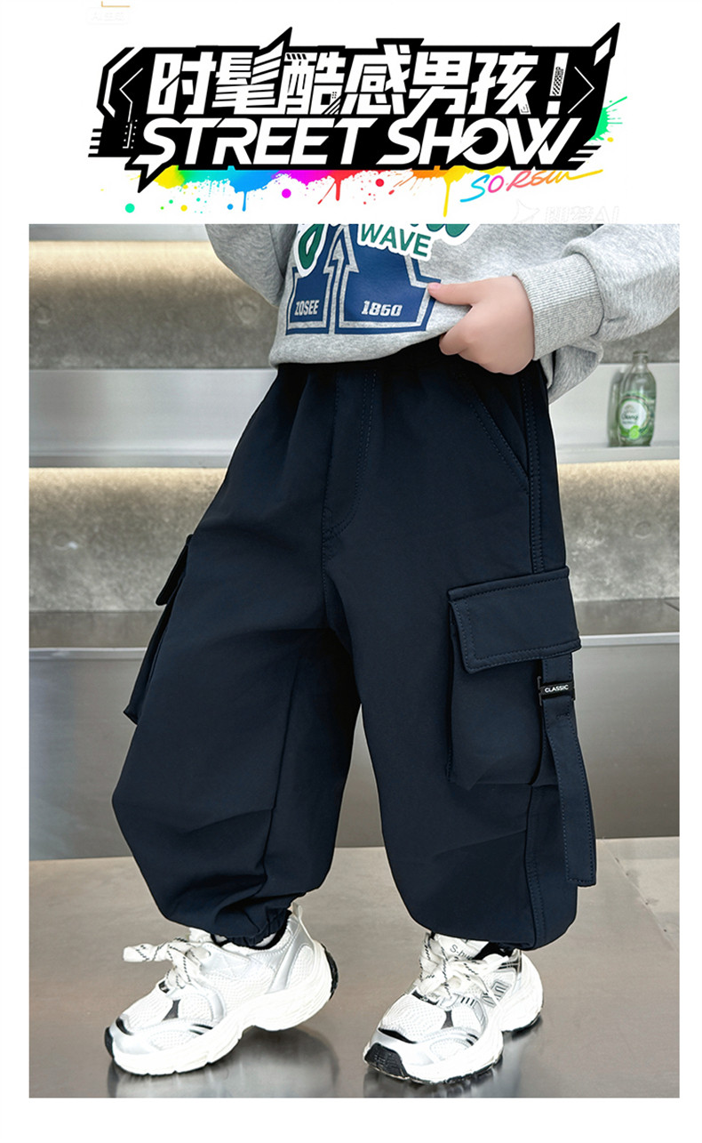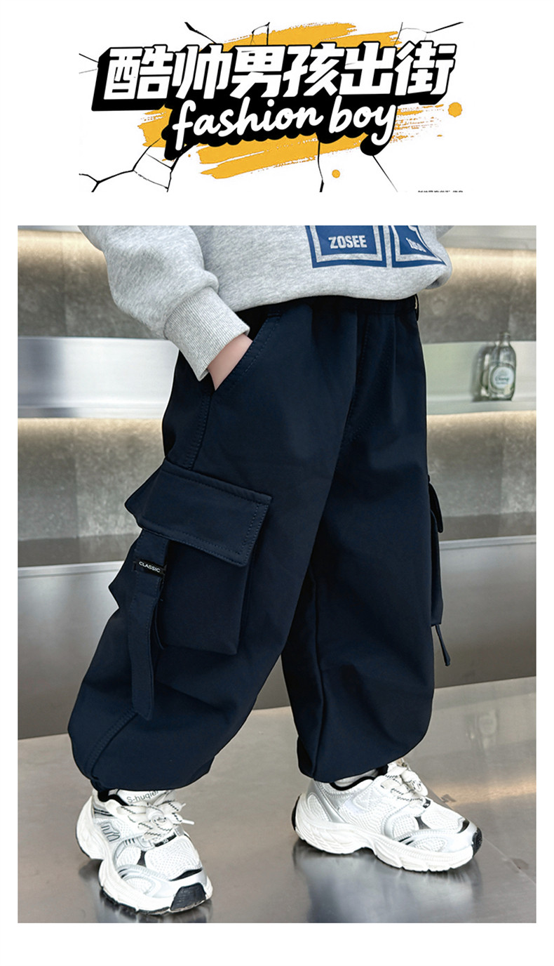 Boys' Fleece-Lined Pants for Autumn and Winter 2025, New Children's Cargo Pants, Thickened Casual Jogger Pants for Little Boys