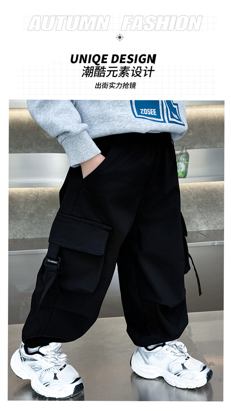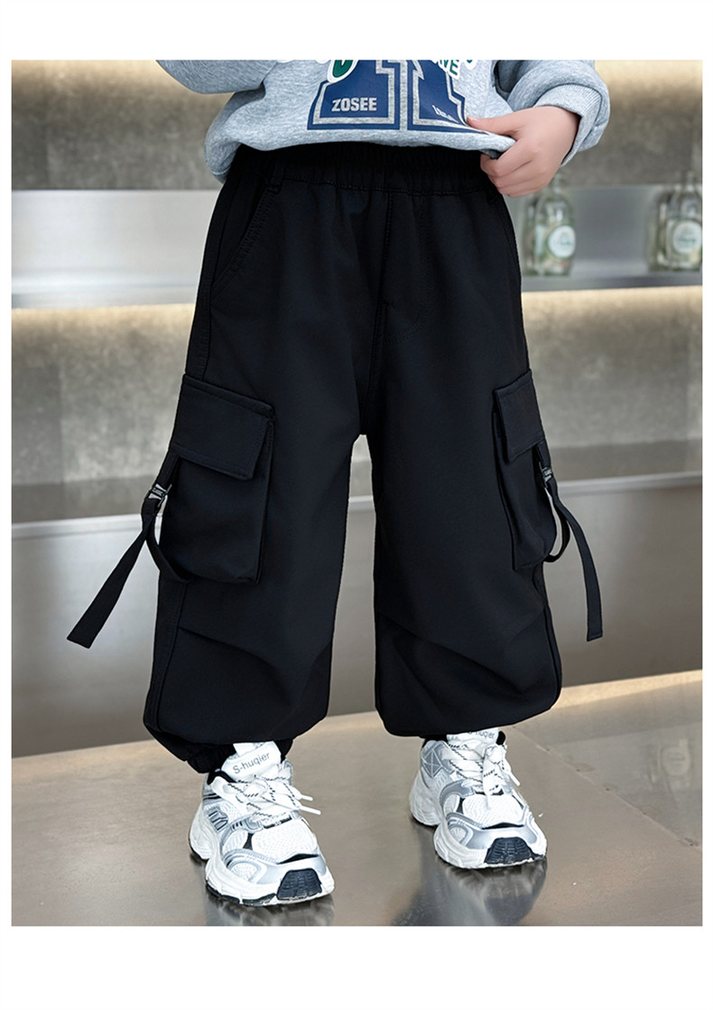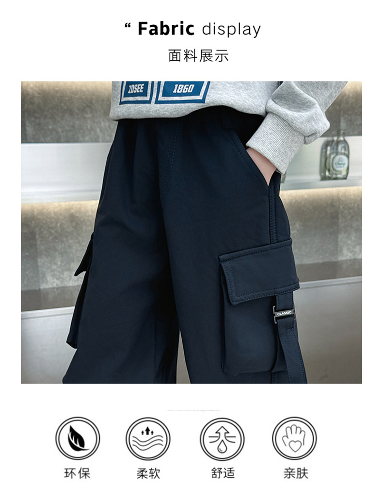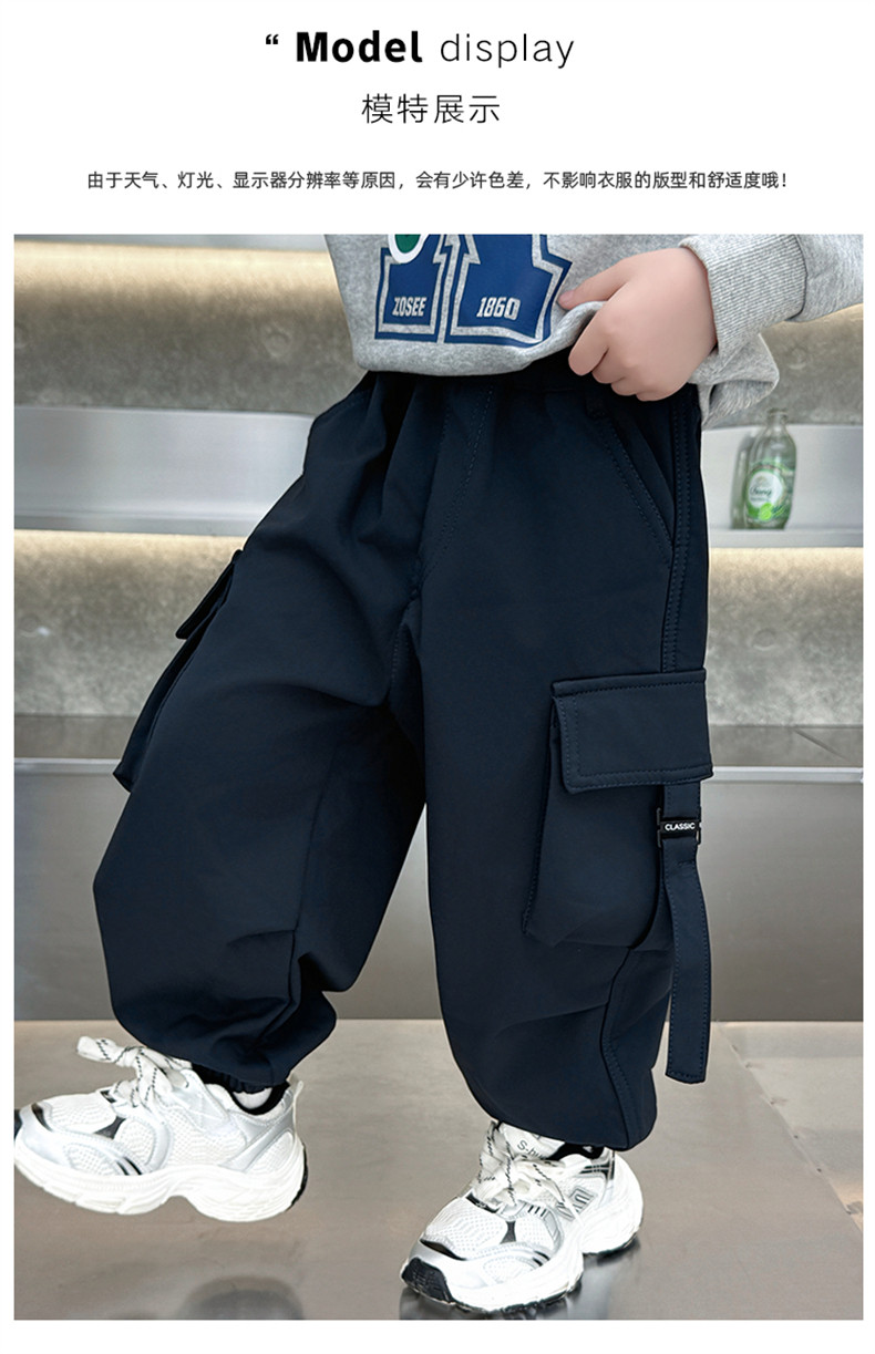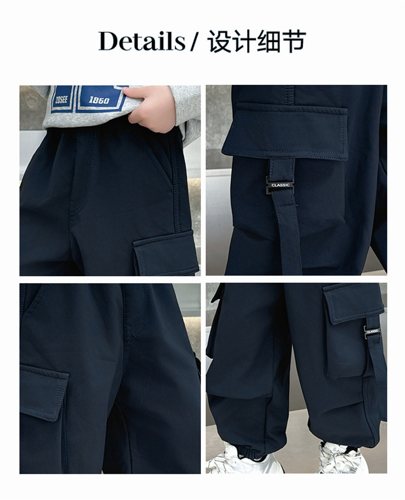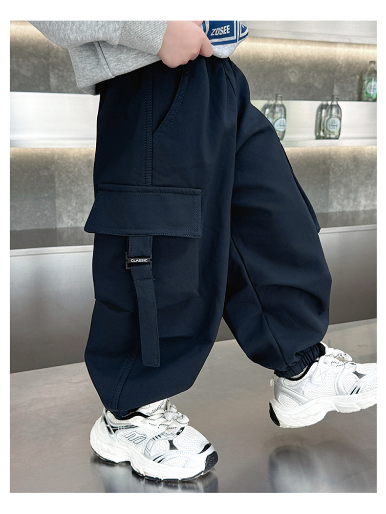 Boys' Fleece-Lined Pants for Autumn and Winter 2025, New Children's Cargo Pants, Thickened Casual Jogger Pants for Little Boys