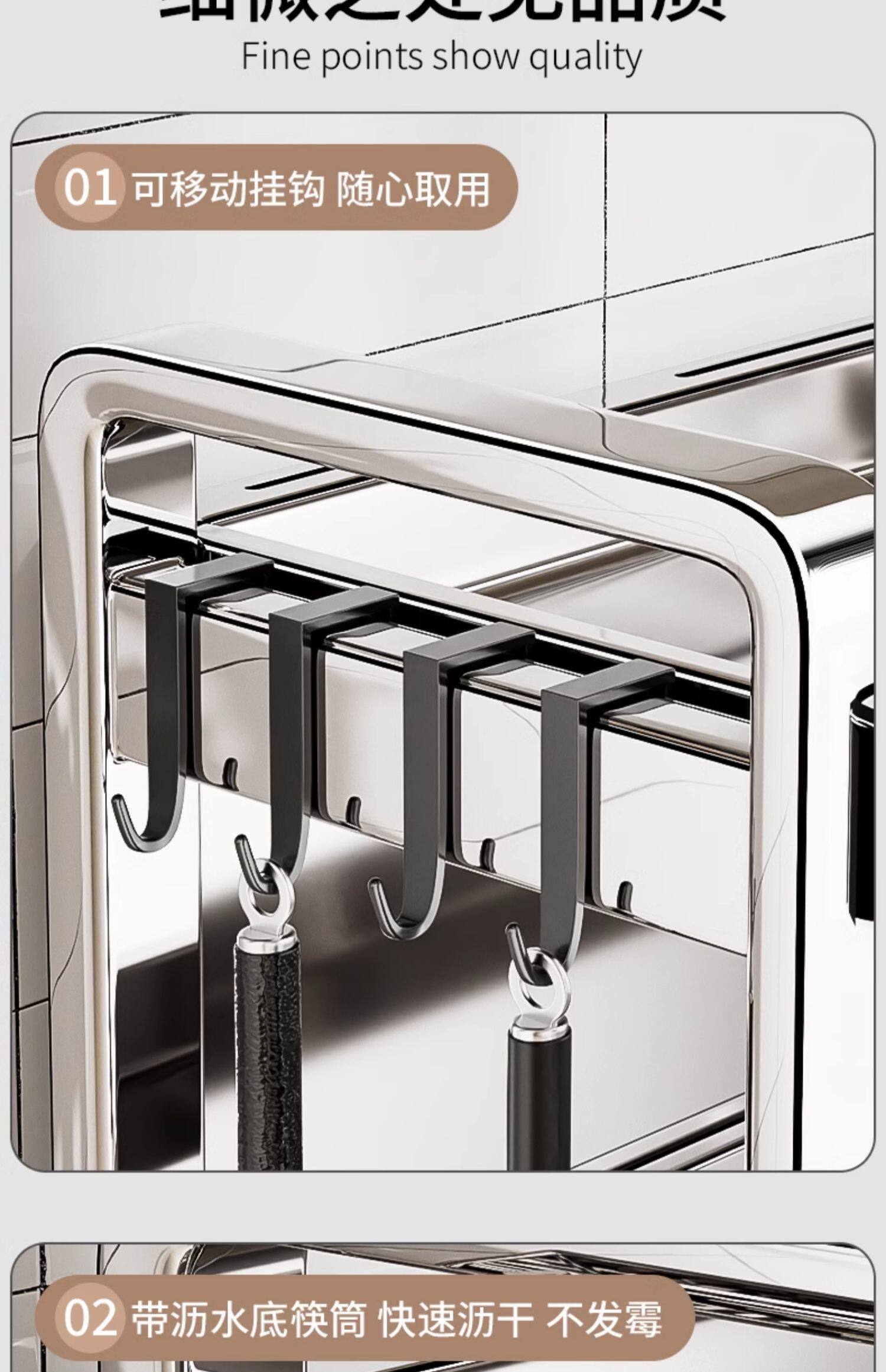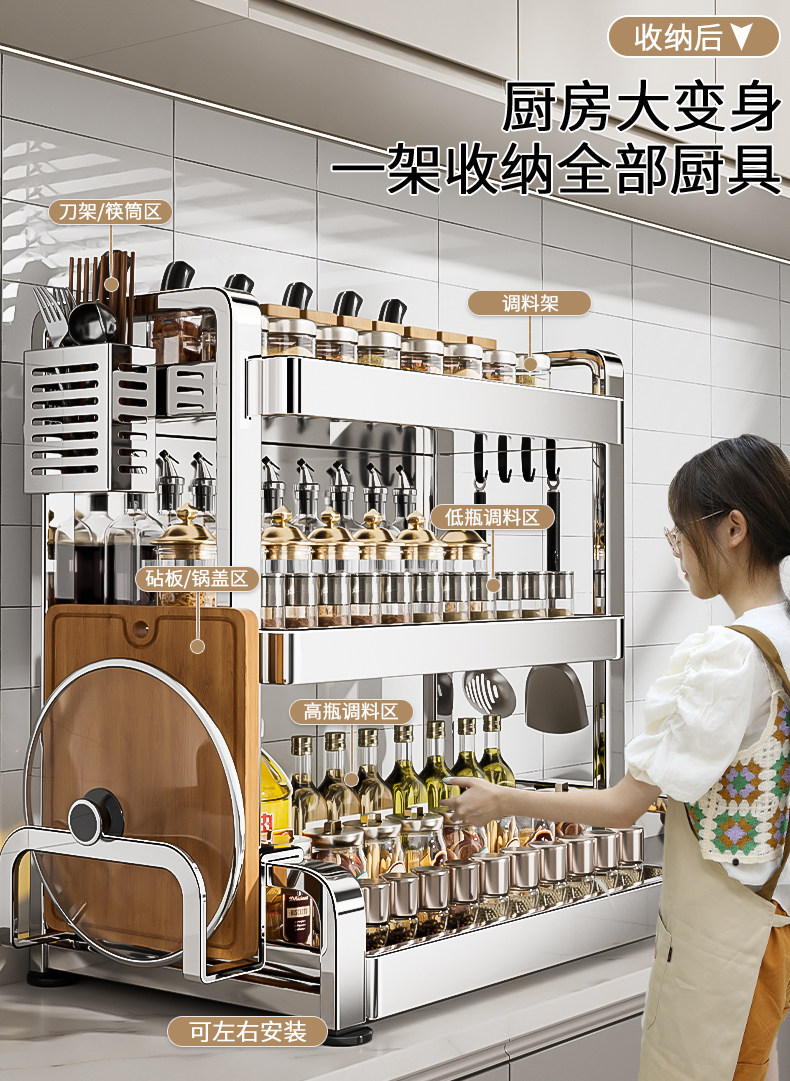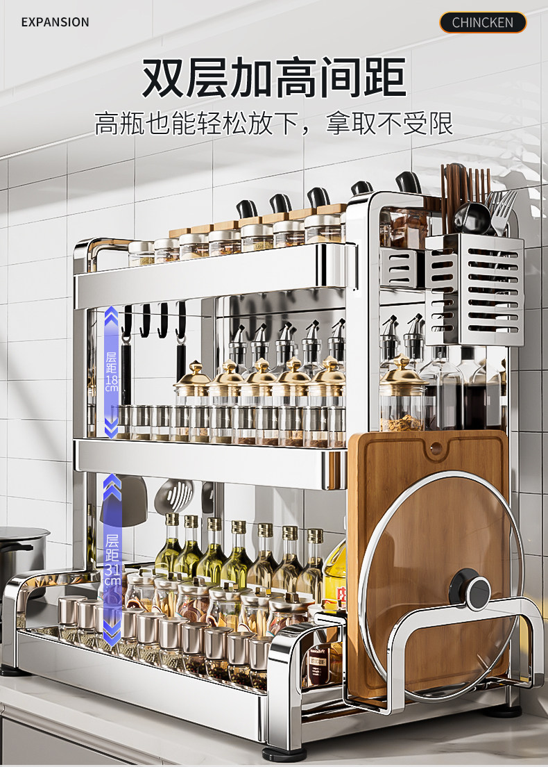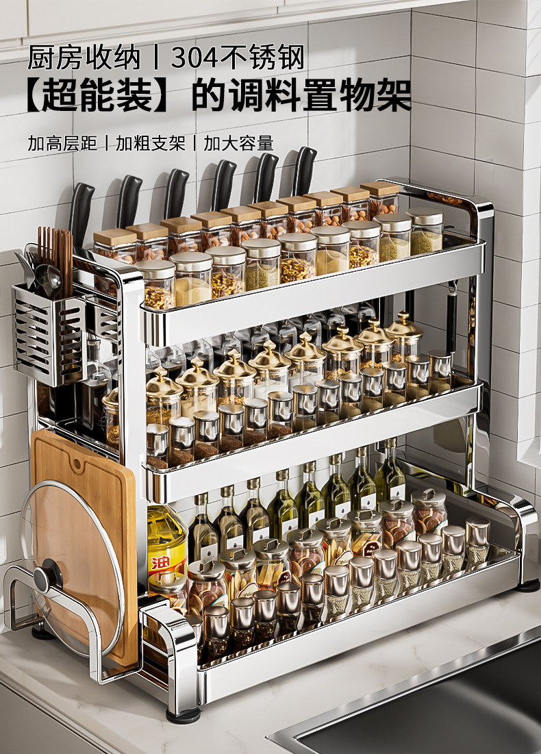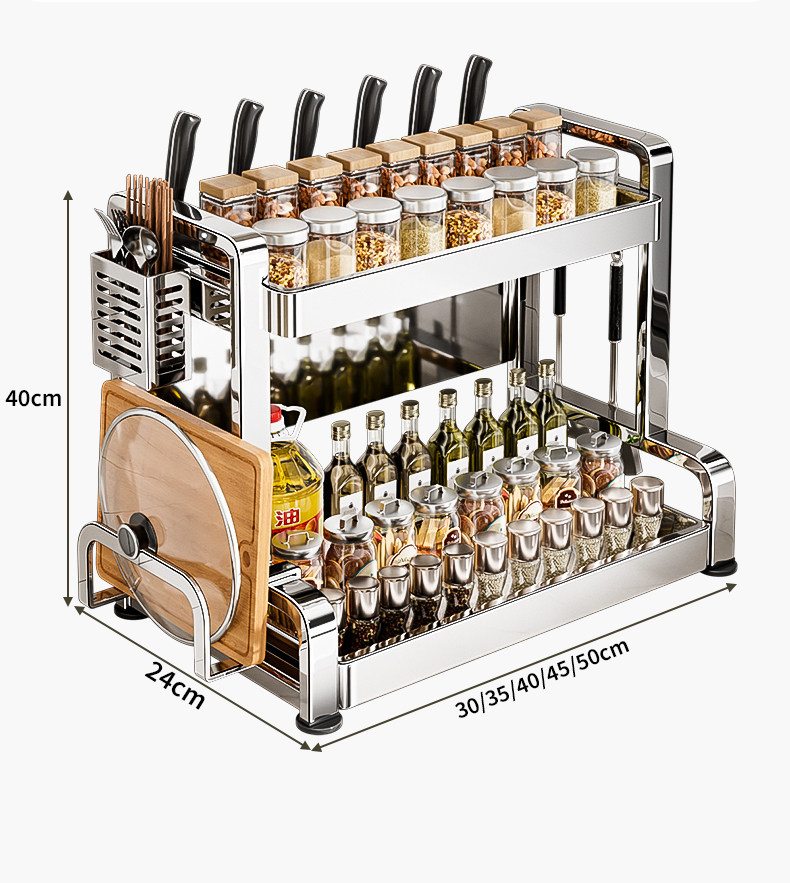 304 Stainless Steel Kitchen Condiment Storage Rack Multi-Functional Countertop Oil, Salt, Sauce, Vinegar Bottle, Chopsticks, Knife Storage Box
