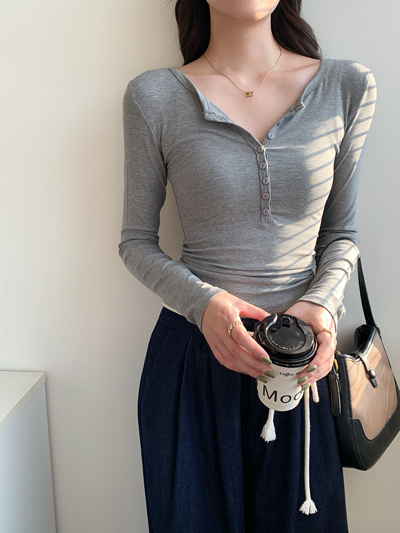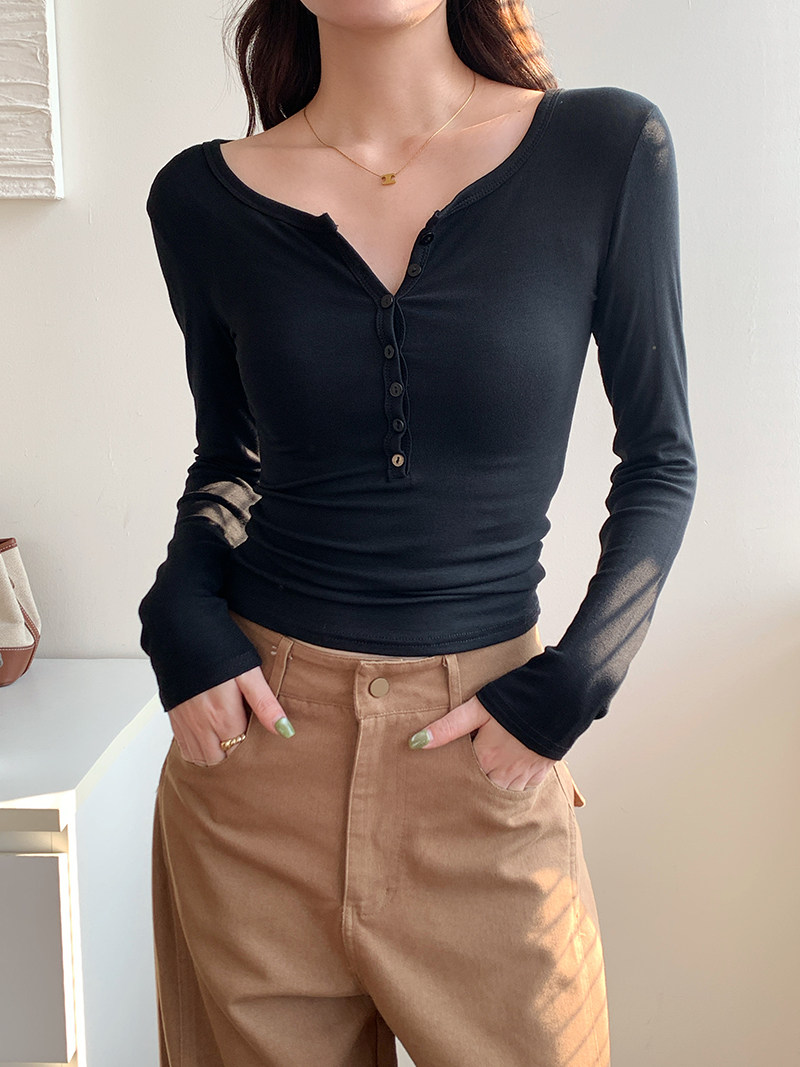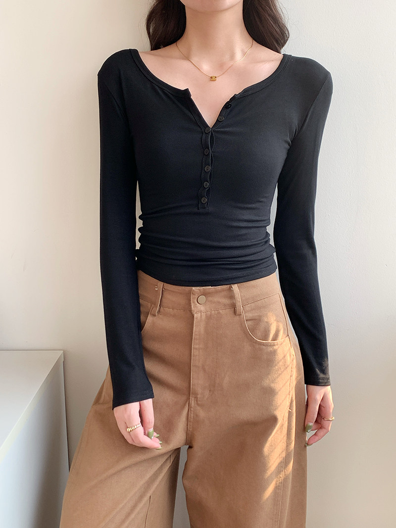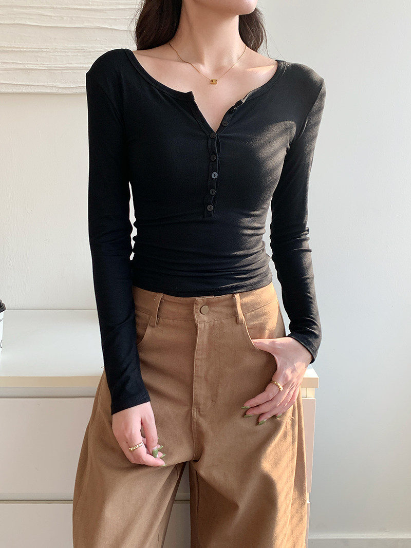 Tight-Fitting, Slimming Base Shirt in a Hot Girl Style, Autumn and Winter American Retro Style, Unique Shoulder Design, Slim Fit, Long-Sleeved Top for Layering